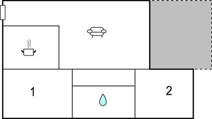 Badeværelse 6m2 (nr. 1) - WC. Varmt og koldt vand. Badekar