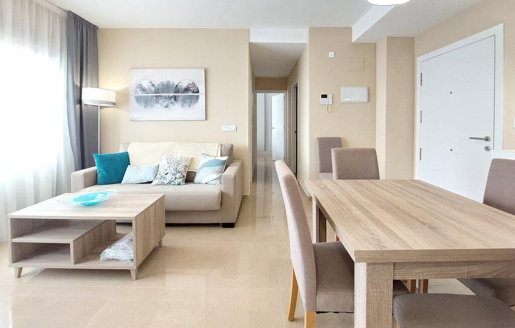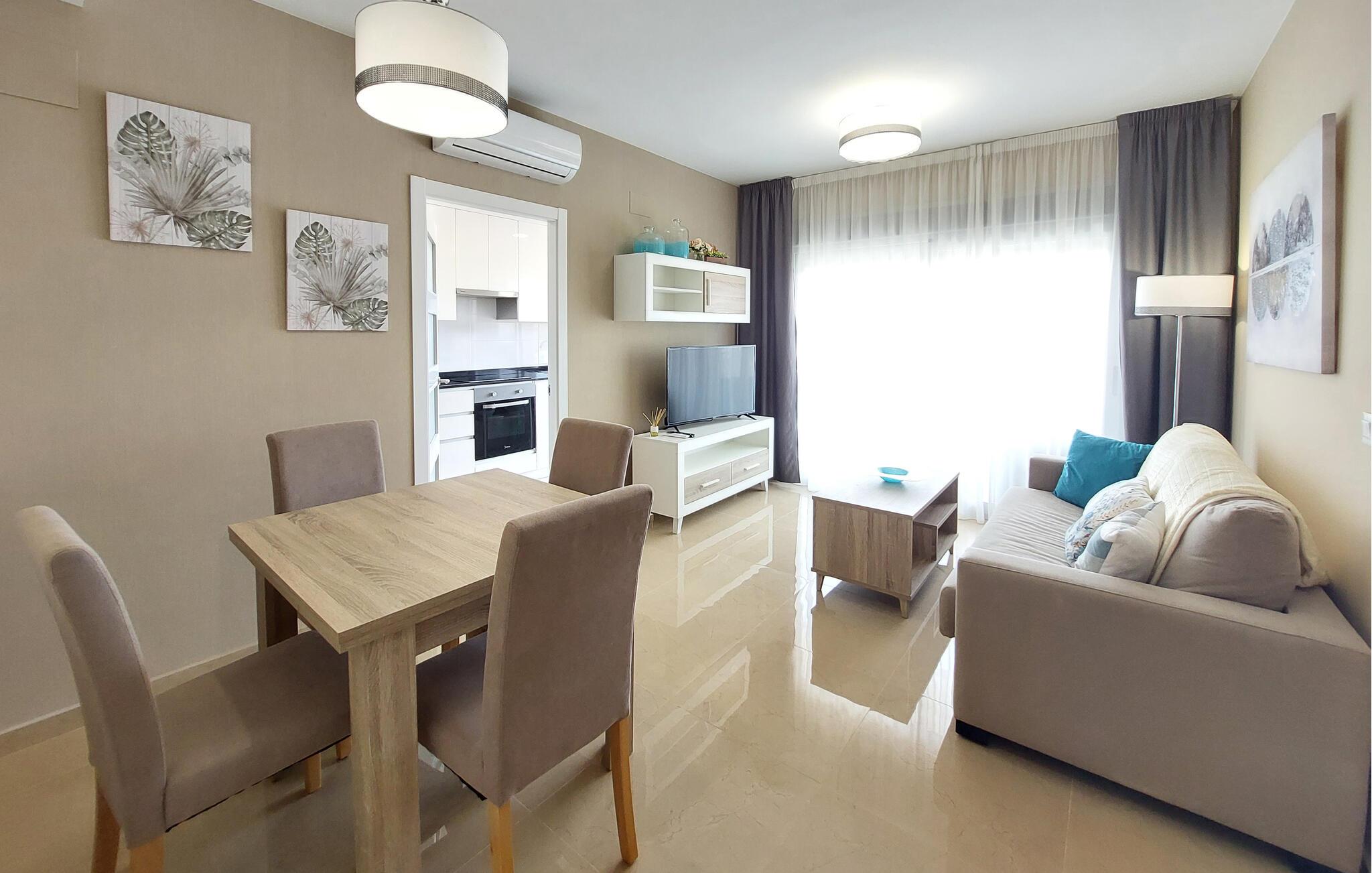 Lyse og hyggelige rum lægger op til en afslappende pause ved havet i denne smagfulde lejlighed. Varme farver og komfortable møbler skaber en beroligende atmosfære, hvor I kan slappe af og nyde lækre måltider, spise og slappe af om aftenen med en god film.