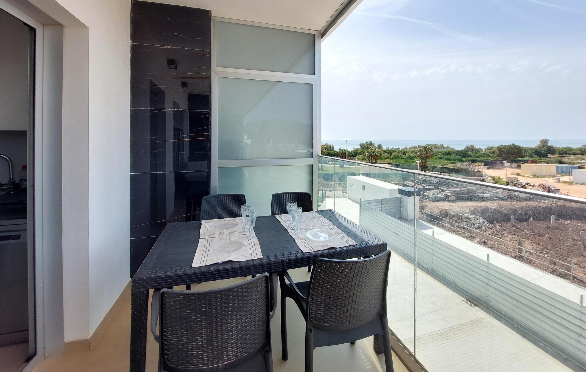 Lad havudsigten fortrylle jer i denne komfortable lejlighed ved stranden med fælles pool.
