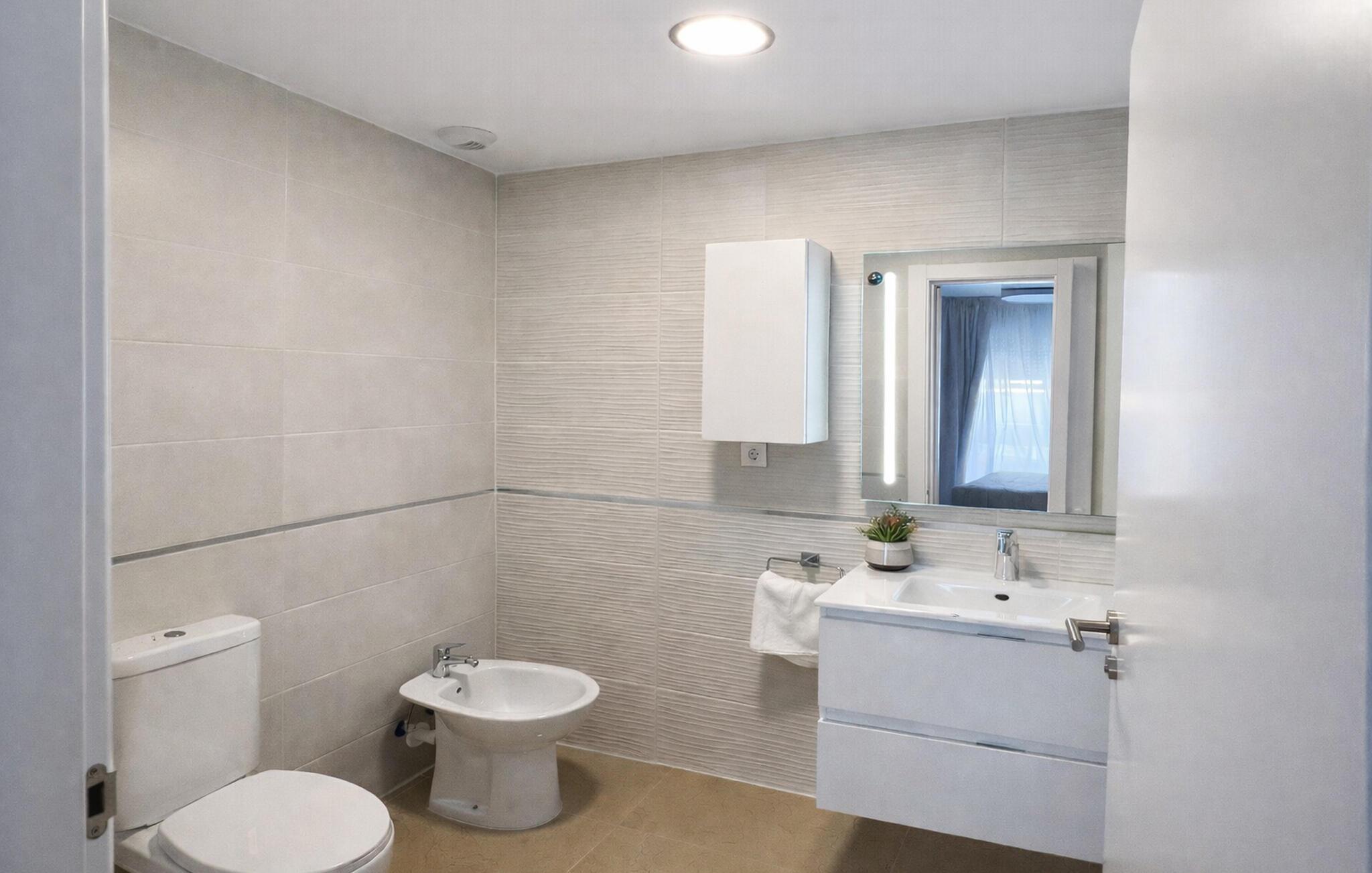 Bare få skridt fra den smukke sandstrand byder denne moderne og komfortable lejlighed jer velkommen. Skab kulinariske lækkerier med familien og nyd den lyse og indbydende atmosfære, mens I spiser. Om aftenen kan I slappe af i den komfortable stue til en god samtale eller en hyggelig spilleaften.