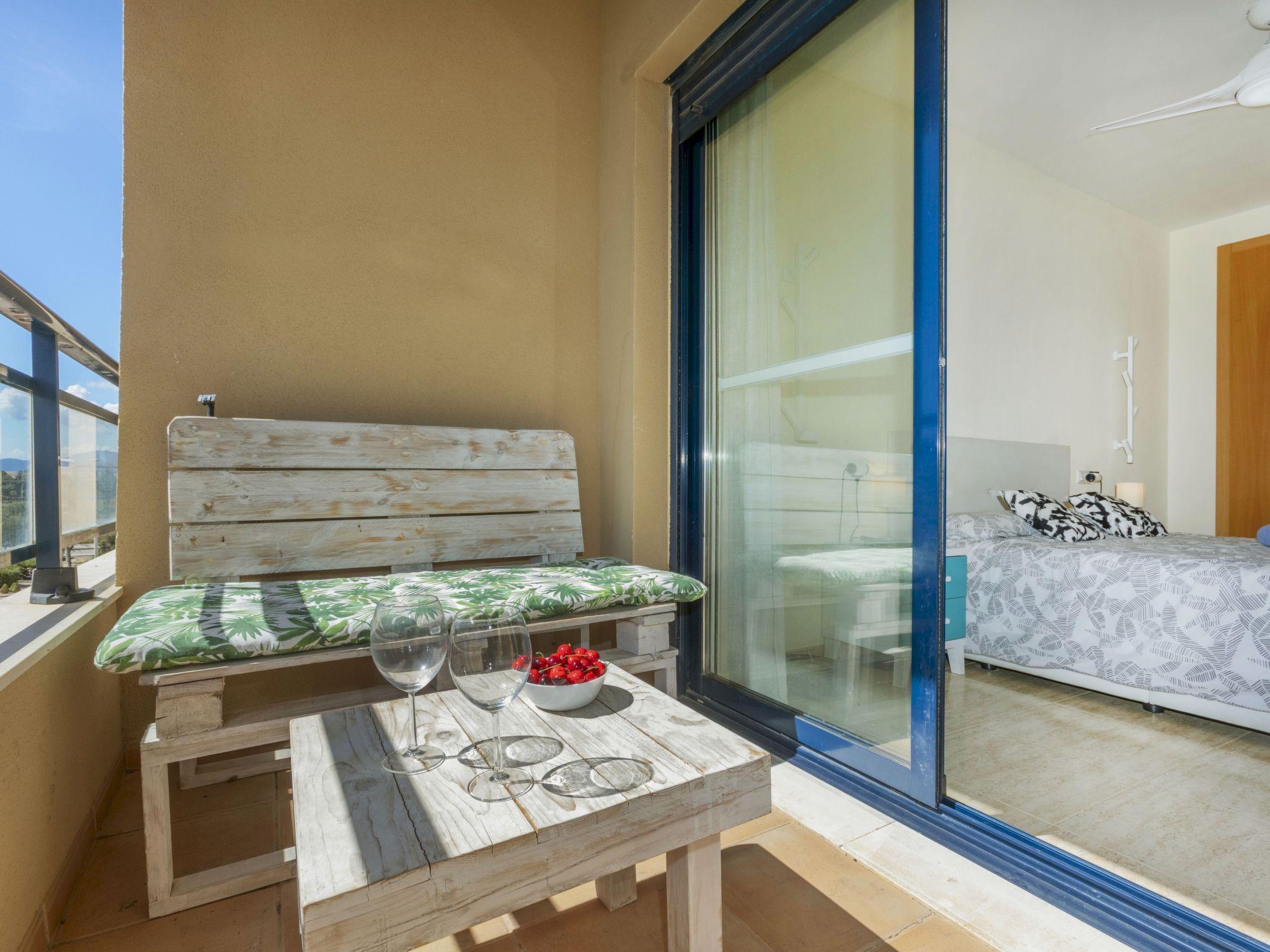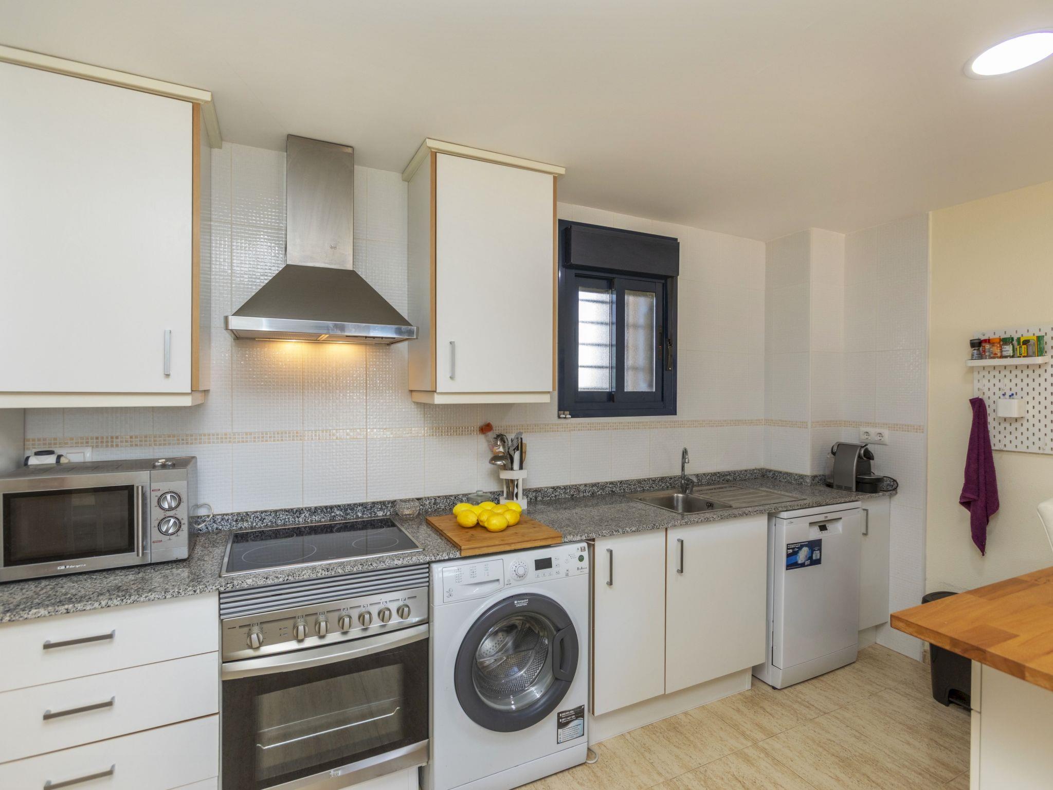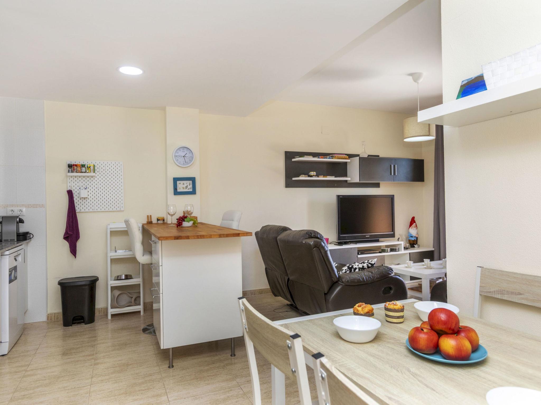 "Torrenova", 3-room apartment 68 m2 on 2nd floor. Practical and comfortable furnishings: living/dining room with dining table, digital TV and fan. Exit to the terrace. 1 room with 1 french bed (1 x 150 cm, length 190 cm), fan. Exit to the terrace. 1 room with 2 beds (90 cm, length 190 cm), fan. Open kitchen (oven, dishwasher, 4 ceramic glass hob hotplates, toaster, microwave, electric coffee machine) with bar, boiler (80 litres). Shower/WC. No heating option. Terrace. Terrace furniture. Distant view of the sea. Facilities: washing machine, iron, hair dryer. Internet (WiFi, free). Parking space n 15 (roofed). Please note: apartment street side. Non-smokers only. TV only ES. VT-46697-CS // Reg. Nr.: ESFCTU000012021000554701000000000000CV-VUT0046697-CS2