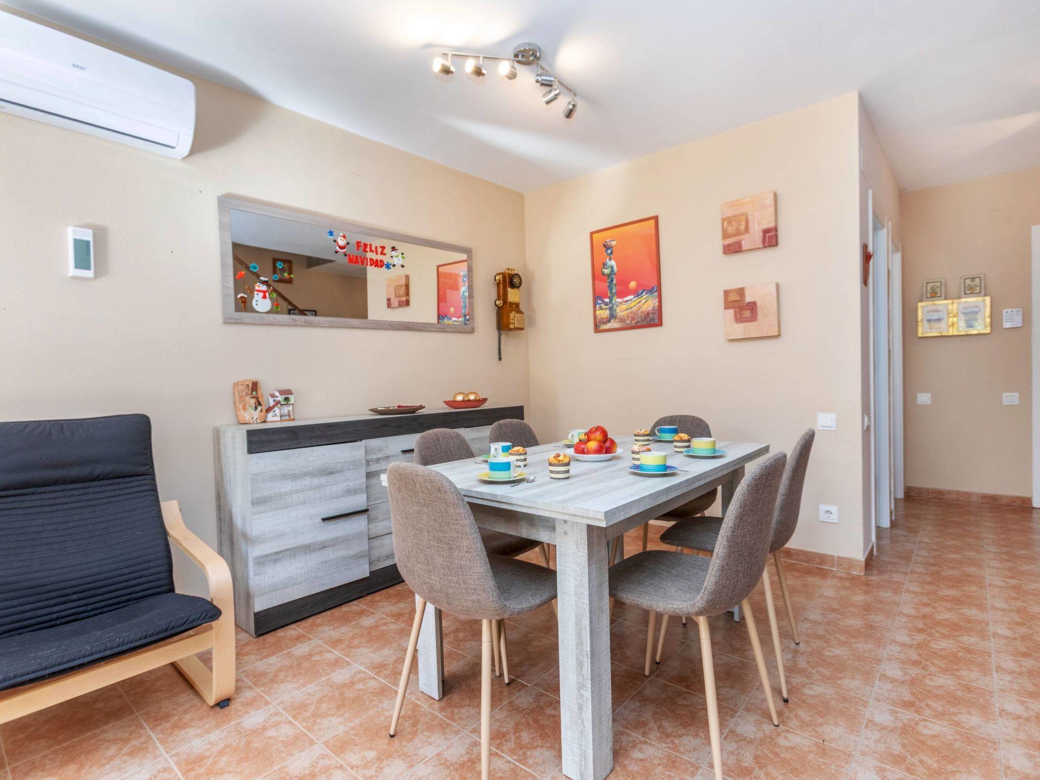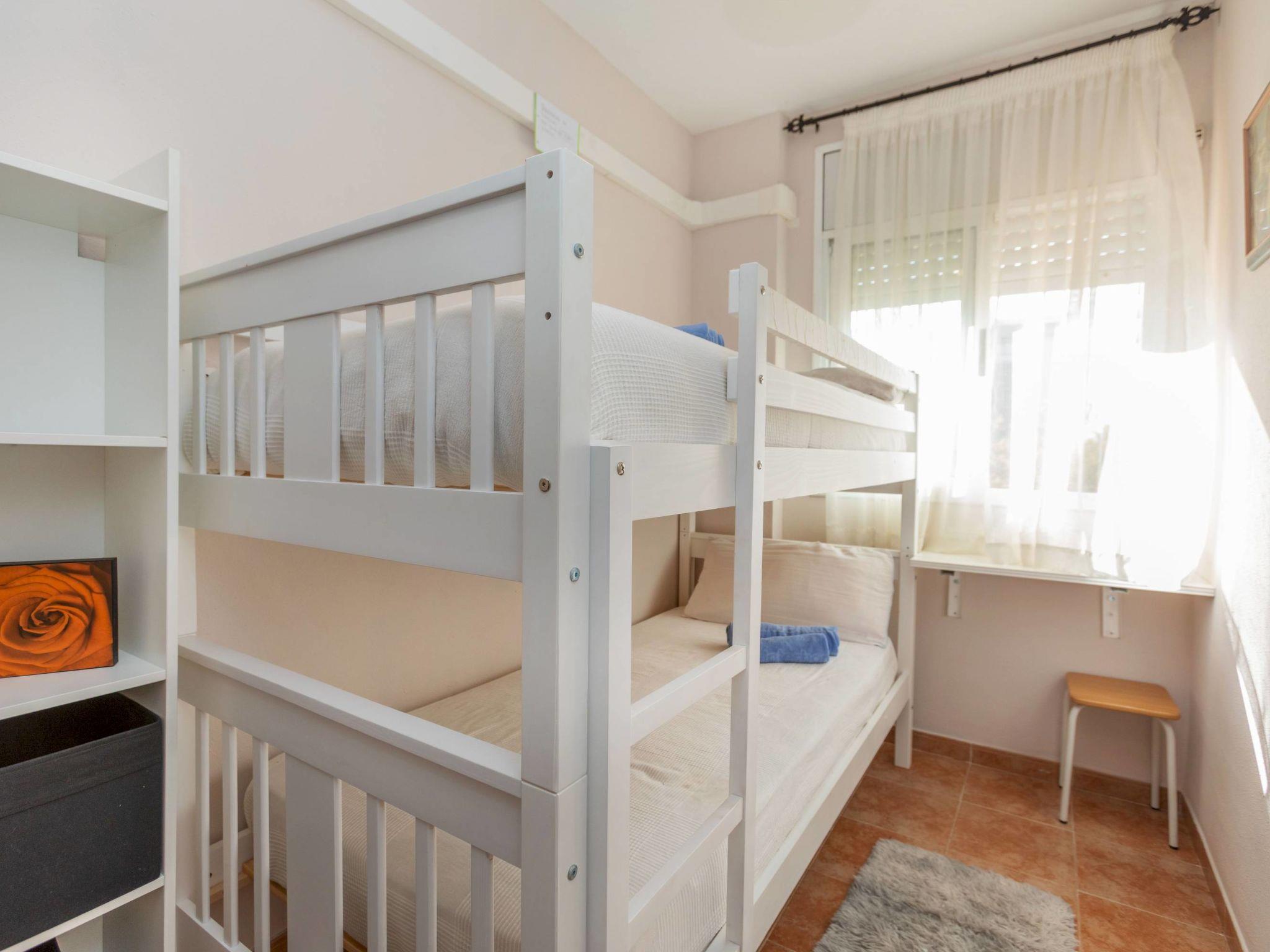 "Boters 2", 4-room terraced house 80 m2. Object suitable for 3 adults + 2 children. Practical and cosy furnishings: living/dining room with digital TV, air conditioning and forced-air heating. Exit to the patio. Kitchen (4 hot plates, toaster, kettle, microwave, electric coffee machine). Sep. WC. Upper floor: 1 room with 1 french bed (1 x 135 cm, length 190 cm). 1 room with 2 x 1 bunk beds. 1 room with 1 bed. Bath/WC. Air-conditioning, forced-air heating. Heating not available in all rooms. Terrace. Terrace furniture, barbecue, deck chairs (2). Facilities: washing machine, iron, children's high chair, baby cot for up to 2 year olds, hair dryer. Internet (WiFi, free). Please note: suitable for families. Non-smoking house. Maximum 1 pet/ dog allowed. TV only ES. HUTT-0543769 // Reg. Nr.: ESFCTU00004302700021796700000000000000000HUTT-0543769