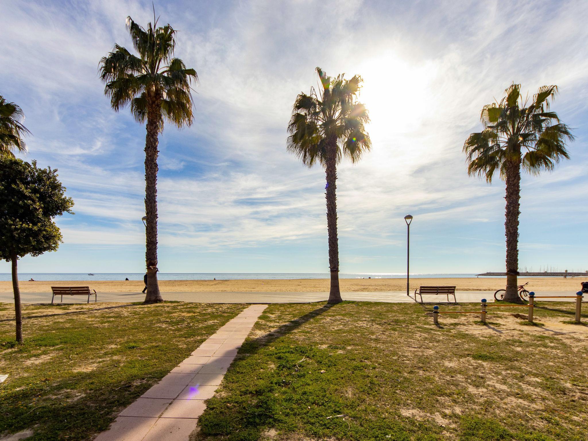 Torredembarra 18 km from Tarragona: Very large apartment block "Els Pins", surrounded by trees. 50 m from the sea, 20 m from the beach, direct access to the beach. For shared use: large garden (fenced) with trees, 2 swimming pools angular (20 x 8 m, seasonal availability: 10.Jun. - 20.Sep.) with salt water. Children's pool, outdoor shower. In the house: lift. Parking at the house on the premises. Shop 150 m, grocery 150 m, supermarket 250 m, shopping centre 19 km, restaurant 150 m, bar 150 m, bakery 500 m, café, pedestrian zone 50 m, 8 minute walk to the centre, bus stop 50 m, railway station "Torredembarra Renfe" 100 m. Sports harbour 700 m, golf course (18 hole) 13 km, tennis 2 km, riding stable 2 km. Nearby attractions: Port Aventura 30 km, Aquopolis 35 km, Jungle Trek 8 km. Well-known lakes can easily be reached: Pantano de Foix 33 km, Bassa de les Olles 85 km, Embalse de Siurana 60 km. Hiking paths: La Musara 56 km, Ronda verda del Baix Gaia 5 km. Please note: suitable for families. The owner does not accept any groups. The owner does not accept any youth groups. Main road 600 m from the property. Airfield 30 km from the property. Additional accommodations can be booked. Neighbourhood highly sensitive to noise. Quietness and good behaviour expected.