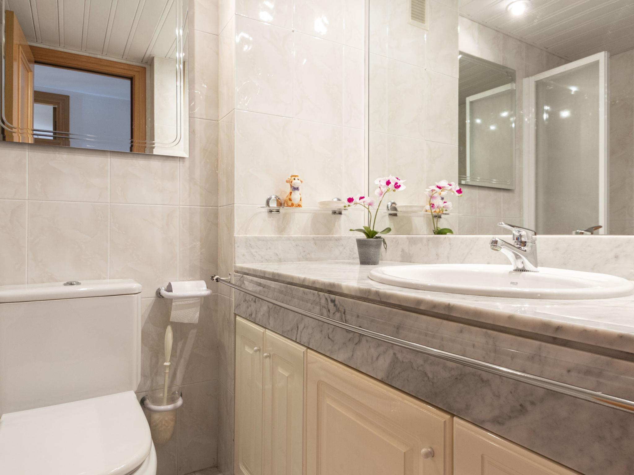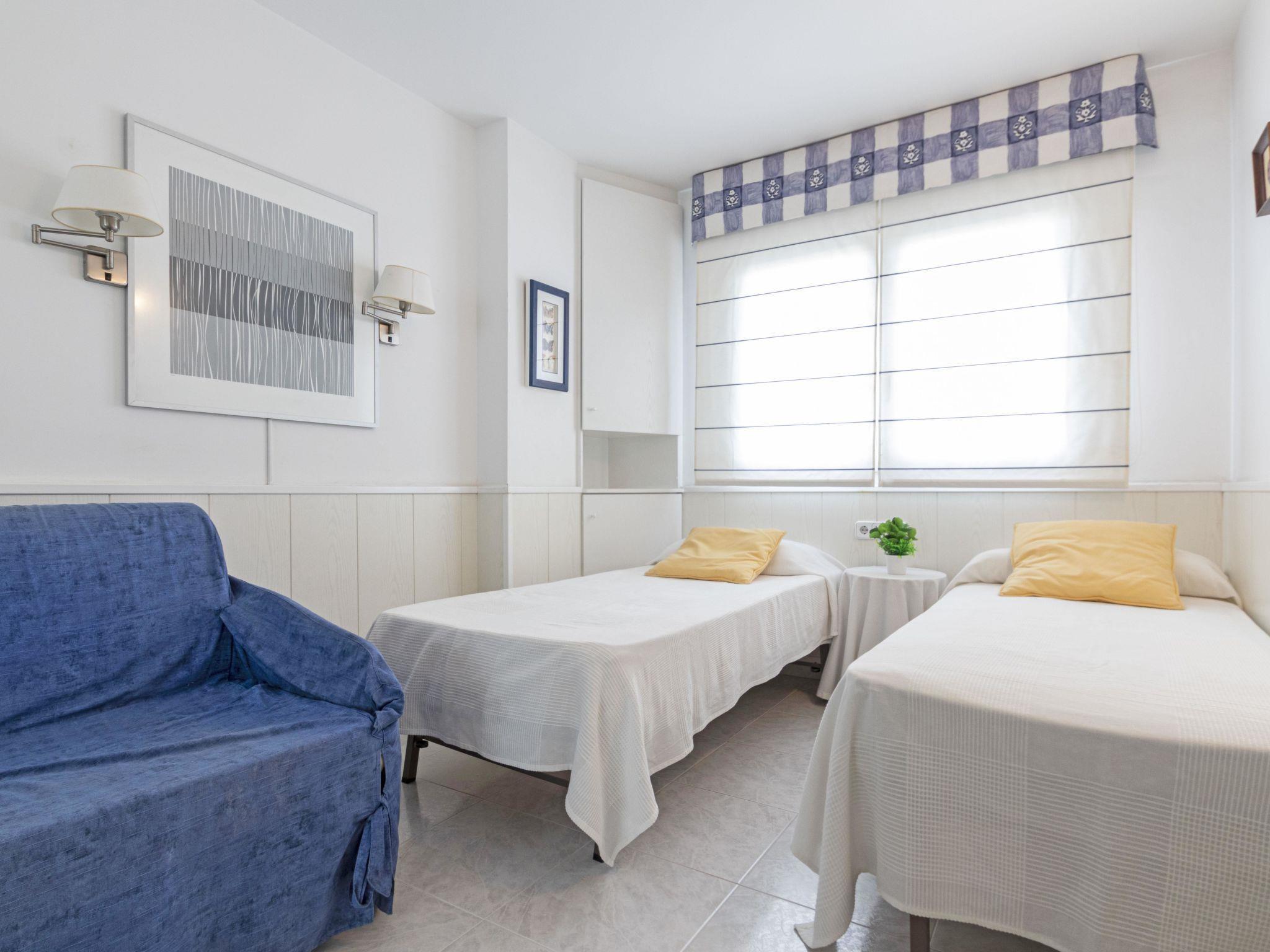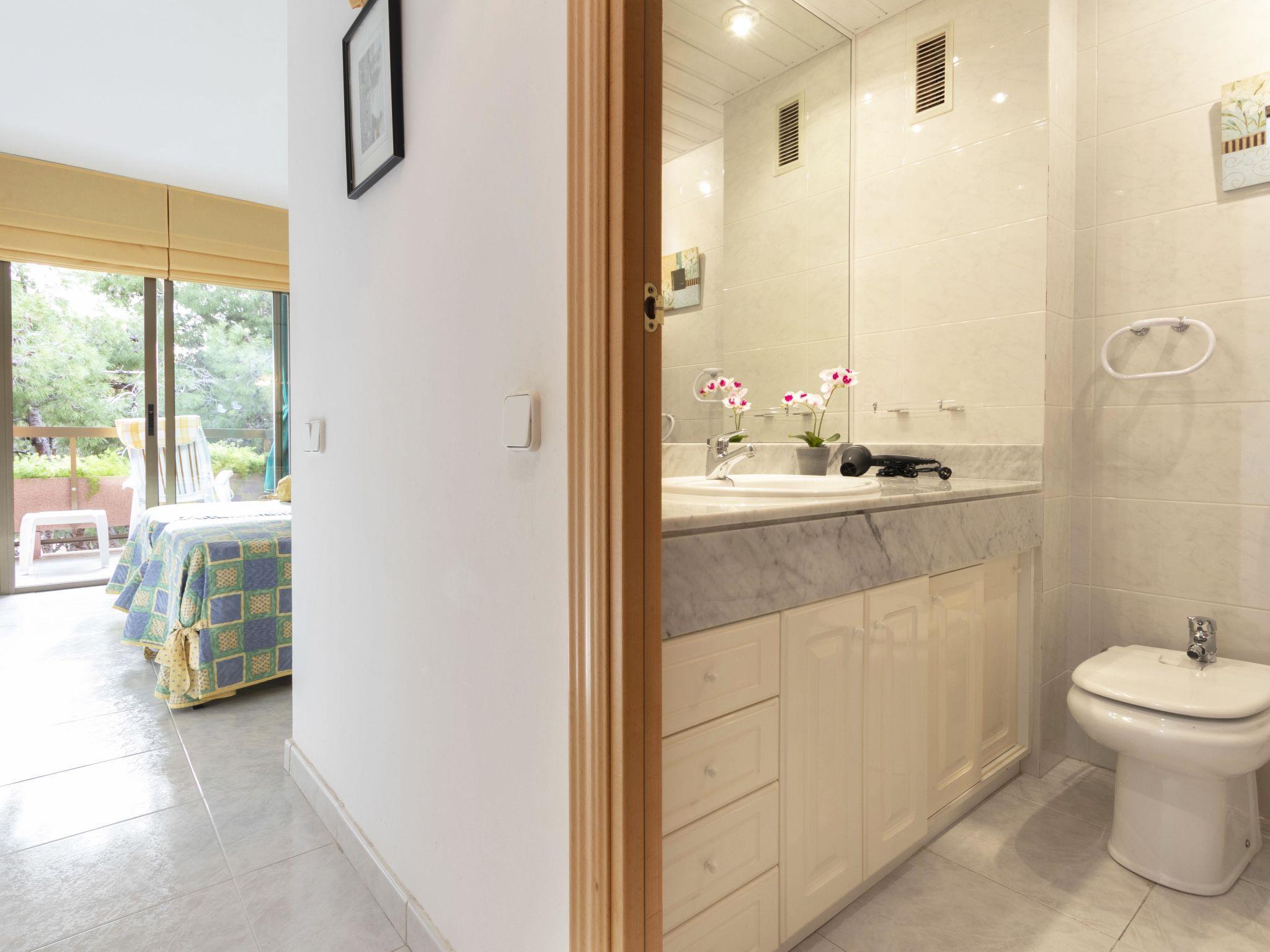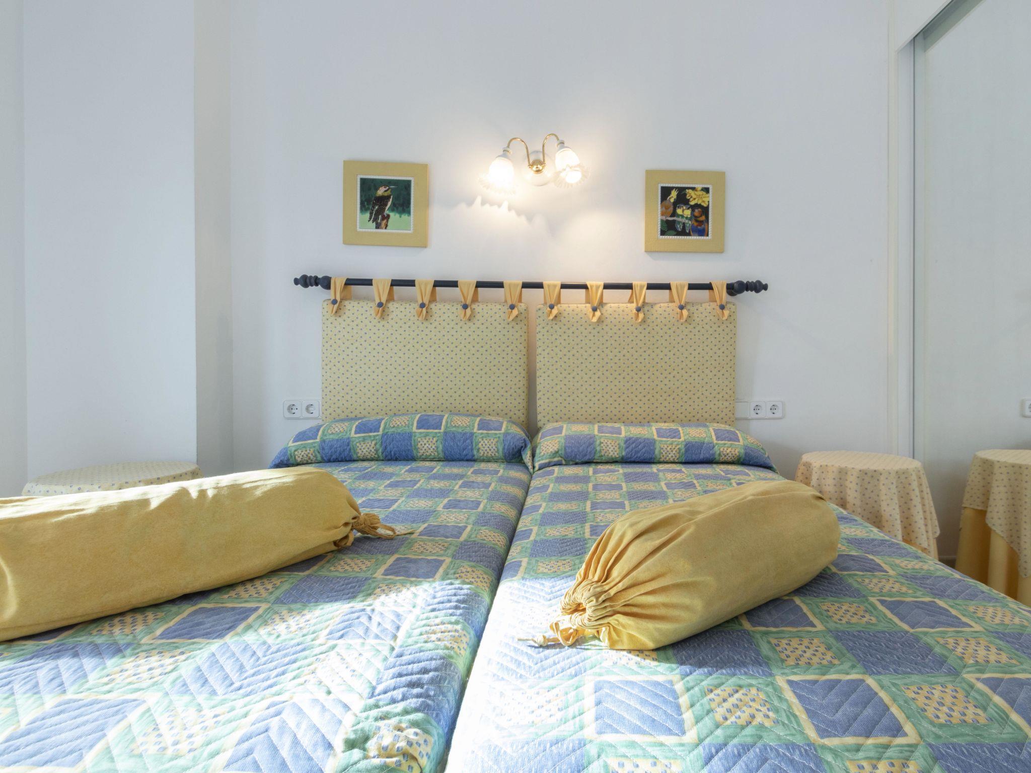 "Els Pins Maria", 3-room apartment 70 m2 on 5th floor. Object suitable for 2 adults + 2 children. Bright, practical and comfortable furnishings: living/dining room with digital TV. Exit to the terrace. 2 rooms, each room with 2 beds (80 cm, length 190 cm). Kitchen (4 hot plates, oven, toaster, kettle, microwave, electric coffee machine). 2 baths/WC. Air-conditioning. No heating option. Terrace. Terrace furniture. Partial view of the swimming pool. Facilities: washing machine, iron, children's high chair, baby cot for up to 2 year olds, hair dryer. Internet (WiFi, free). Parking space n 36 (1 car) at the house. Please note: suitable for families. Non-smokers only, parking space for small car only. TV only ES. HUTT-013789 // Reg. Nr.: ESFCTU00004302700022747800000000000000000HUTT-0137898