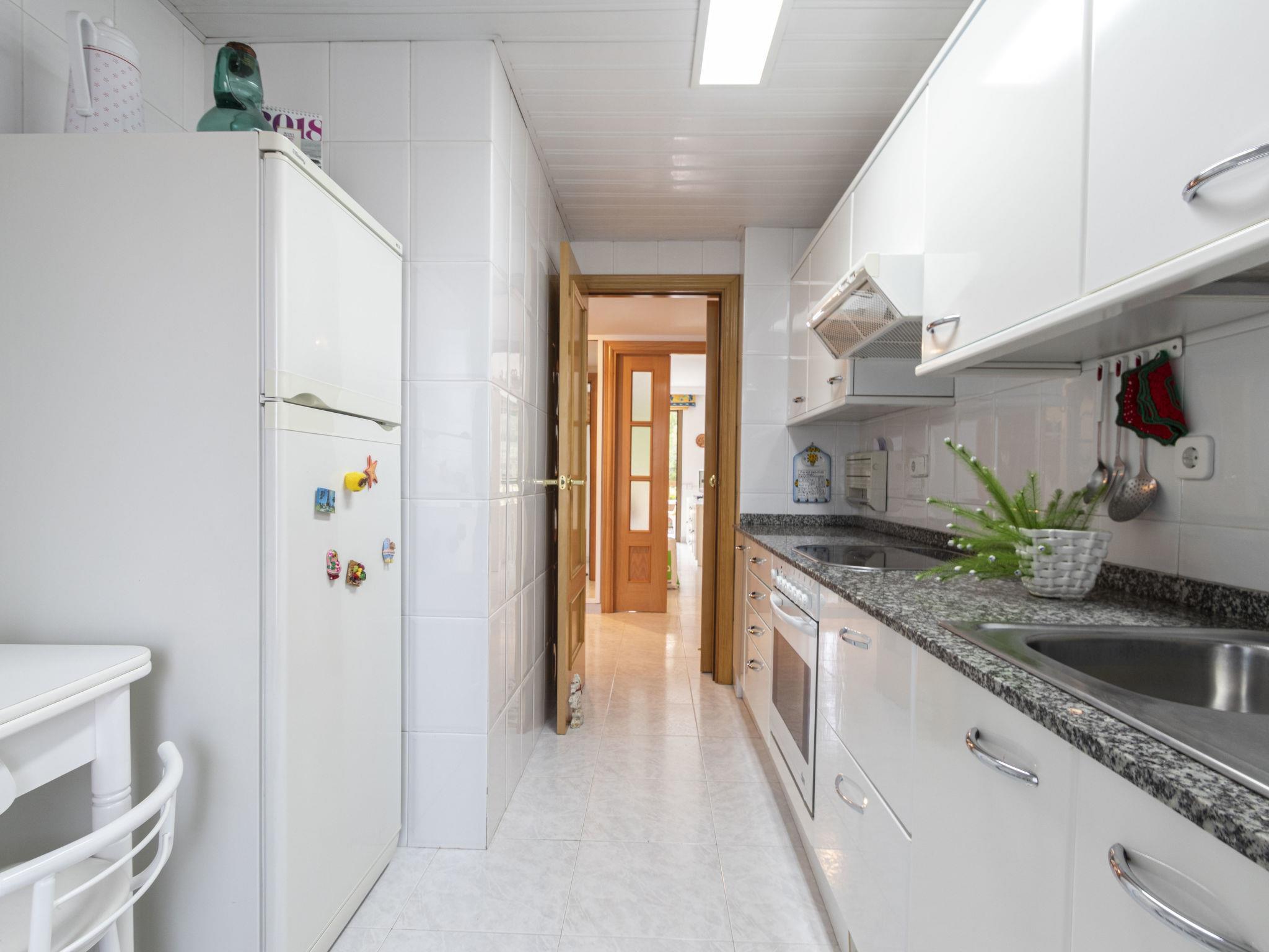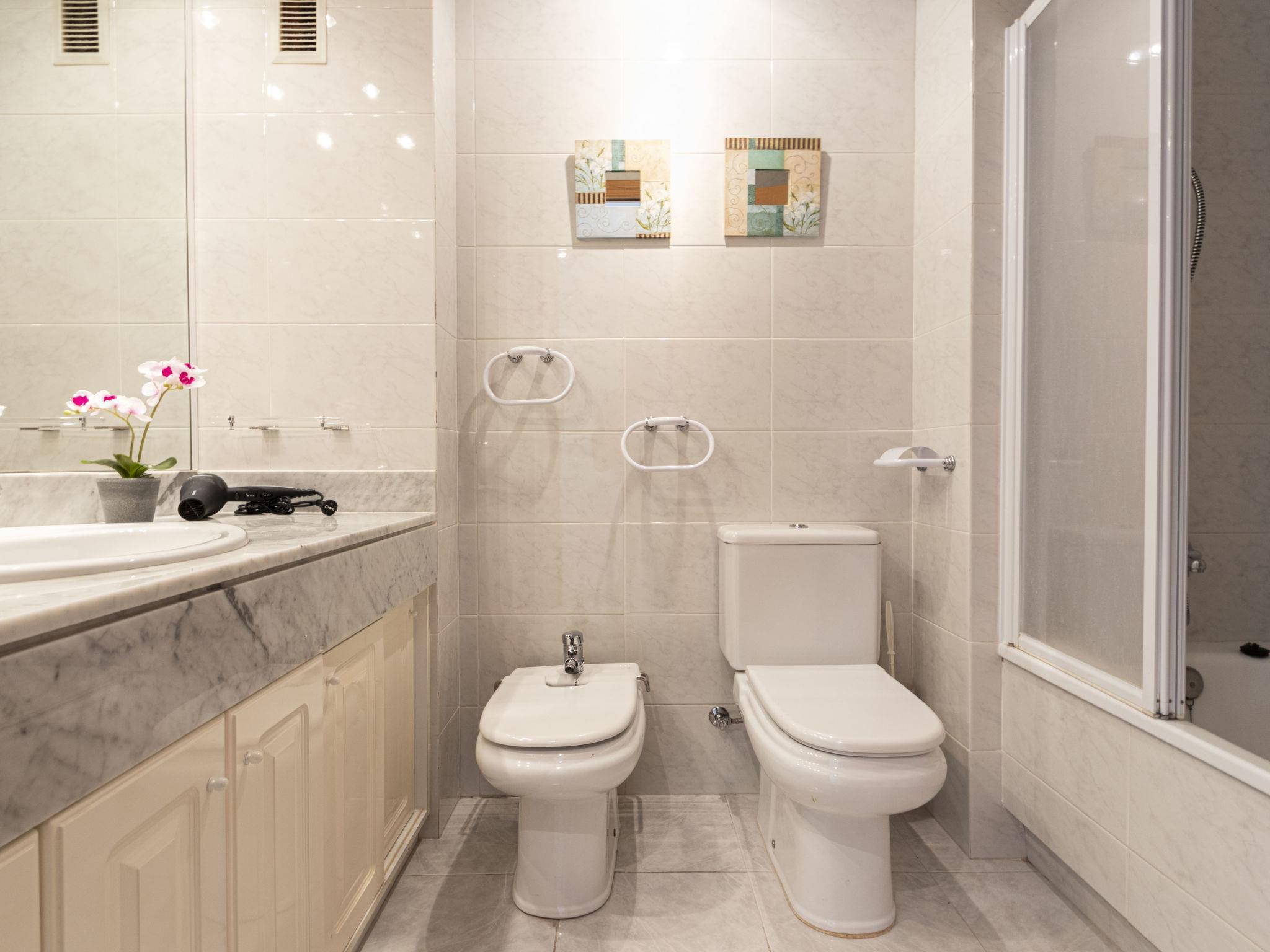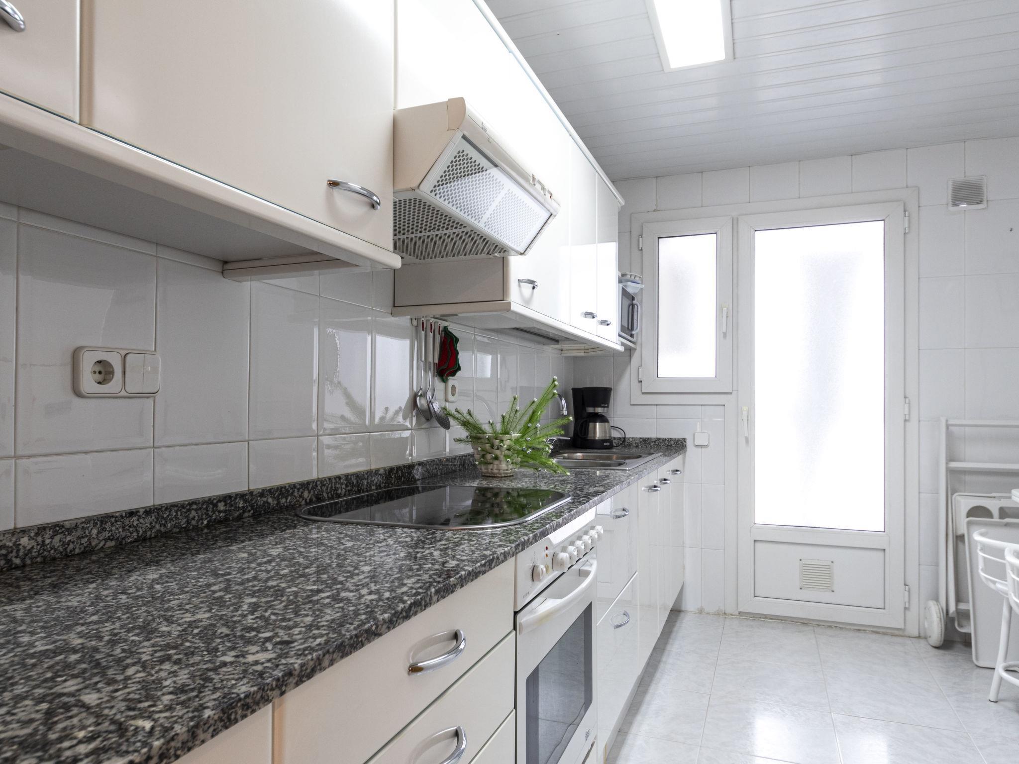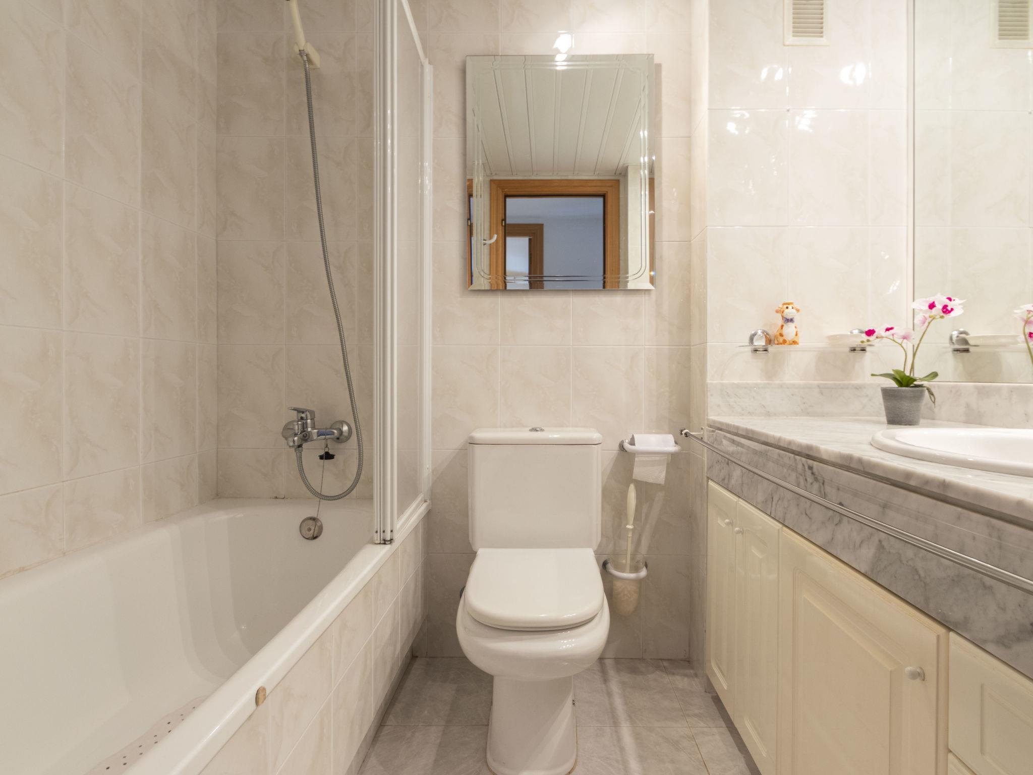 "Els Pins Maria", 3-room apartment 70 m2 on 5th floor. Object suitable for 2 adults + 2 children. Bright, practical and comfortable furnishings: living/dining room with digital TV. Exit to the terrace. 2 rooms, each room with 2 beds (80 cm, length 190 cm). Kitchen (4 hot plates, oven, toaster, kettle, microwave, electric coffee machine). 2 baths/WC. Air-conditioning. No heating option. Terrace. Terrace furniture. Partial view of the swimming pool. Facilities: washing machine, iron, children's high chair, baby cot for up to 2 year olds, hair dryer. Internet (WiFi, free). Parking space n 36 (1 car) at the house. Please note: suitable for families. Non-smokers only, parking space for small car only. TV only ES. HUTT-013789 // Reg. Nr.: ESFCTU00004302700022747800000000000000000HUTT-0137898