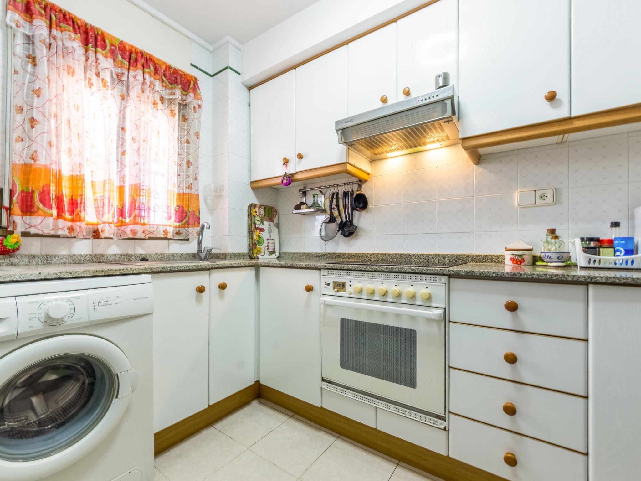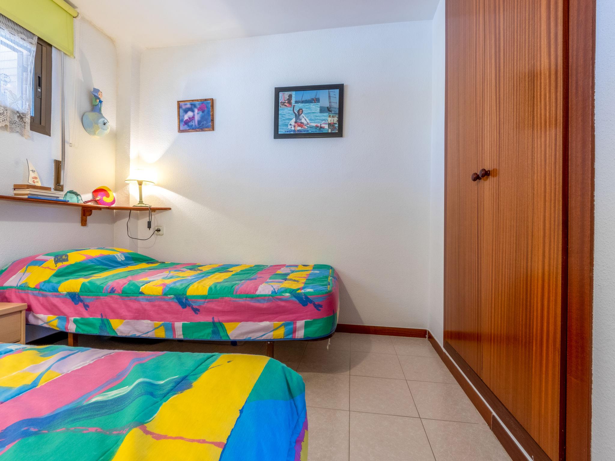 "Solarium III", 3-room apartment 50 m2 on 4th floor. Object suitable for 2 adults + 2 children. Practical and cosy furnishings: living/dining room with digital TV, flat screen and air conditioning. Exit to the terrace. 1 room with 1 french bed (160 cm, length 190 cm), air conditioning. 1 room with 2 beds (90 cm, length 190 cm). Kitchen (oven, 3 induction hot plates, toaster, kettle, microwave, electric coffee machine). Bath/WC. No heating option. Upper floor: (spiral staircase). Exit to the terrace. Small terrace, large terrace. Terrace furniture, deck chairs (2). Marvellous view of the sea. Facilities: washing machine, iron, children's high chair, baby cot for up to 3 year olds, hair dryer. Internet (WiFi, free). Parking space n 15 (roofed), height 230 cm, width 500 cm. Please note: suitable for families. Non-smoking house. TV only ES. HUTT-064961 // Reg. Nr.: ESFCTU00004302700020743200000000000000000HUTT-0649610