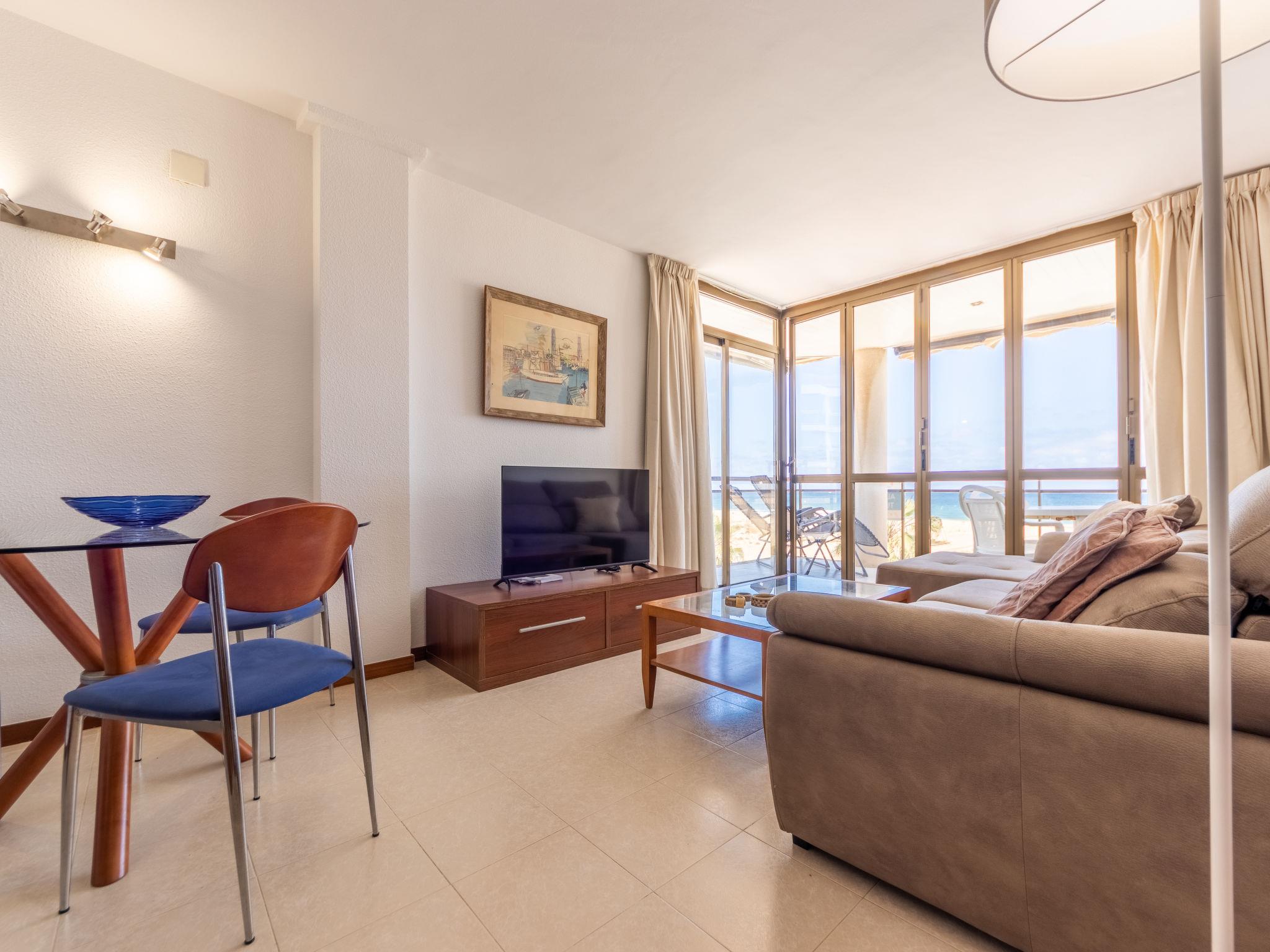 Torredembarra 18 km from Tarragona: Apartment block "Solarium". 20 m from the sea, from the beach. For shared use: garden with lawn, swimming pool (5 x 8 m, depth 140 cm, seasonal availability: 10.Jun. - 15.Sep.). Children's pool, outdoor shower. In the complex: restaurant, bistro, lift. Shop 100 m, grocery 100 m, supermarket 150 m, shopping centre 19 km, restaurant 50 m, bakery 800 m, café, pedestrian zone 20 m, 10 minute walk to the centre, bus stop 200 m, railway station "Renfe Torredembarra" 500 m. Sports harbour 300 m, tennis 2 km, riding stable 2.5 km. Nearby attractions: Port Aventura 30 km, Aquopolis 35 km, Jungle Trek 8 km. Well-known lakes can easily be reached: Pantano de Foix 33 km, Bassa de les Olles 85 km, Embalse de Siurana 60 km. Hiking paths: La Musara 56 km, Ronda verda del Baix Gaia 5 km. The owner does not accept any youth groups. Please note: motorway 3 km from the property. Main road 700 m from the property. Airfield 80 km from the property. Neighbourhood highly sensitive to noise. Quietness and good behaviour expected.
