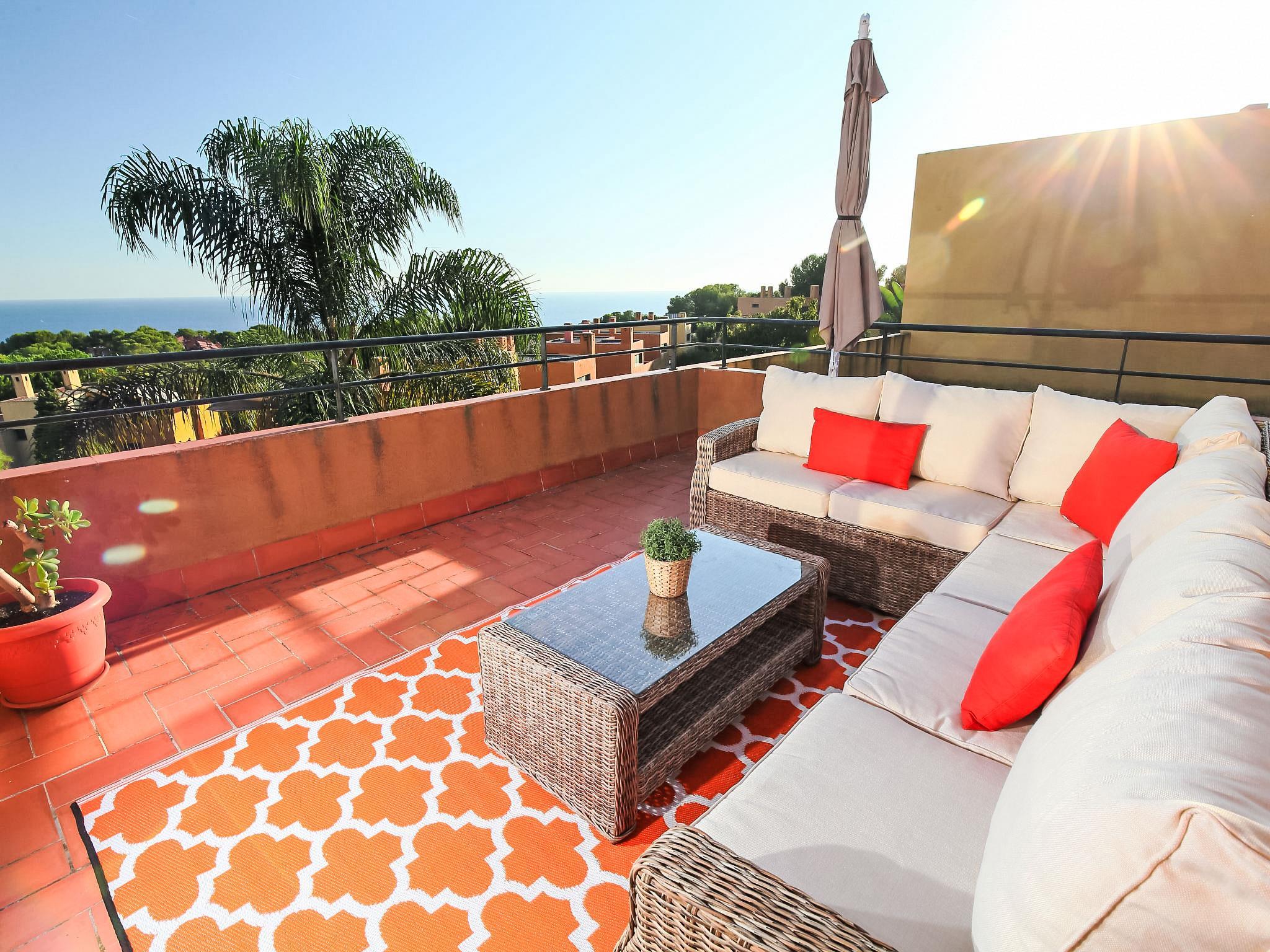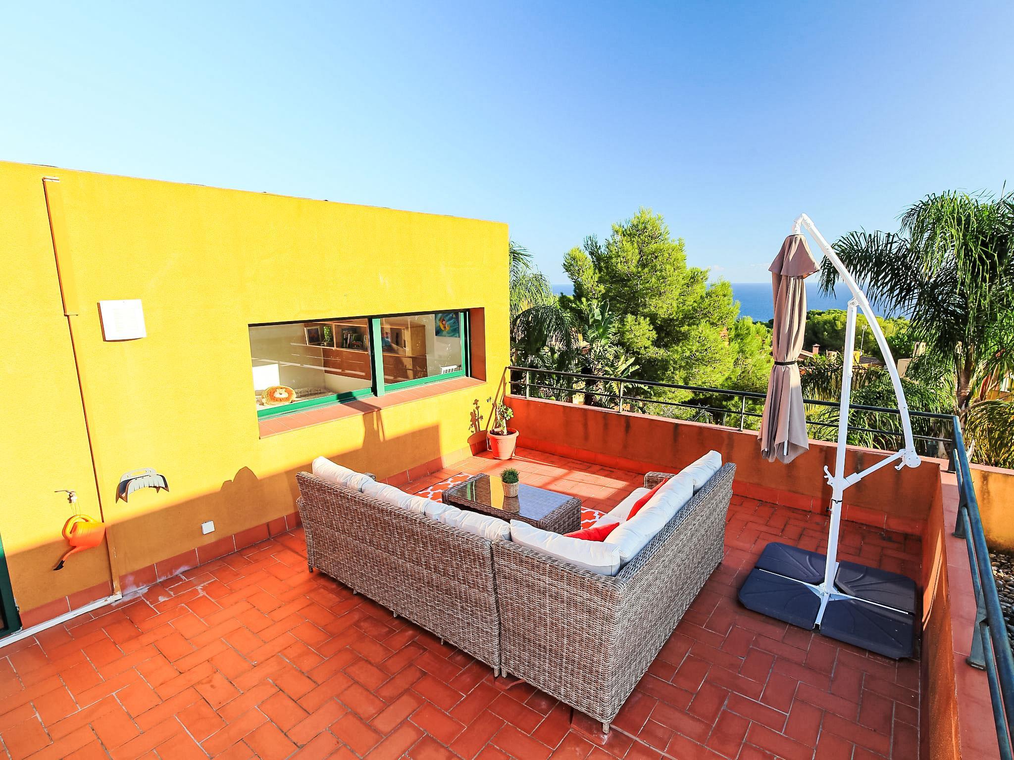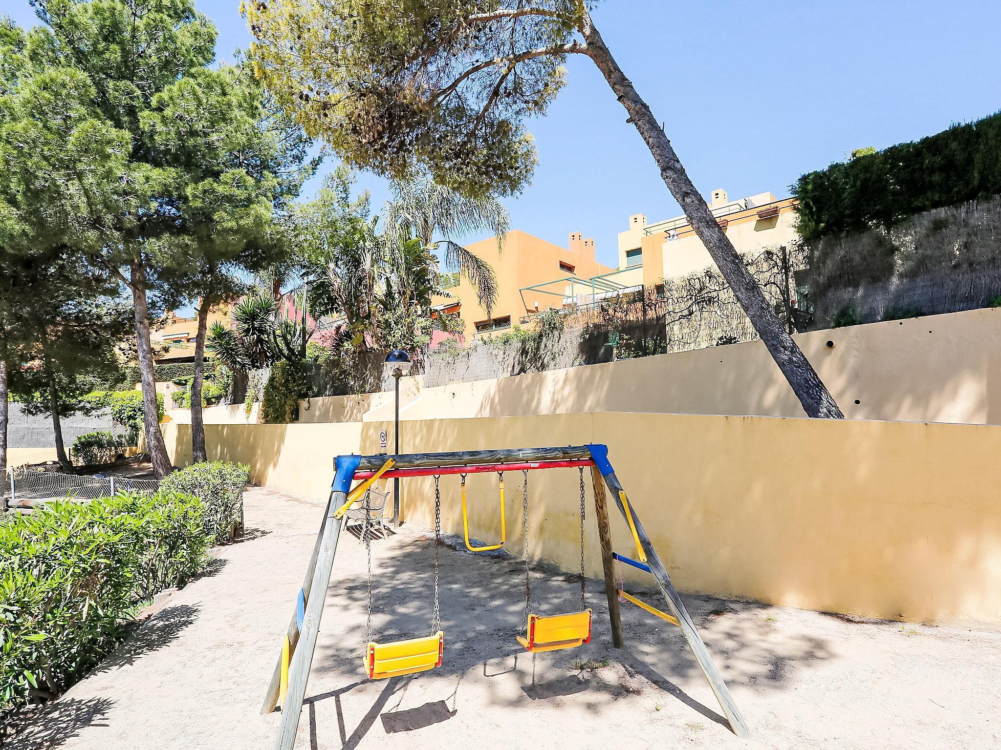 Tamarit 13 km from Tarragona: Very beautiful, comfortable terraced house "Vistamar", 2 storeys, semi-detached. 20 houses in the resort. In the district of Tamarit - La Mora, outside the resort, 13 km from the centre of Tarragona, in a quiet, sunny, elevated position residential area (villas), 10 m from the edge of the forest, 1 km from the sea, 1 km from the beach, in a cul-de-sac. For shared use: garden (fenced) with lawn, swimming pool kidney-shaped (seasonal availability: 01.Jan. - 31.Dec. pool opening hours: 10:00-22:00). Outdoor shower. Private: beautiful garden with lawn and trees. In the house: WiFi. Public parking on the road. Shop 1.4 km, grocery 1.4 km, supermarket 2.3 km, shopping centre 2.3 km, restaurant 1.4 km, bar 1.4 km, bakery 1.4 km, café 1.4 km, bus stop "Passeig de l'Esquirol" 350 m, railway station "AVE Camp de Tarragona" 25 km, sandy beach "Tamarit" 1.4 km. Sports harbour 6 km, marina 6 km, golf course (19 hole) 8 km, surf school 4 km, tennis 1 km, riding stable 11 km. Nearby attractions: Port Aventura 25 km, Aquopolis 25 km, Parque de aventura Jungle Trek 200 m, Pista de básquet y fútbol 800 m. Hiking paths: El Medol 3 km. Please note: car recommended. Suitable for families, baby equipment on request (extra). The owner does not accept any youth groups. Loading and unloading of baggage is possible at the holiday house. Neighbourhood highly sensitive to noise. Quietness and good behaviour expected.