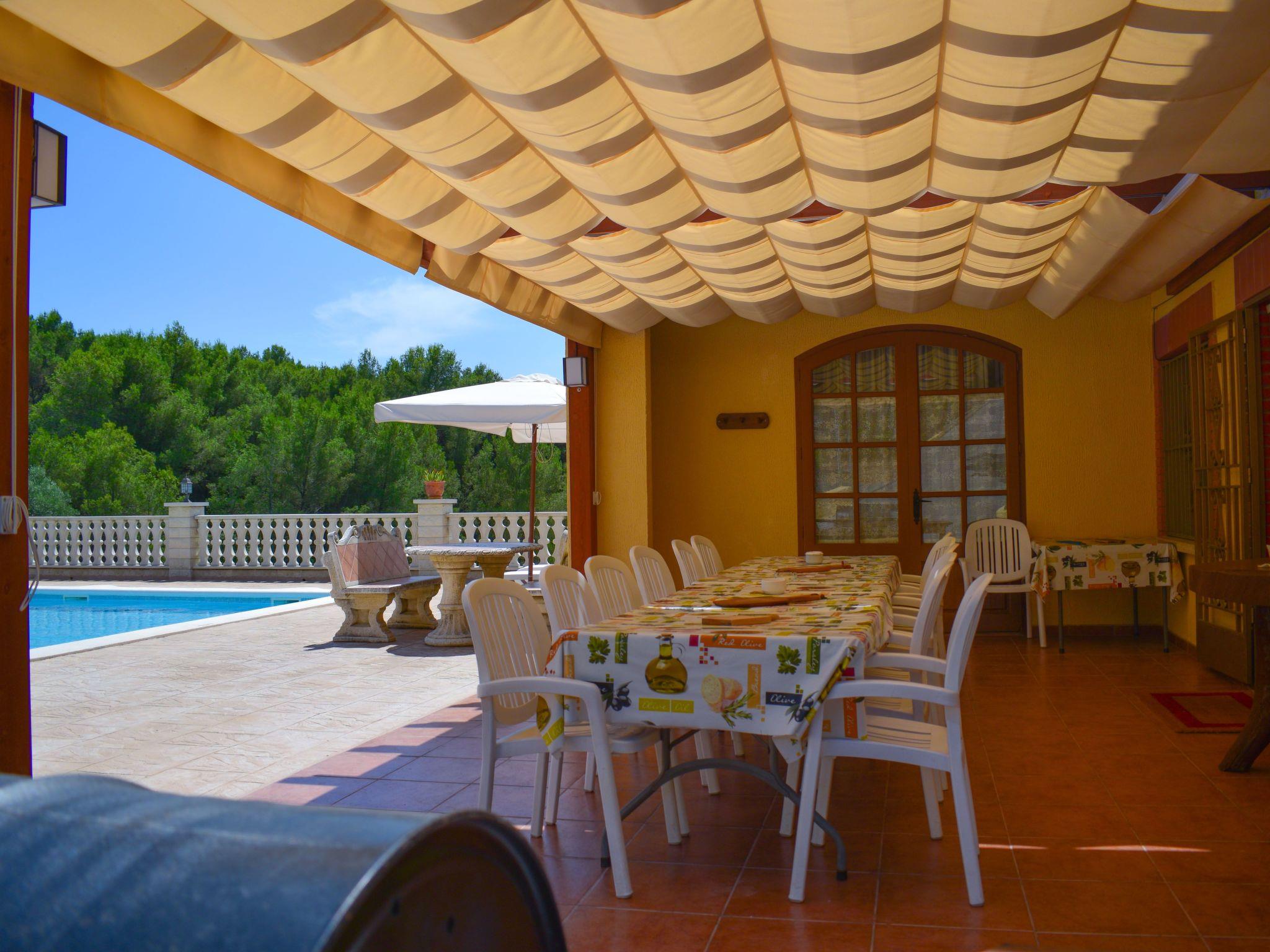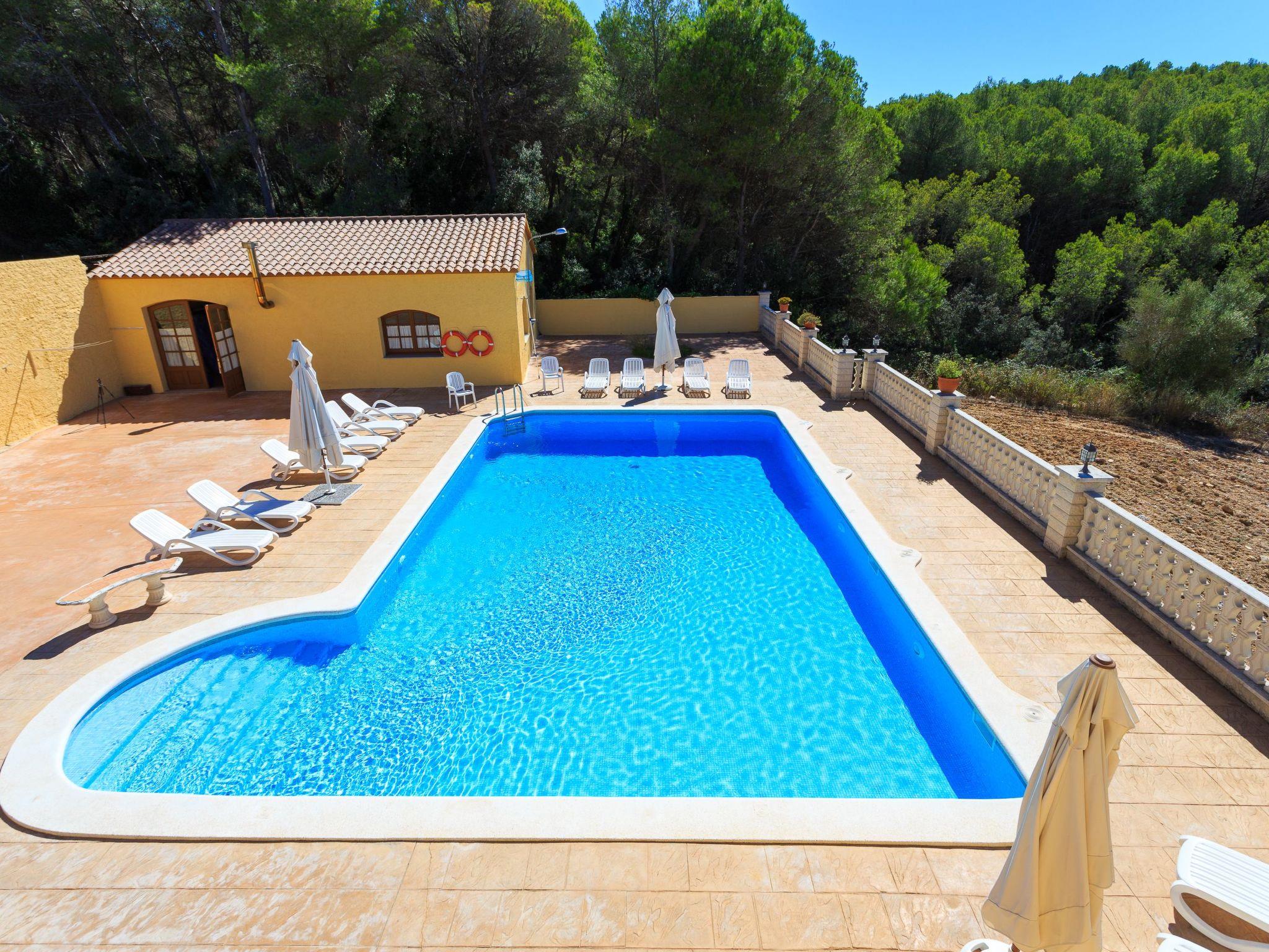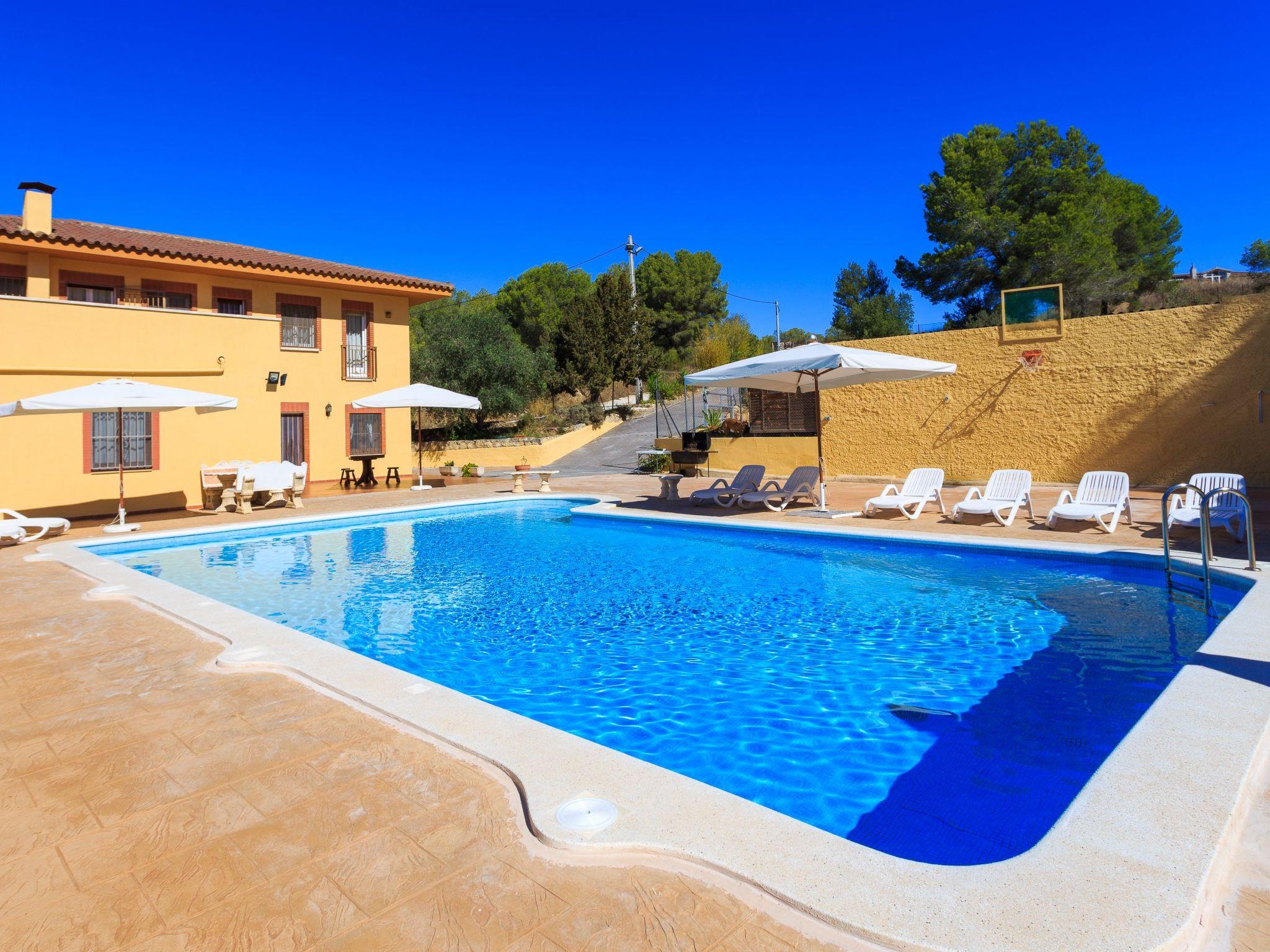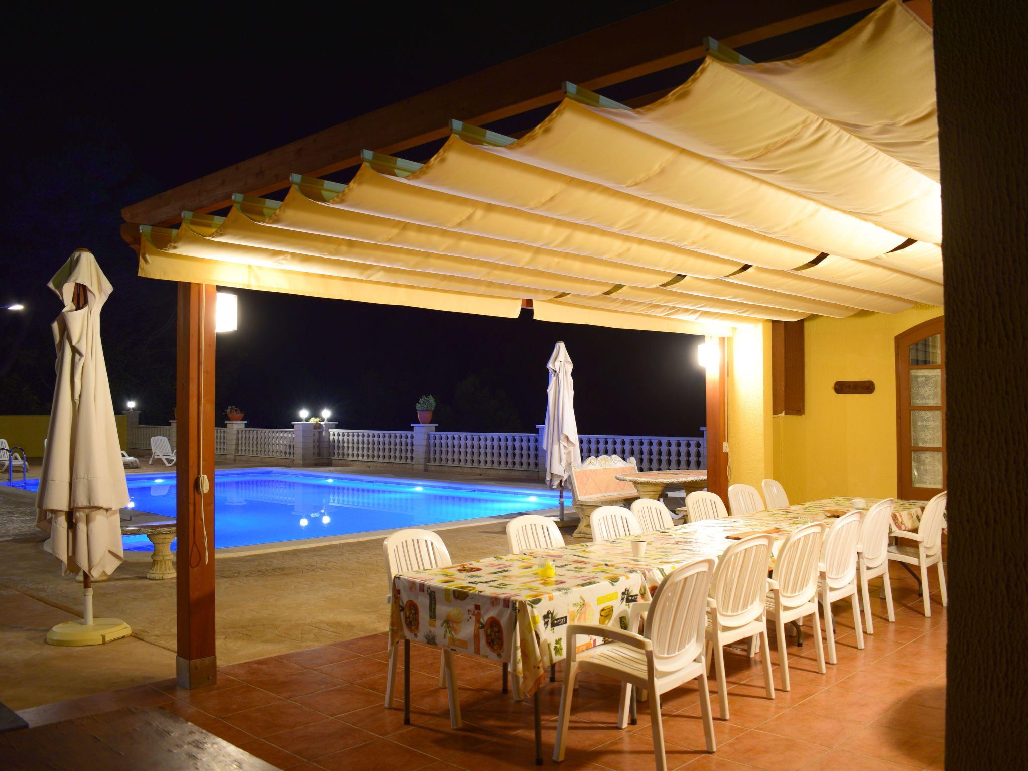 Pergola 14, sunbeds for sunbathing, sunshades, garden tables and chairs, large mobile barbecue where you can enjoy eating by the pool, 1 shower, large pool of 12x7 meters with Roman steps for a good swim and relax in the sun. Basketball basket. Exceptional sunset. Listen to the birds singing, and enjoy the nature.