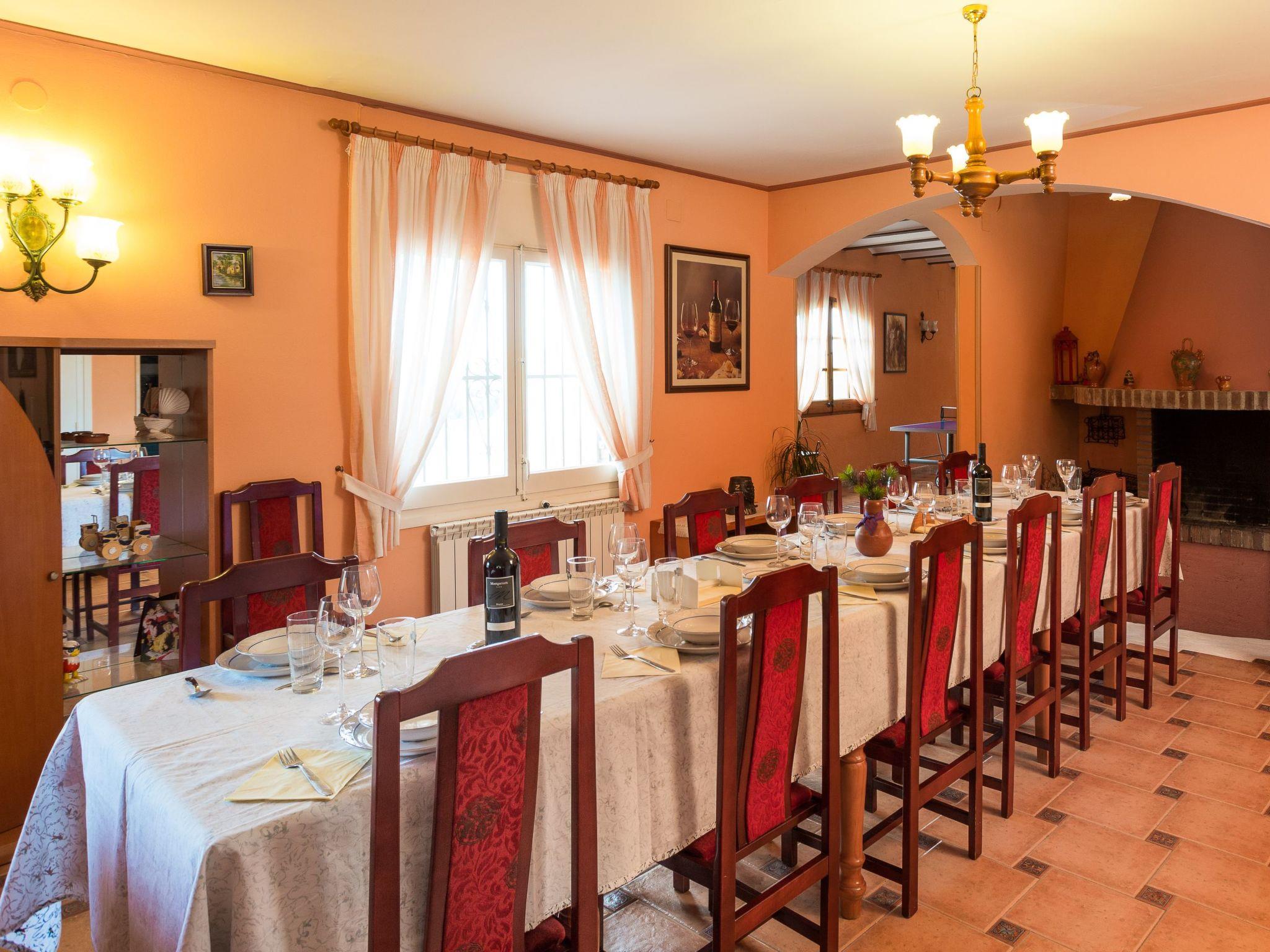Suitable for large family or group of good friends. 3 fridges, 2 ovens, 2 cookers with 9 burners, 2 washing machines, 3 coffee machines, microwave, dishwasher, toaster, hoover, 2 plasma televisions, 2 hairdryers. and a lot of kitchenware and glassware, there are paella pans and paella legs, also grills for meats, large fireplace, heating in all rooms. Bed linen and sheets included. Dining room of 70m, plus lounge and games room with table football and ping-pong. The kitchen is very big of 60m, with dining room for breakfast. Wifi, Moviestar fibre