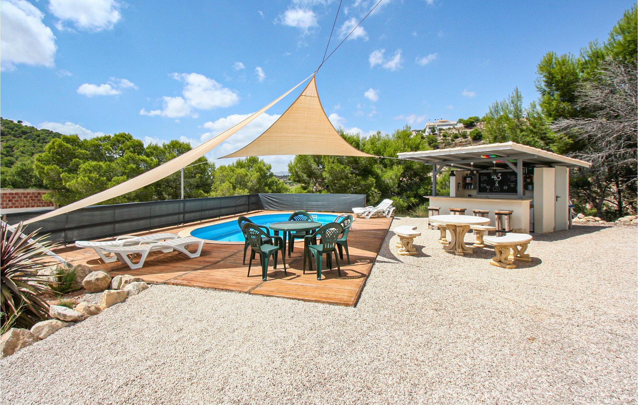 Ser frem til en behagelig ferie i denne lejlighed med en stor pool!