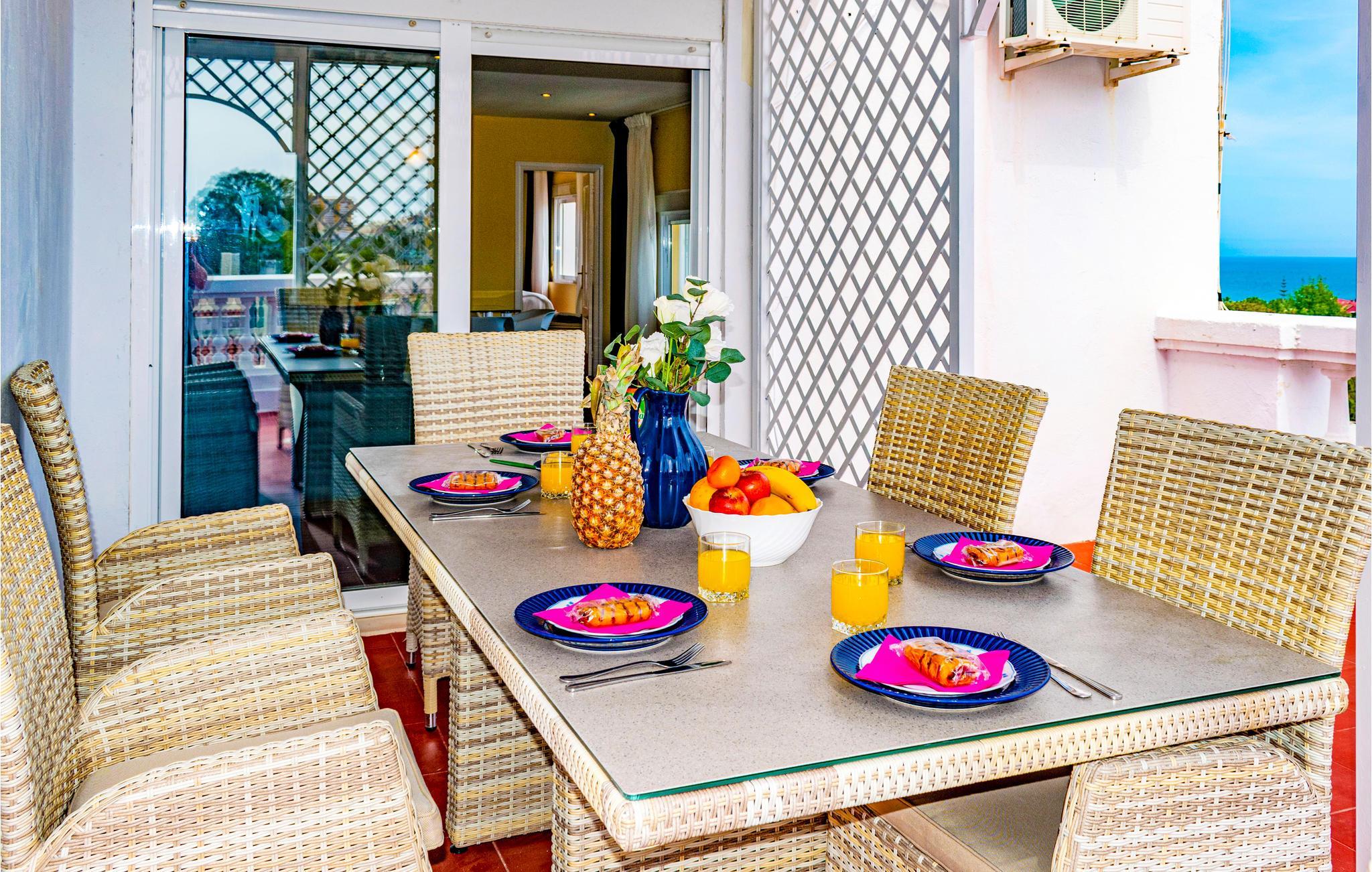 Lejligheden tilbyder masser af plads til en familie eller venner, der søger en afslappende ferie med sol, sand og hav. Begynd dagene med en lækker morgenmad på en af ??lejlighedens terrasser, som er udstyret med loungemøbler.