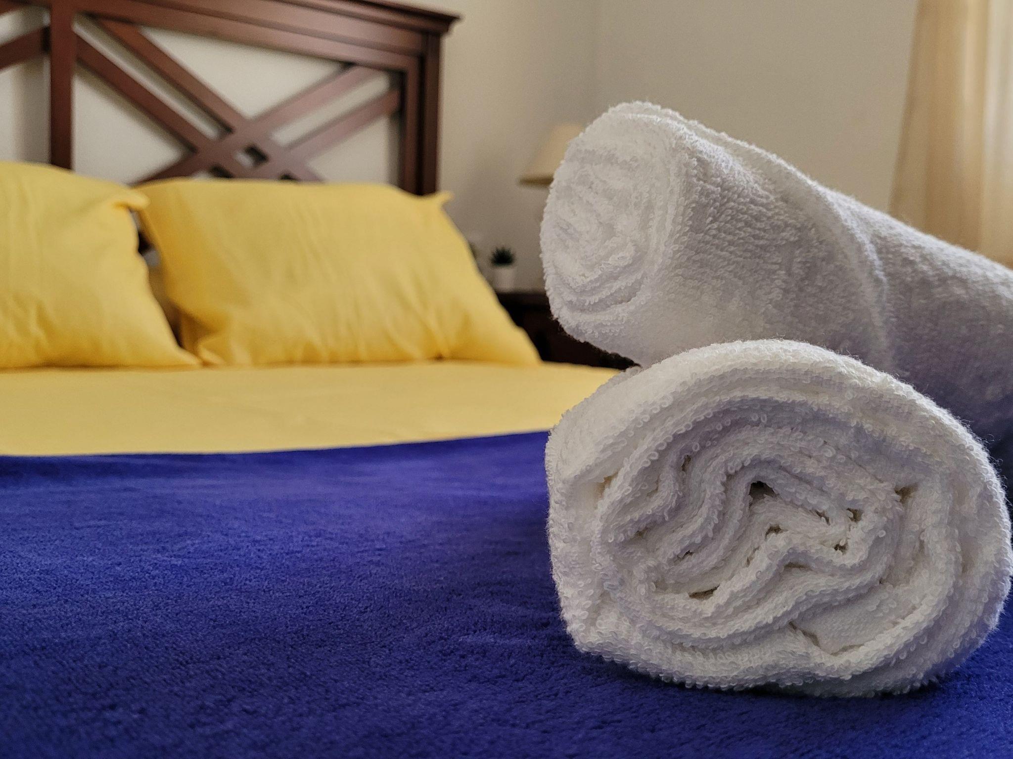 Clean sheets and towels are provided for each guest. Shampoo, gel and soap are also available in the bathroom.