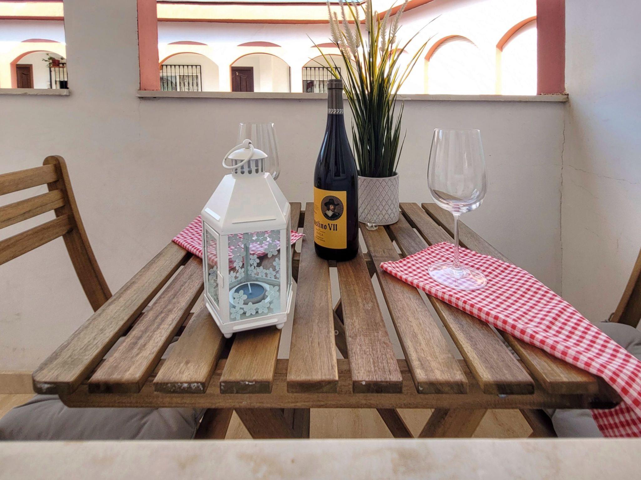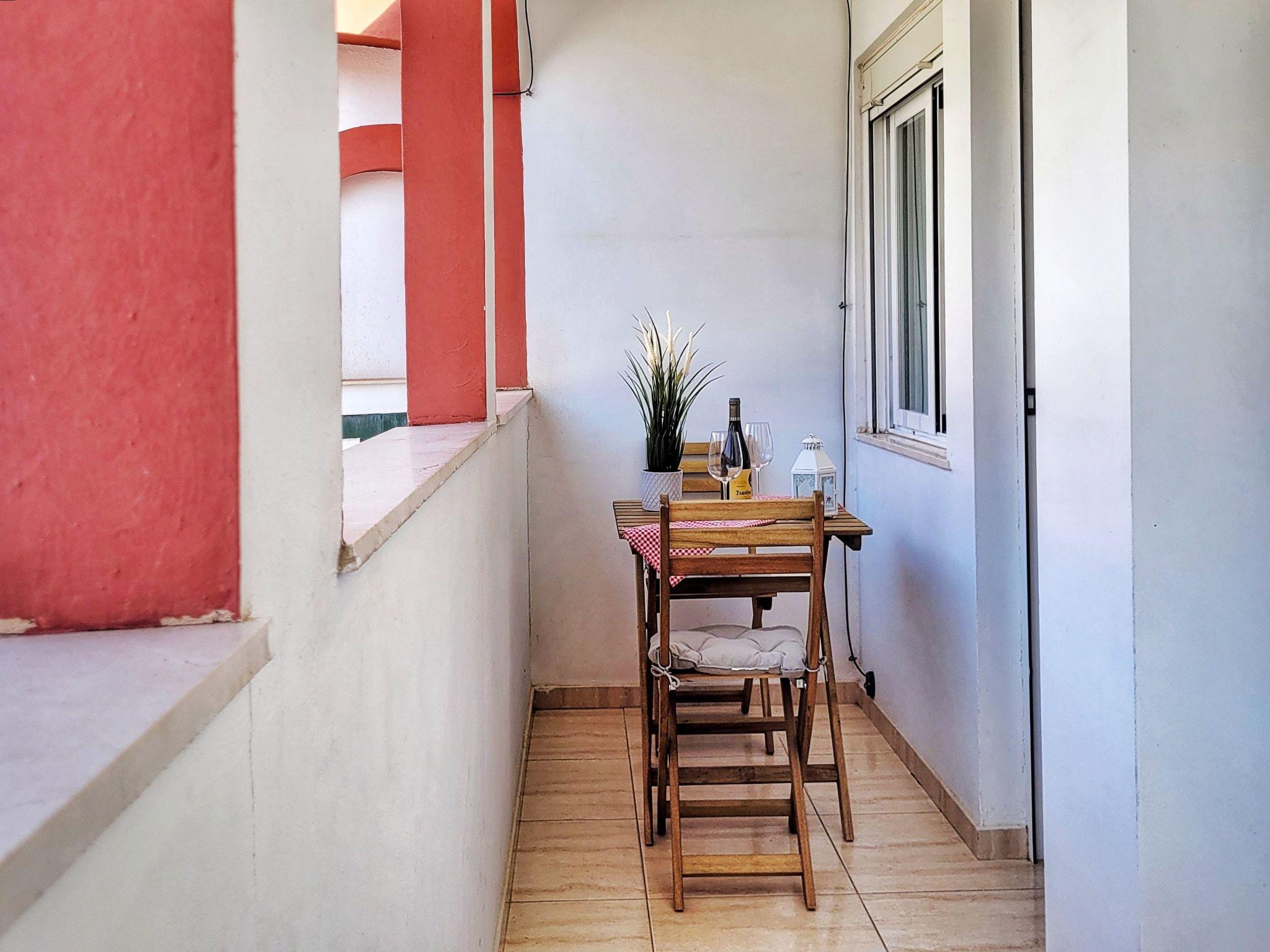 The flat has a nice terrace where you can have breakfast or dinner at a lovely little wooden table.