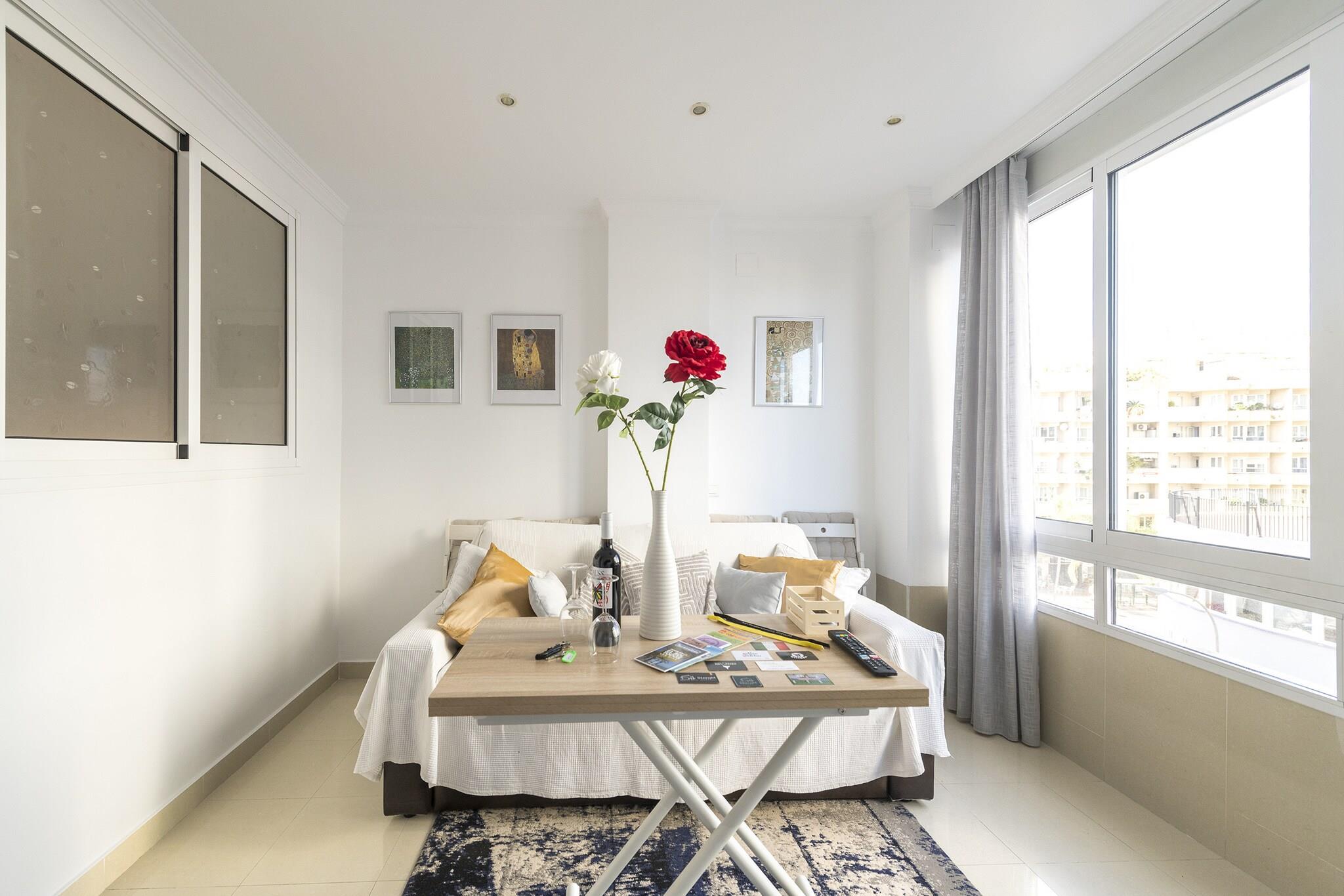 Denne charmerende lejlighed tilbyder den perfekte blanding af komfort og bekvemmelighed til din ferie. Den kan rumme op til 4 gæster og har et hyggeligt soveværelse, en rummelig opholdsstue med åbent køkken og et komplet badeværelse. Ejendommens iøjnefaldende træk er dens centrale, men fredelige beliggenhed, der giver nem adgang til både stranden og en række lokale tjenester. Med en behagelig udsigt er det et ideelt tilflugtssted for afslapning efter en dag med sightseeing. Udforsk det bedste af området med nærliggende attraktioner og aktiviteter. Tilbring dine dage med at slappe af på de smukke strande i Bajondillo, La Carihuela eller Playamar, alle kun en kort gåtur væk. For dem, der ønsker at udforske yderligere, kan du nyde naturskønne gåture langs promenaden eller prøve din hånd med vandsport som snorkling og paddleboarding. Vandreentusiaster kan vove sig ind i Sierra de Mijas, mens cyklister vil elske kystruterne. Det historiske centrum af Malaga og den maleriske landsby Mijas er også inden for rækkevidde. Ud over sin førsteklasses beliggenhed tilbyder lejligheden en række faciliteter til at forbedre dit ophold. Nyd gratis Wi-Fi, aircondition for komfort og sæsonbestemt adgang til bygningens private pool og bar. Uanset om du slapper af i lejligheden eller er ude på opdagelse, tilbyder denne ejendom alt, hvad du har brug for til en uforglemmelig ferie.