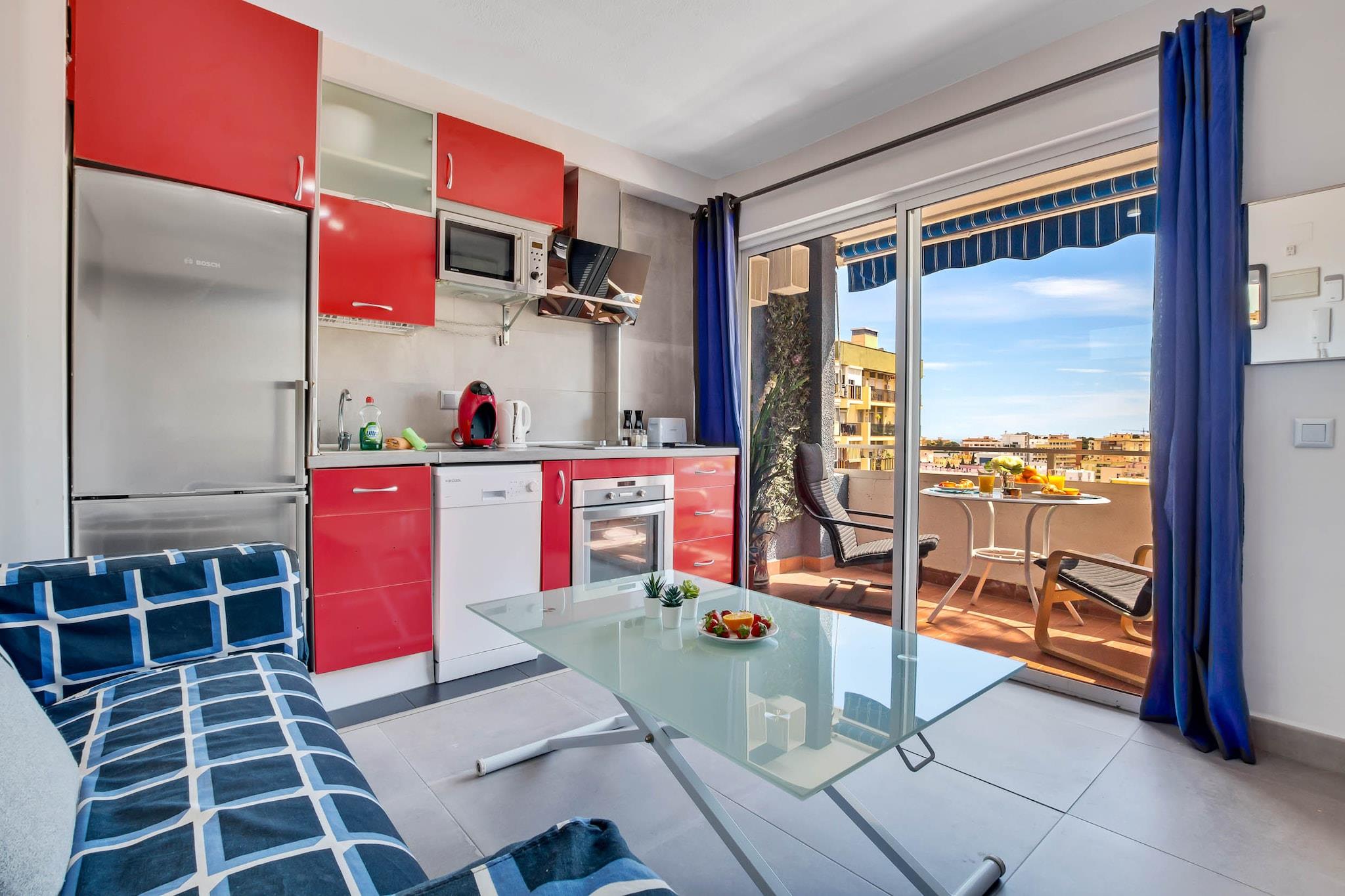 Denne hyggelige lejlighed, beliggende i hjertet af Torremolinos, tilbyder den perfekte base for en uforglemmelig ferie på Costa del Sol. Med en central beliggenhed er det let at gå til fantastiske strande, charmerende butikker, livlige barer og dejlige restauranter. Nyd udendørslivet med en privat terrasse, og gør brug af de moderne bekvemmeligheder som aircondition og gratis Wi-Fi for at sikre et afslappet og behageligt ophold. Torremolinos er en pulserende destination med noget for enhver smag. Slap af på de solbeskinnede strande, udforsk den travle promenade, eller dyk ned i byens historie ved at besøge det historiske centrum. Vandsportsentusiaster vil nyde det brede udvalg af tilgængelige aktiviteter, mens par kan opleve en romantisk ferie i denne charmerende kystby. Der er ingen mangel på spændende udflugter til nærliggende attraktioner eller fredelige øjeblikke på lokale caféer. Lejligheden tilbyder alle de nødvendige faciliteter, herunder et fuldt udstyret køkken til tilberedning af måltider, en komfortabel dobbeltseng og en rolig atmosfære til hvile og afslapning. Uanset om du er her for eventyr eller fritid, er SteraM Flats-teamet altid klar til at hjælpe, og sikrer, at dit ophold er intet mindre end fantastisk. Gå ikke glip af det – book dit ophold nu og nyd alt, hvad Torremolinos har at byde på!
