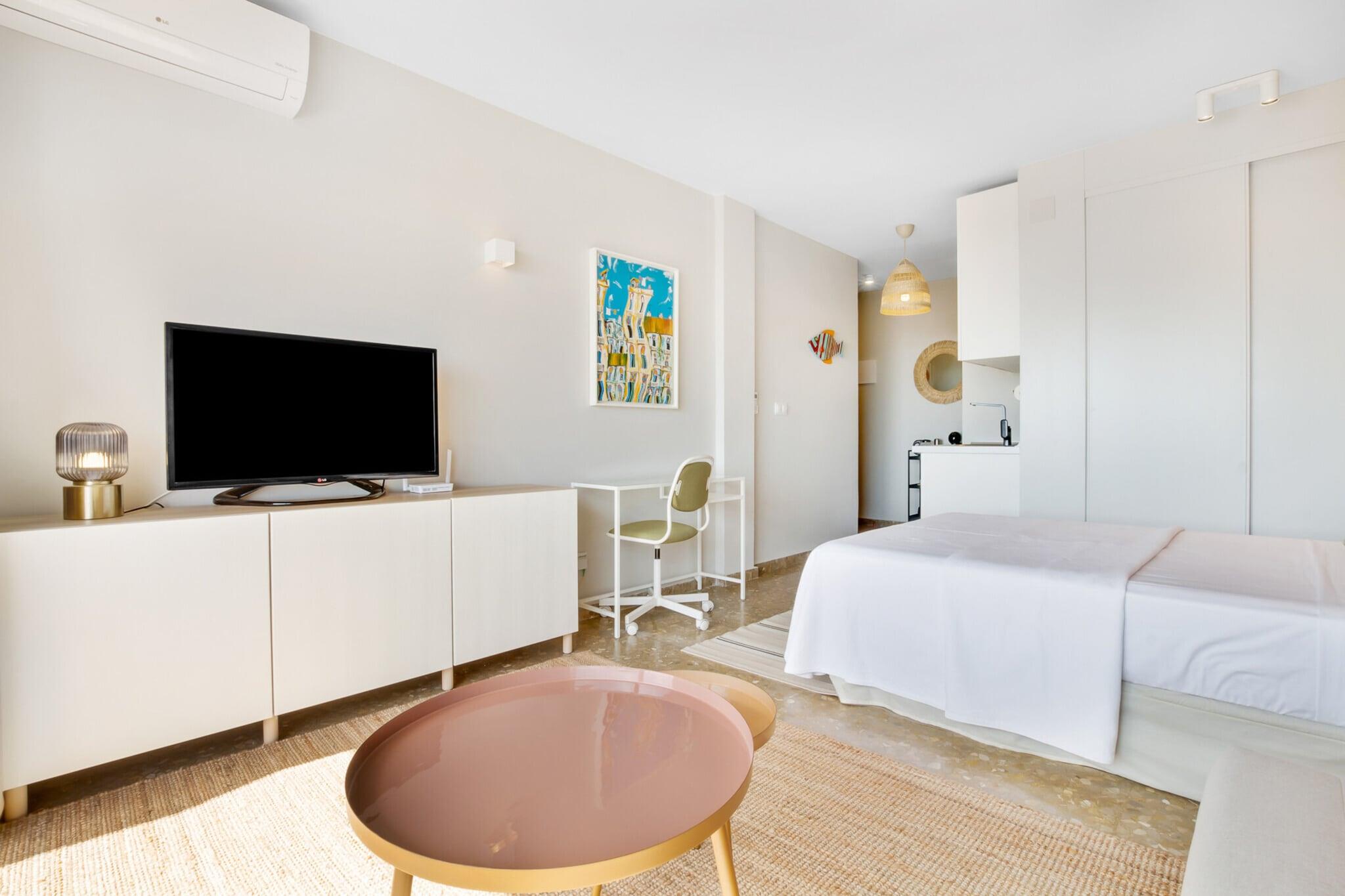 Dette charmerende feriehus, der er ideelt for par, byder på et veludstyret strandhus med et hyggeligt soveværelse med en dobbeltseng og plads til op til to gæster. Kæledyrselskere vil være glade for at vide, at ejendommen er kæledyrsvenlig, hvilket gør den til et passende valg for dem, der rejser med deres pelsede venner. Stuen har en komfortabel sofa, perfekt til afslappende aftener. Gæsterne kan også nyde frisk luft og havbrise fra en privat balkon. Under deres ophold er gæsterne velkomne til at benytte sig af gratis adgang til den fælles swimmingpool, hvilket tilføjer et ekstra element af afslapning. Beliggende kun 59 meter fra Playa de la Carihuela og en kort gåtur fra Playa de Bajondillo, er feriehuset omgivet af nogle af Torremolinos' bedste kystområder. Det ligger tæt på det travle byliv, med Calle San Miguel kun 1 km væk, der tilbyder et udvalg af caféer, restauranter og butikker. Daglige behov kan nemt opfyldes med nærliggende supermarkeder som Carrefour Express og Mercadona. Praktiske transportmuligheder omfatter Renfe Cercanías togstation 950 meter væk, Torremolinos busstation 2 km fra ejendommen og Málaga-Costa del Sol Internationale Lufthavn kun 8 km fra ejendommen, hvilket sikrer nem adgang for rejsende. Indenfor har ejendommen et funktionelt åbent køkken udstyret med glaskeramisk kogeplade, køleskab, mikrobølgeovn, ovn, fryser og alt nødvendigt køkkenudstyr, samt kaffemaskine, brødrister og elkedel. Der er også vaskemaskine, strygejern og hårtørrer til gæsternes bekvemmelighed.