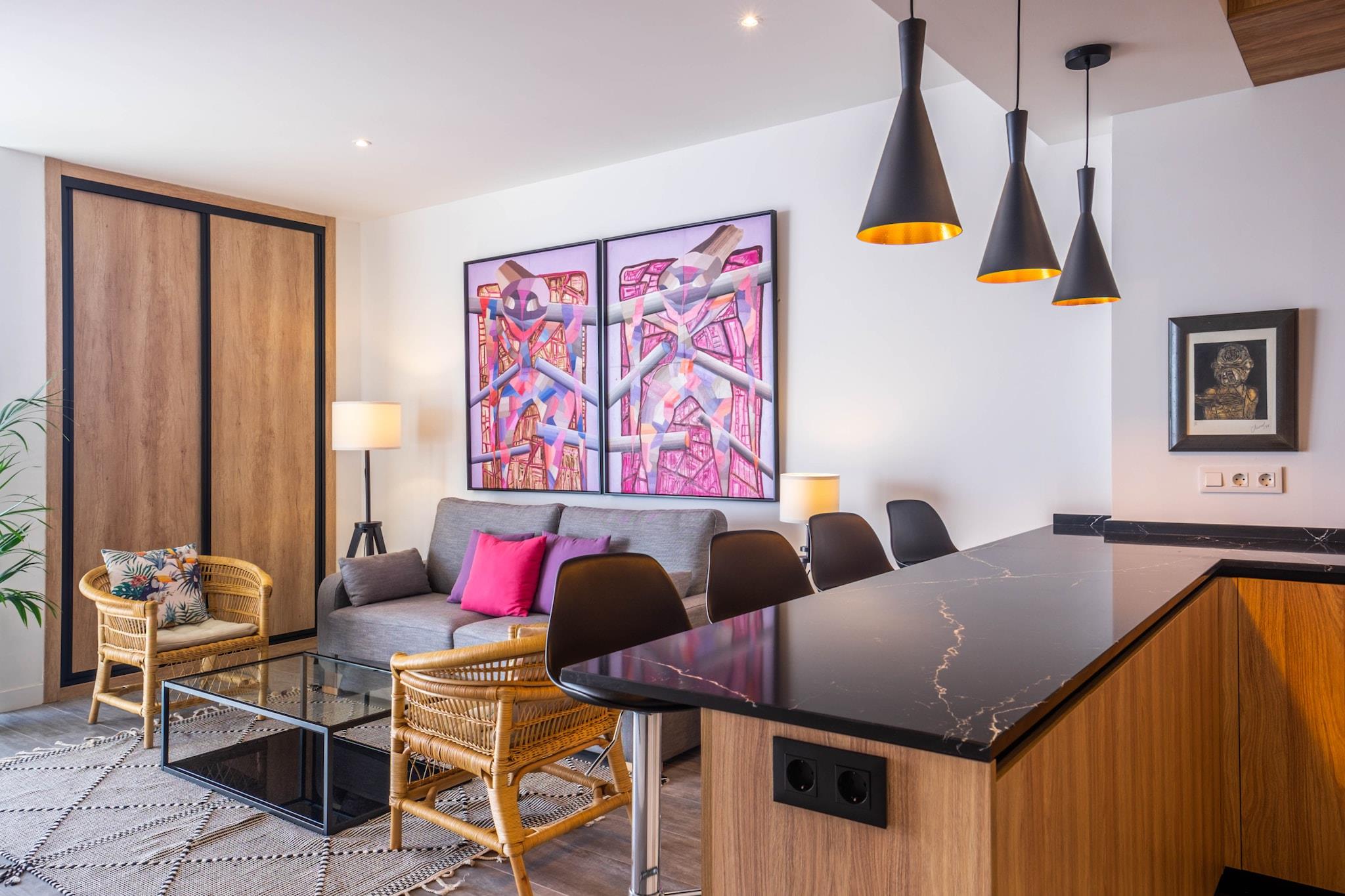 Nyd Costa del Sols gyldne glød fra denne stilfulde lejlighed, der er designet til små familier eller nære venner, der søger en afslappende ferie ved havet. Kun få skridt fra Bajondillo-stranden tilbyder dette solrige tilflugtssted den perfekte blanding af komfort, bekvemmelighed og betagende havudsigt. Indvendigt har lejligheden et roligt soveværelse med queensize-seng og en dobbelt sovesofa i opholdsstuen - komfortabelt med plads til op til fire gæster. Den åbne planløsning inkluderer et fuldt udstyret køkken, ideelt til at tilberede fælles måltider, og et hyggeligt opholdsområde, der løber direkte ud til din private terrasse. Forestil dig at nippe til morgenkaffen eller slappe af ved solnedgang med Middelhavet som baggrund. Beliggende i et fredeligt boligområde med direkte elevatoradgang til stranden, er du perfekt placeret til at udforske Torremolinos. Oplev charmen ved La Carihuela-stranden, kun fem minutters gang væk, eller slentre gennem butikkerne på Calle San Miguel. Familievenlige attraktioner som Aqualand og Crocodile Park ligger i nærheden og tilbyder sjov for alle aldre. Gæsterne har også adgang til en fælles pool, højhastigheds-Wi-Fi, smart-tv og aircondition. Bemærk venligst: Der kræves et refunderbart nøgledepositum for adgang til elevatoren, og det er muligt at leje solsenge i sommermånederne. Uanset om du søger en strandferie, en afslappet familieferie eller et sted at arbejde hjemmefra ved kysten, leverer denne lejlighed en uforglemmelig oplevelse ved havet.