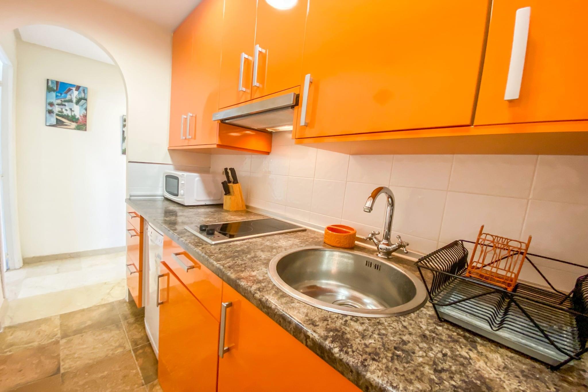 Omfavn middelhavslivsstilen i dette charmerende studiolejlighedskompleks ved stranden, perfekt til par, der søger en rolig kystferie. Beliggende direkte på sandstranden i Torremolinos tilbyder dette hyggelige tilflugtssted uforstyrret havudsigt og direkte adgang til stranden. Studiolejligheden har et komfortabelt soveværelse med to enkeltsenge, der giver afslappende nætter efter solrige dage. Et fuldt udstyret køkken med mikrobølgeovn, keramisk kogeplade, køleskab og opvaskemaskine giver mulighed for nem madlavning. Det moderne badeværelse med bruser bidrager til komforten under dit ophold. Træd ud på den private terrasse for at nyde din morgenkaffe eller en romantisk middag ved solnedgang, alt imens du lytter til de blide bølger. Beliggende i det pulserende Playamar-kvarter, er du kun en kort gåtur fra den livlige promenade, der er fyldt med chiringuitos, der tilbyder lokale delikatesser som espetos. Udforsk nærliggende attraktioner såsom det historiske Casa de los Navajas, den travle shoppinggade Calle San Miguel og familievenlige destinationer som Aqualand og Crocodile Park. Faciliteterne inkluderer aircondition, højhastigheds-Wi-Fi, et fladskærms-tv og adgang til en fælles pool (tilgængelig fra 1. juni til 30. september). Bemærk venligst, at yderligere omkostninger inkluderer et refunderbart nøgledepositum for elevatoradgang til stranden og valgfrie tjenester som leje af liggestole i sommermånederne. Uanset om du planlægger en romantisk ferie eller et fredeligt tilflugtssted, tilbyder denne studiolejlighed de perfekte rammer til at slappe af og udforske Costa del Sols skønhed.
