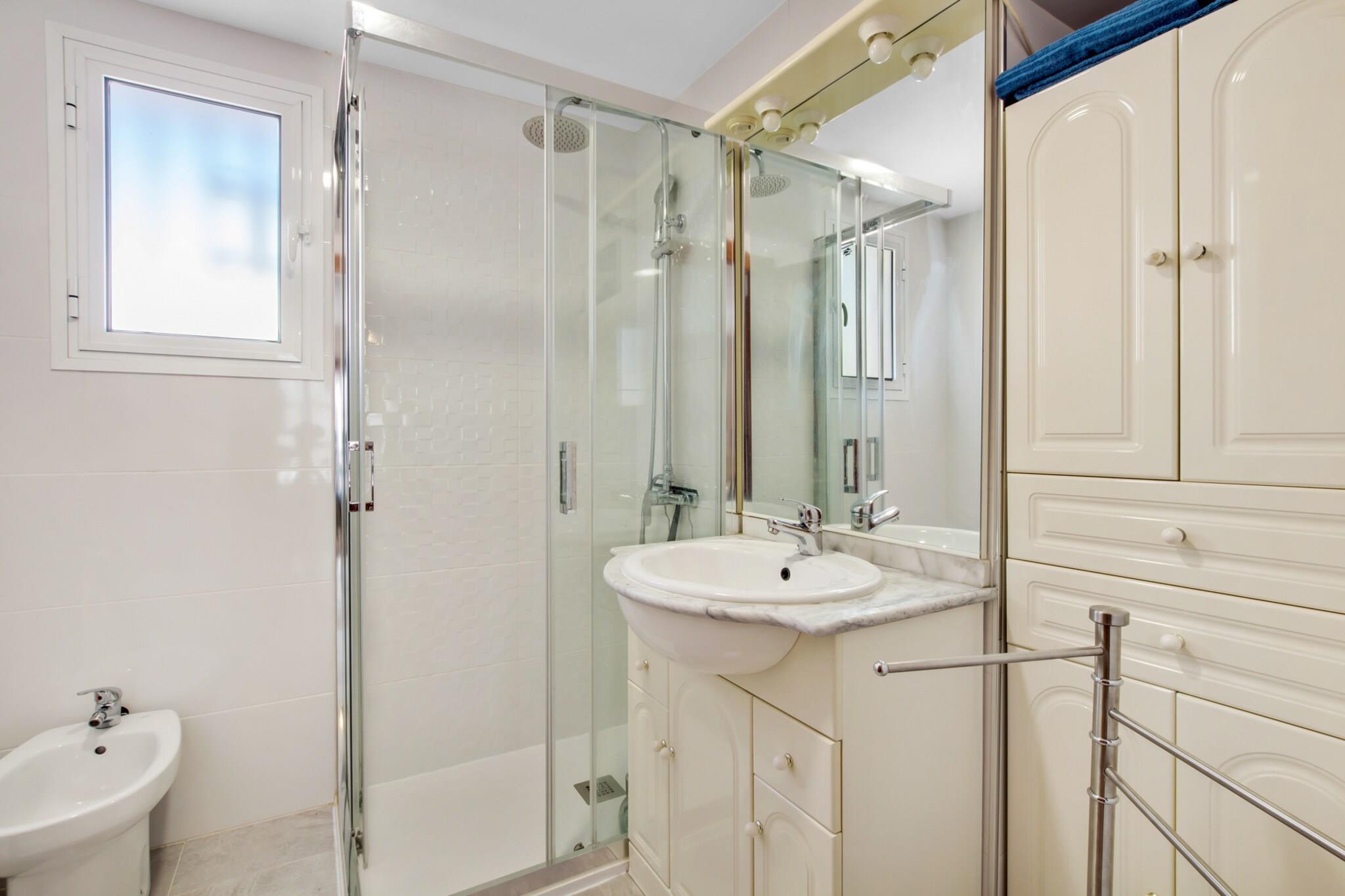 Denne dejlige lejlighed med to soveværelser ligger i en malerisk enklave og tilbyder et roligt tilflugtssted for familier, der søger både afslapning og eventyr. Boligen har plads til op til fire gæster og har en komfortabel dobbeltseng i det ene værelse og to enkeltsenge i det andet, begge udstyret med aircondition for at sikre en god nats søvn. Den rummelige stue-spisestue tilbyder et hyggeligt sted at slappe af, komplet med et Smart TV og højhastigheds-Wi-Fi til dine underholdningsbehov. Et fuldt udstyret køkken, inklusive et stort køleskab, mikrobølgeovn og keramisk kogeplade, giver mulighed for nem madlavning, mens den private terrasse tilbyder et roligt sted at nyde din morgenkaffe eller aftenbrisen. Lejlighedens førsteklasses beliggenhed ligger kun en kort gåtur fra det gyldne sand og placerer dig inden for rækkevidde af en række familievenlige attraktioner. Udforsk det pulserende lokale miljø med dets udvalg af restauranter og barer, eller tag en afslappet gåtur til nærliggende parker og kulturelle seværdigheder. Området byder på en blanding af afslapning og underholdning, hvilket sikrer, at både voksne og børn får et mindeværdigt ophold. Efter en dag med udforskning kan du vende tilbage til din komfortable oase for at slappe af og genoplade. Uanset om du slapper af i den indbydende opholdsstue, tilbereder et familiemåltid i det veludstyrede køkken eller nyder den friske luft på terrassen, tilbyder denne lejlighed de perfekte rammer for at skabe dyrebare familieminder. Med sin kombination af moderne bekvemmeligheder, bekvemme beliggenhed og charmerende atmosfære er det et ideelt valg til din næste kystferie.