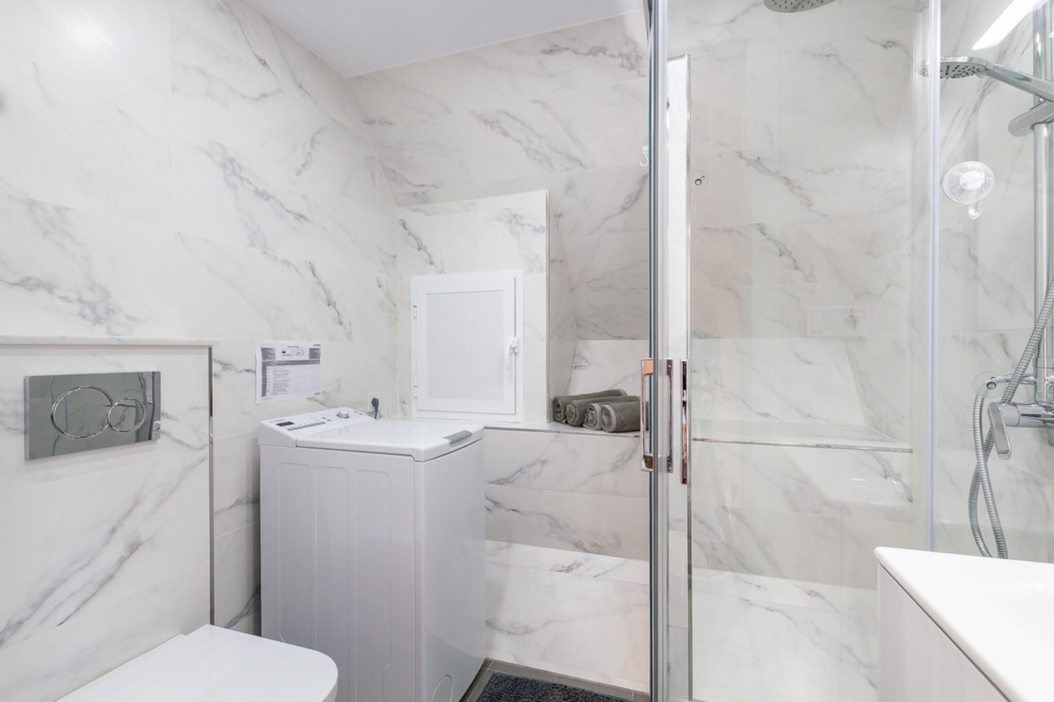 På 4. etage: (åbent køkken(elkedel, brødrister, kaffemaskine, mikrobølgeovn, køle-fryseskab, ), stue / spisestue(Fjernsyn(Smart-TV), spisebord, sofahjørne), soveværelse(dobbeltseng), soveværelse(dobbeltseng), badeværelse(bruser), Internetadgang) Internetadgang, tørretumbler, vaskemaskine, varme, klimaanlæg, terrasse, parkering, swimmingpool(deles med andre gæster), strygejern, føntørrer, , Wine glasses