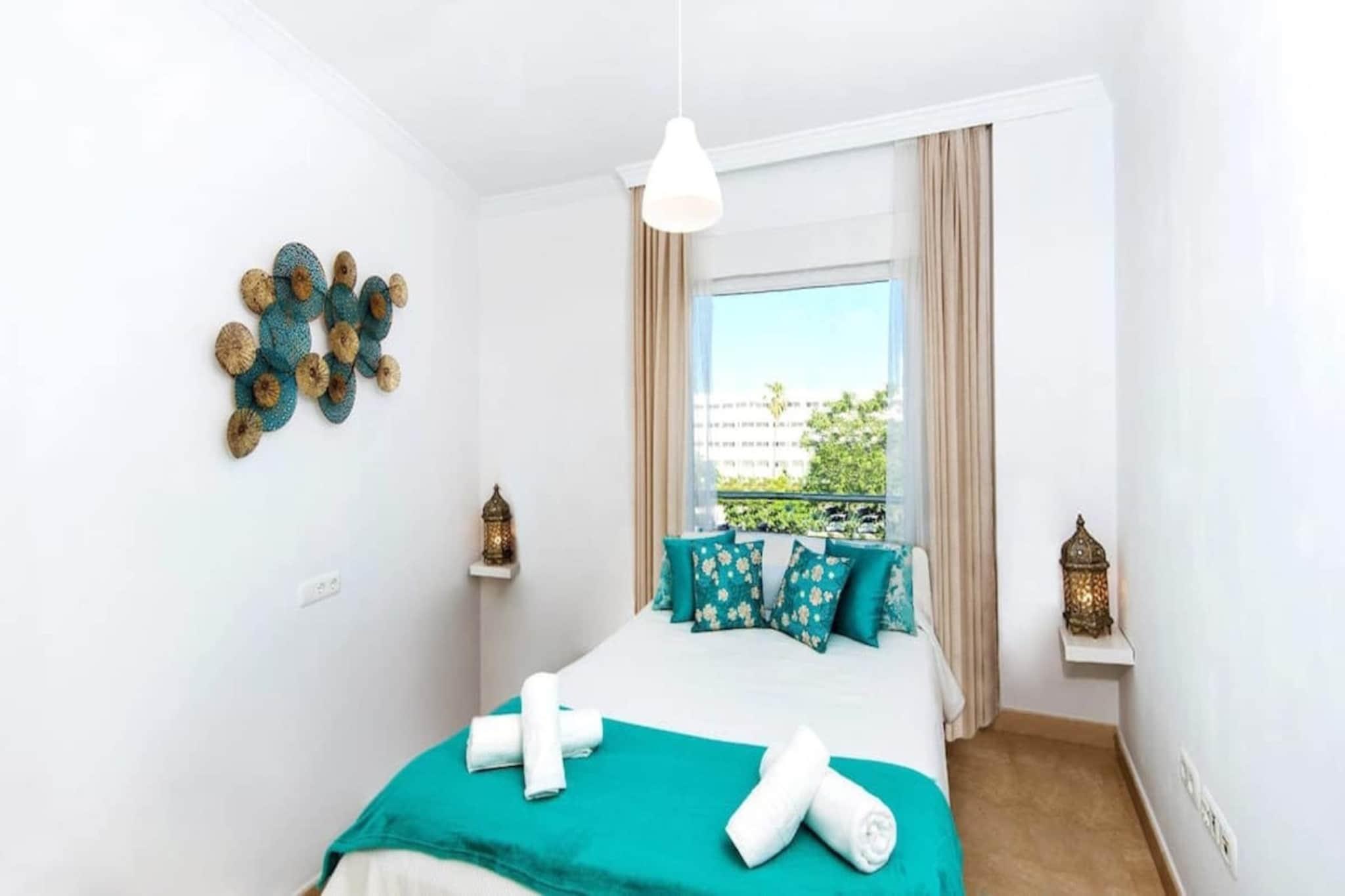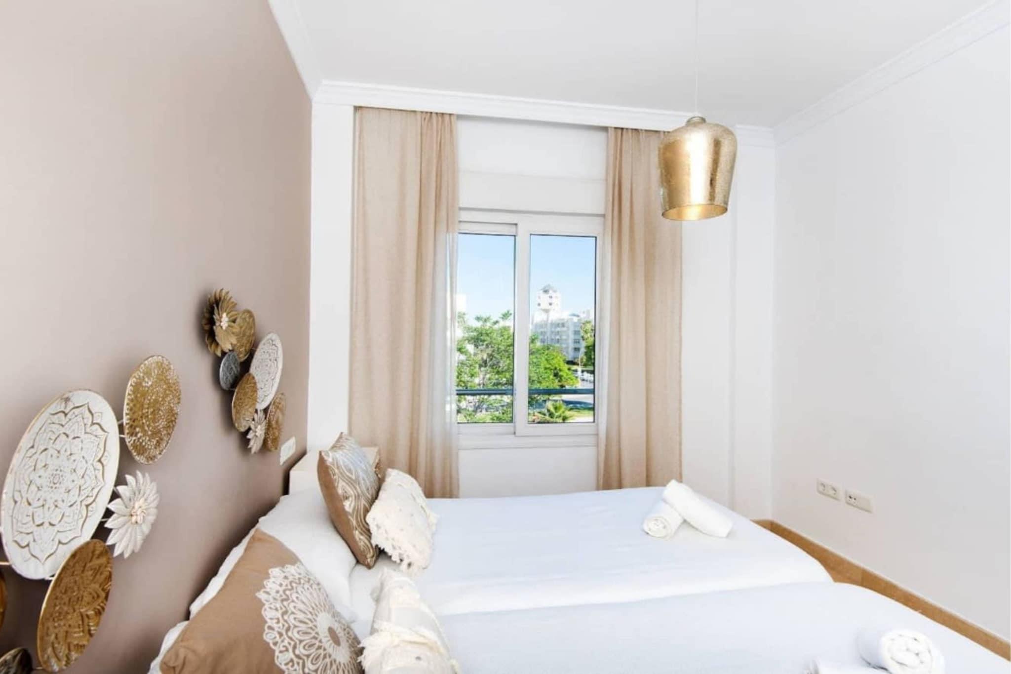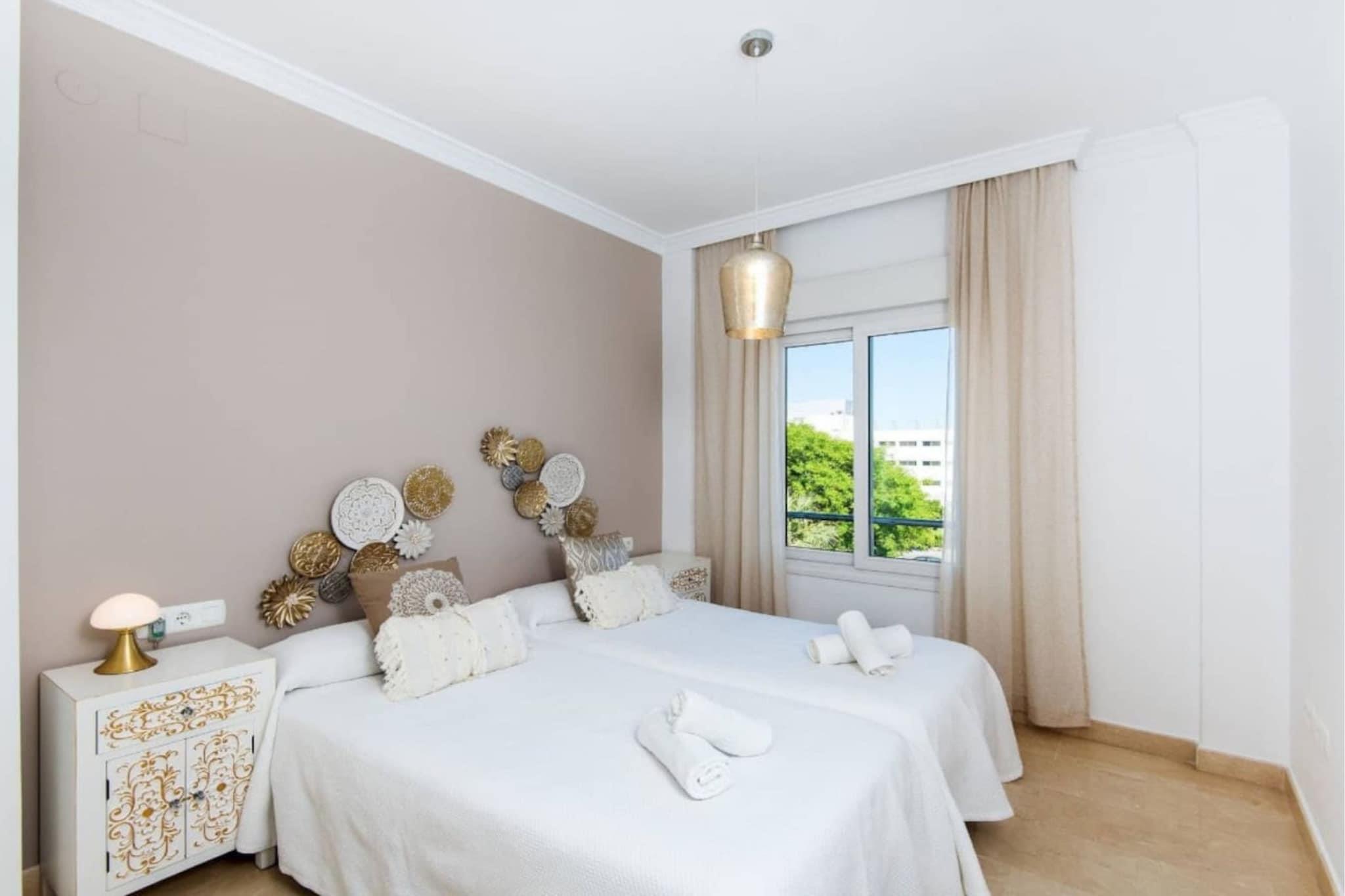 Træd ind i et fredfyldt kystnært tilflugtssted kun få minutter fra Torremolinos' solkyssede kyster. Denne rummelige og stilfulde lejlighed med 3 soveværelser tilbyder en harmonisk blanding af komfort og moderne design, perfekt til familier eller grupper, der søger en afslappende ferie. Med to veludstyrede badeværelser, et fuldt udstyret køkken og en lys opholdsstue kan gæsterne nyde alle hjemmets bekvemmeligheder. Den private terrasse tilbyder et roligt sted at slappe af med udsigt over det omkringliggende område. Lejligheden ligger i et fredeligt kvarter, kun en kort gåtur fra den pulserende strandpromenade, hvor du kan udforske lokale caféer, restauranter og butikker. For dem, der ønsker at udforske længere, tilbyder den nærliggende togstation nem adgang til de kulturelle attraktioner i Málaga og omegn. Uanset om du er interesseret i at slappe af ved den udendørs pool, tage en afslappet spadseretur langs stranden eller udforske regionens rige historie, fungerer denne lejlighed som en ideel base for dine eventyr. Ideel til familier, par eller venner, der rejser sammen, tilbyder denne kystparadis komfortable og bekvemme rammer for at skabe varige minder. Med sin blanding af moderne bekvemmeligheder og førsteklasses beliggenhed kan gæsterne opleve det bedste af Torremolinos, mens de nyder komforten i et veludstyret hjem væk fra hjemmet.