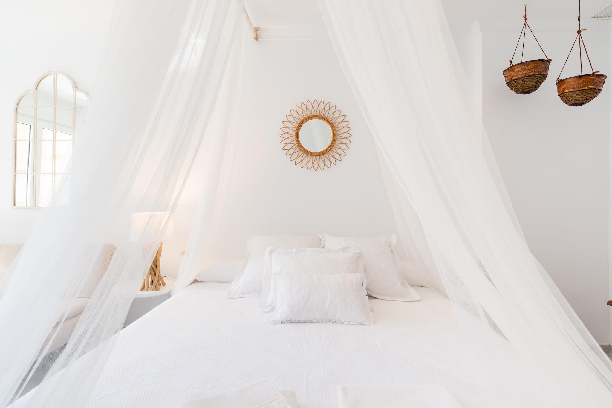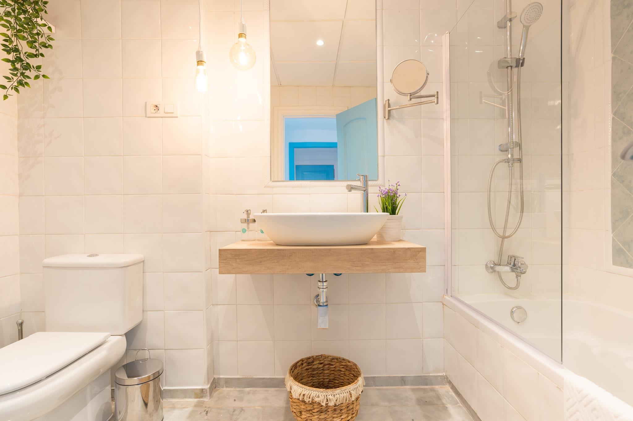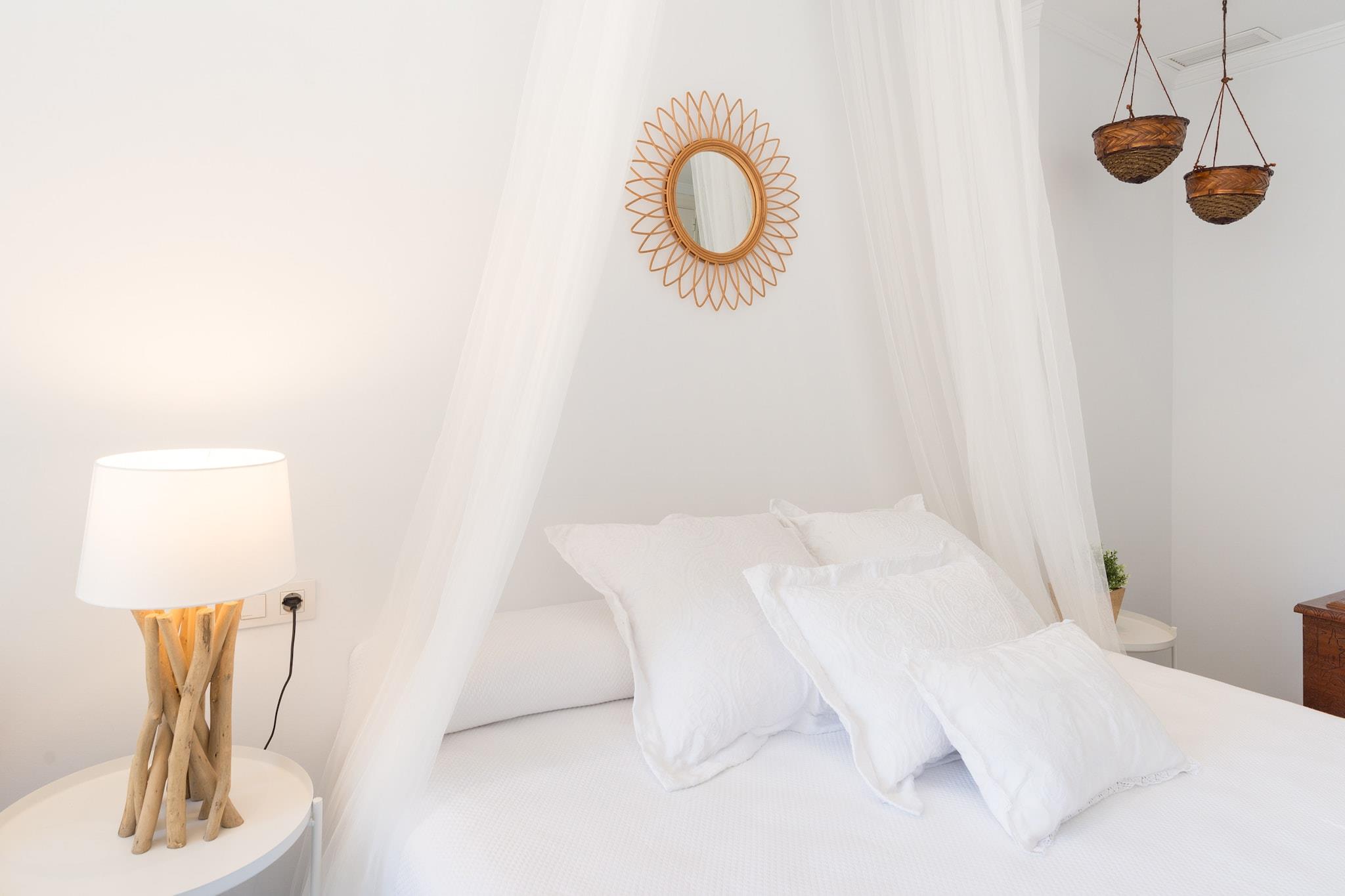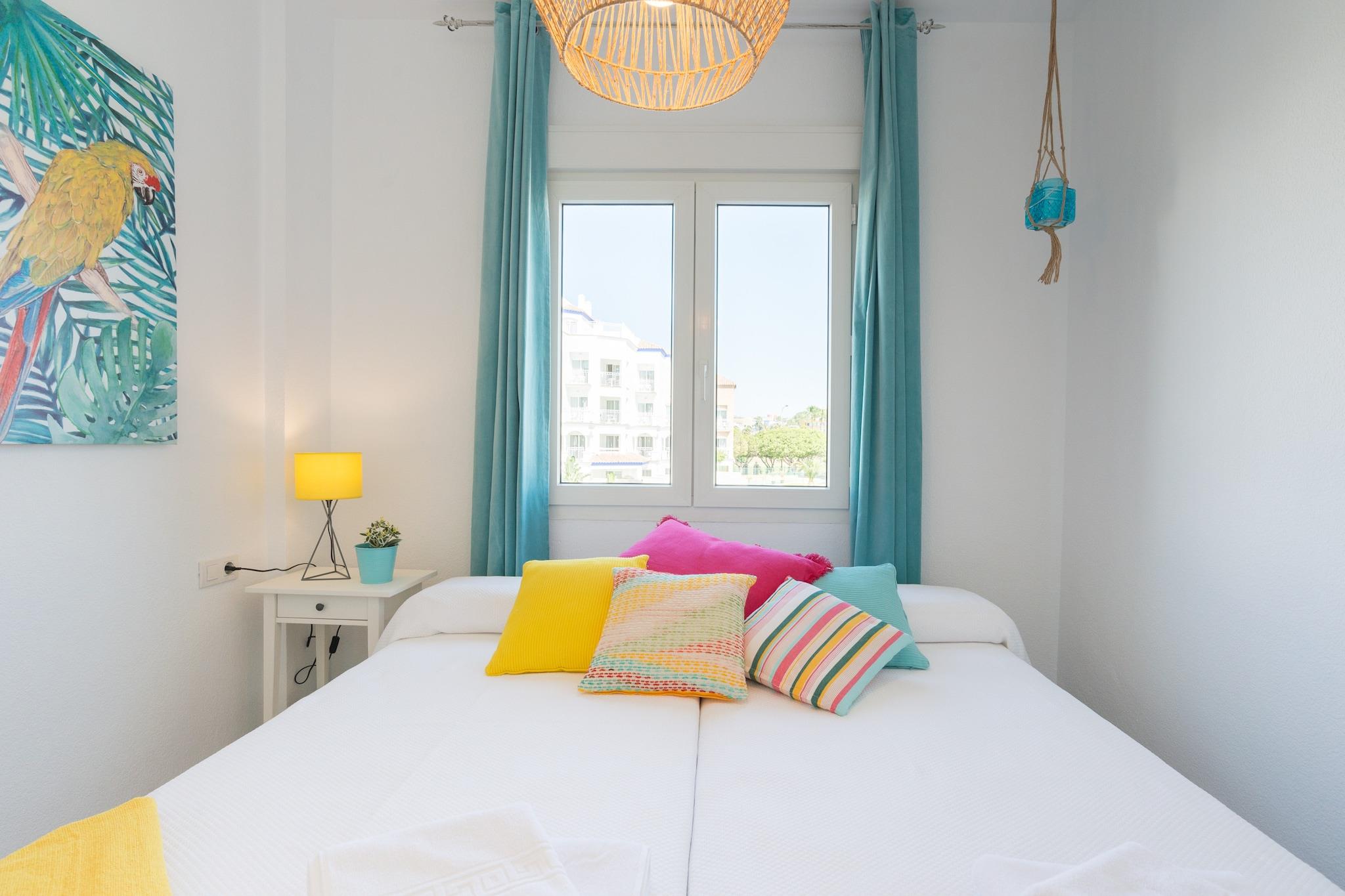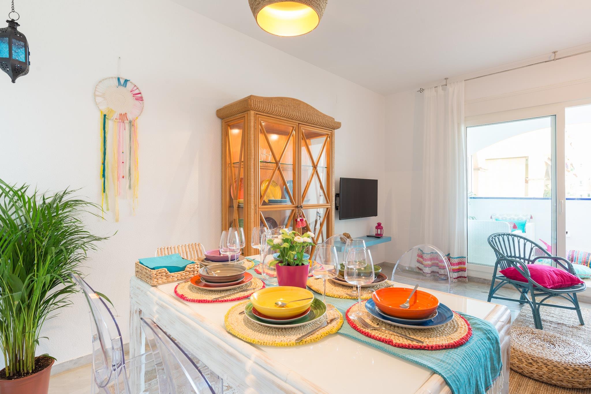 Nyd den afslappede elegance i denne boheme chikke 2-værelses lejlighed, ideelt beliggende kun få skridt fra Torremolinos' gyldne sandstrand. Lejligheden er designet til at rumme op til 8 gæster og har et soveværelse med en XXL himmelseng, et andet soveværelse med to enkeltsenge, der kan adskilles, og en rummelig opholdsstue med en sovesofa, der er egnet til to voksne. Det fuldt udstyrede køkken kan prale af moderne apparater, herunder opvaskemaskine, Nespresso-kaffemaskine og juicer, hvilket sikrer et behageligt ophold. En privat terrasse tilbyder en fantastisk havudsigt og er den perfekte ramme for afslapning. Denne lejlighed er perfekt til familier, vennegrupper eller par, der søger et rummeligt og stilfuldt strandparadis. Dens nærhed til stranden og lokale attraktioner gør den til en fremragende base for at udforske den pulserende kultur og naturlige skønhed på Costa del Sol. Gæsterne kan nyde den sæsonåbne saltvandspool, der er åben fra 1. juni til 15. september, og slappe af i de frodige haveområder med hængekøjer. Der tilbydes gratis cykler til at køre langs den maleriske promenade. Lejligheden er også kæledyrsvenlig, så dine pelsede venner kan deltage i det sjove. Nærliggende attraktioner inkluderer Playa El Bajondillo, La Carihuela-stranden, det historiske Casa de los Navajas og det store vandland Aqualand. Med nem adgang til offentlig transport og Málaga Lufthavn kun 6 km væk, er eventyr og afslapning lige uden for døren. Yderligere information Gebyrer for sen indtjekning: Ankomst mellem kl. 21:00 og 23:00 medfører et gebyr på EURO30; mellem kl. 23:00 og 01:00, EURO50. Depositum: Et refunderbart depositum på op til EURO300 kan være påkrævet for at dække eventuelle skader under dit ophold. Sæsonbestemt pool: Den udendørs pool er åben fra 1. juni til 15. september.