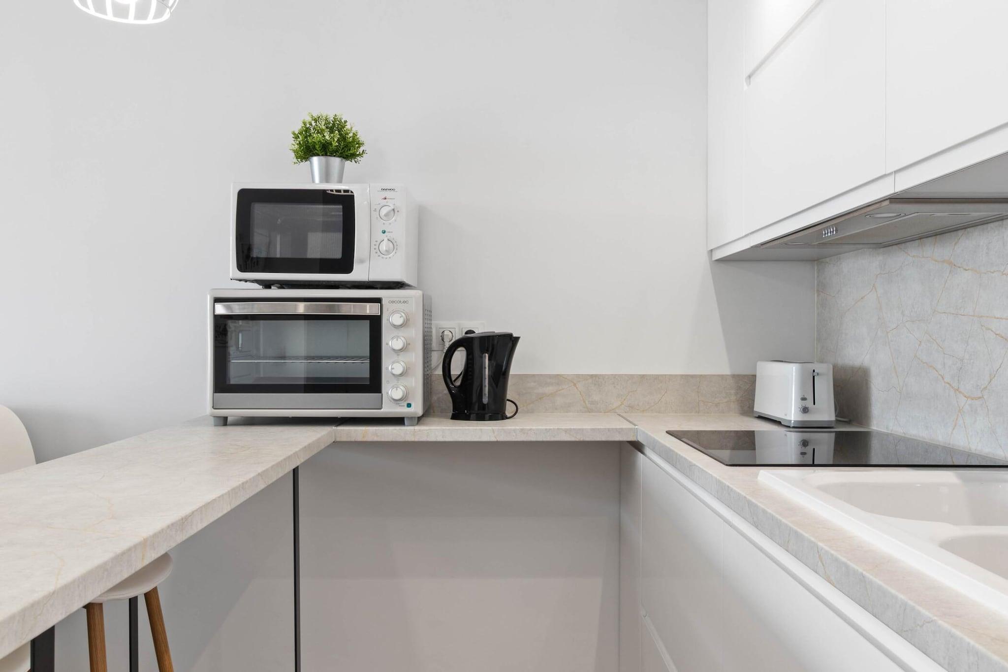 Casa Mauro er en lys og indbydende lejlighed beliggende i hjertet af Torremolinos, kun 750 meter fra stranden og få skridt fra bymidten og togstationen. Uanset om du er her for solen, havet eller den lokale kultur, er denne lejlighed den perfekte base for din kystferie. Lejligheden har et komfortabelt soveværelse med en dobbeltseng (150x200 cm) og aircondition, samt en hyggelig stue med en sovesofa - ideel til par eller små familier. Gå udenfor til en privat terrasse, hvor du kan nyde en fantastisk panoramaudsigt over havet og de omkringliggende bjerge. Det er det perfekte sted til en morgenkaffe eller en drink ved solnedgang. Køkkenet er fuldt udstyret med alt hvad du behøver, inklusive mikrobølgeovn, ovn, brødrister, elkedel og kaffemaskine - ideelt til at nyde måltider derhjemme. Du har også adgang til hurtig Wi-Fi, et fladskærms-tv og en vaskemaskine for ekstra bekvemmelighed. Om sommeren kan du tage en dukkert i den fælles pool for at køle af efter en dag på stranden. Sengelinned, håndklæder, aircondition, internet og slutrengøring er inkluderet i dit ophold. Med sin uovertrufne beliggenhed, smukke udsigt og moderne komfort tilbyder Casa Mauro alt, hvad du behøver for en afslappende ferie i Torremolinos.