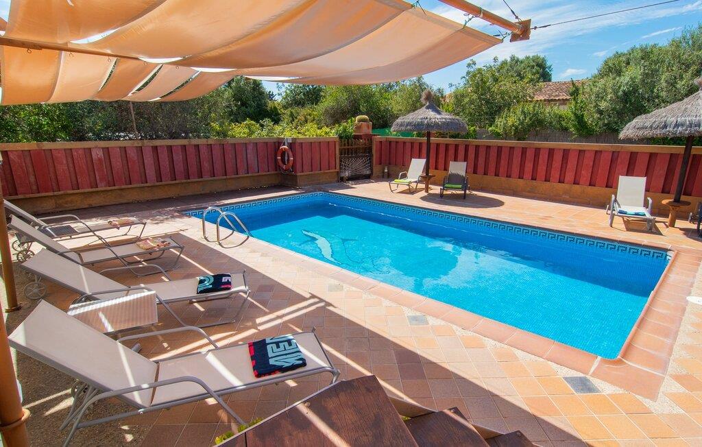 Feriehuset "Torrent Sa Plana" er omgivet af en stor grund 1 km fra Costa de los Pinos' østkyst Der er ikke mange familievenlige feriehuse på Mallorca med et så stort udvalg af spil til børn. Der er en græsfodboldbane, en basketballbane, et bordtennisbord, en bjælkehytte med en legeplads og mange andre børns drømme Mens voksne kan give frie tøjler til deres trang til at bevæge sig på den 4.500 m² store indhegnede ejendom, kan de voksne slappe af på de komfortable siddepladser under den hyggelige, store terrasse. Andre højdepunkter omfatter det veludstyrede udekøkken med grill og den smukke pool område, hvor et fortelt kan give masser af skygge, hvis det ønskes. Sommerhusets indretning byder velkommen med en velholdt, landlig atmosfære med masser af træ og nænsomt indrettede detaljer. Hovedopholdet er en hyggelig blanding af stue, spisestue område og et åbent, fuldt udstyret køkken. De fire soveværelser med dobbeltsenge kan have aircondition og hver har eget badeværelse med badekar. Udenfor de varme sommermåneder er her lige så hyggeligt, da huset er udstyret med radiatorer og varm-kold aircondition. Tag smukke minder med hjem fra jeres familieferie i dette specielle feriehus på Mallorcas østkyst. "Torrent Sa Plana" er omgivet af en stor grund 1 km fra østkysten af Costa de los Pinos Det familievenlige feriested Cala Millor med sin sandstrand, restauranter og butikker kan nås på 10 minutter med. bil.