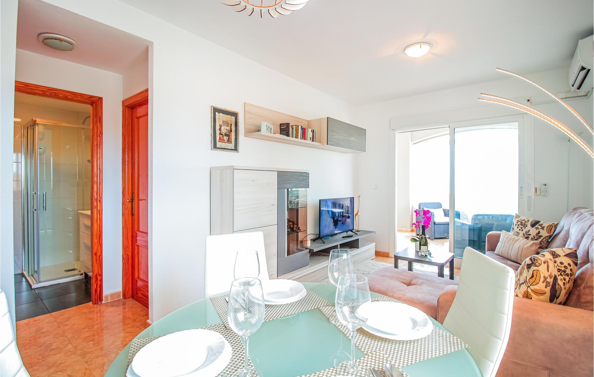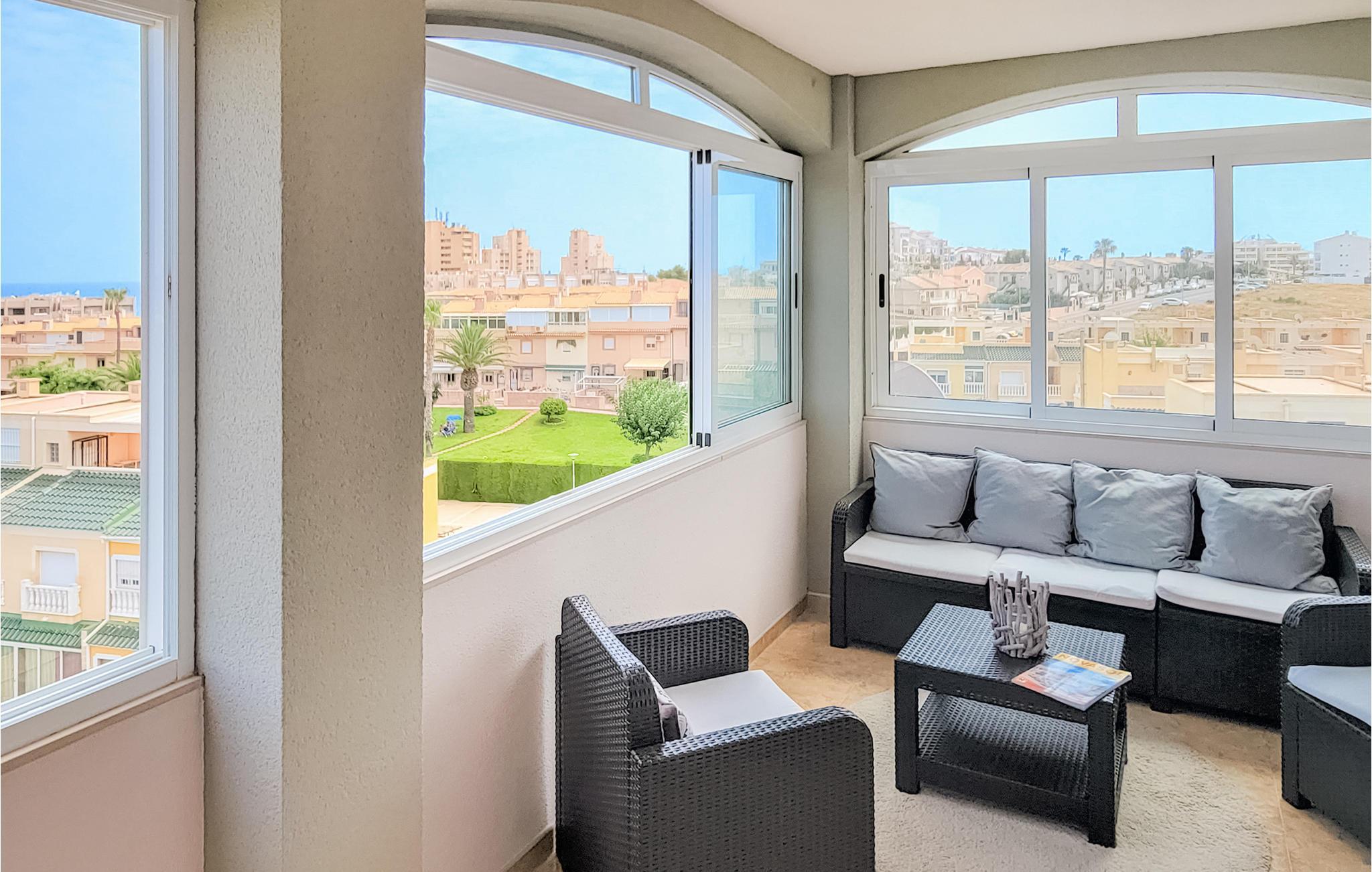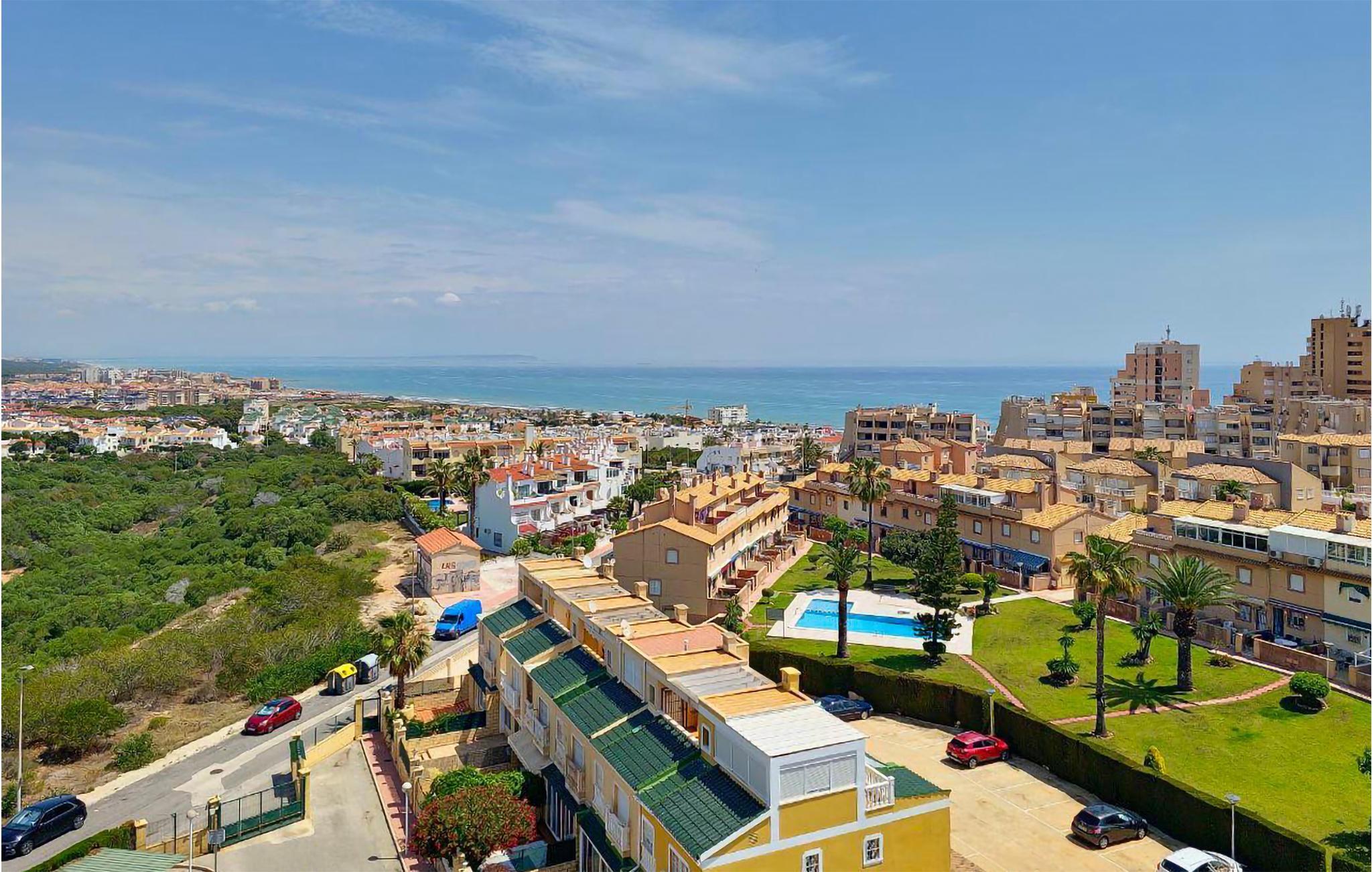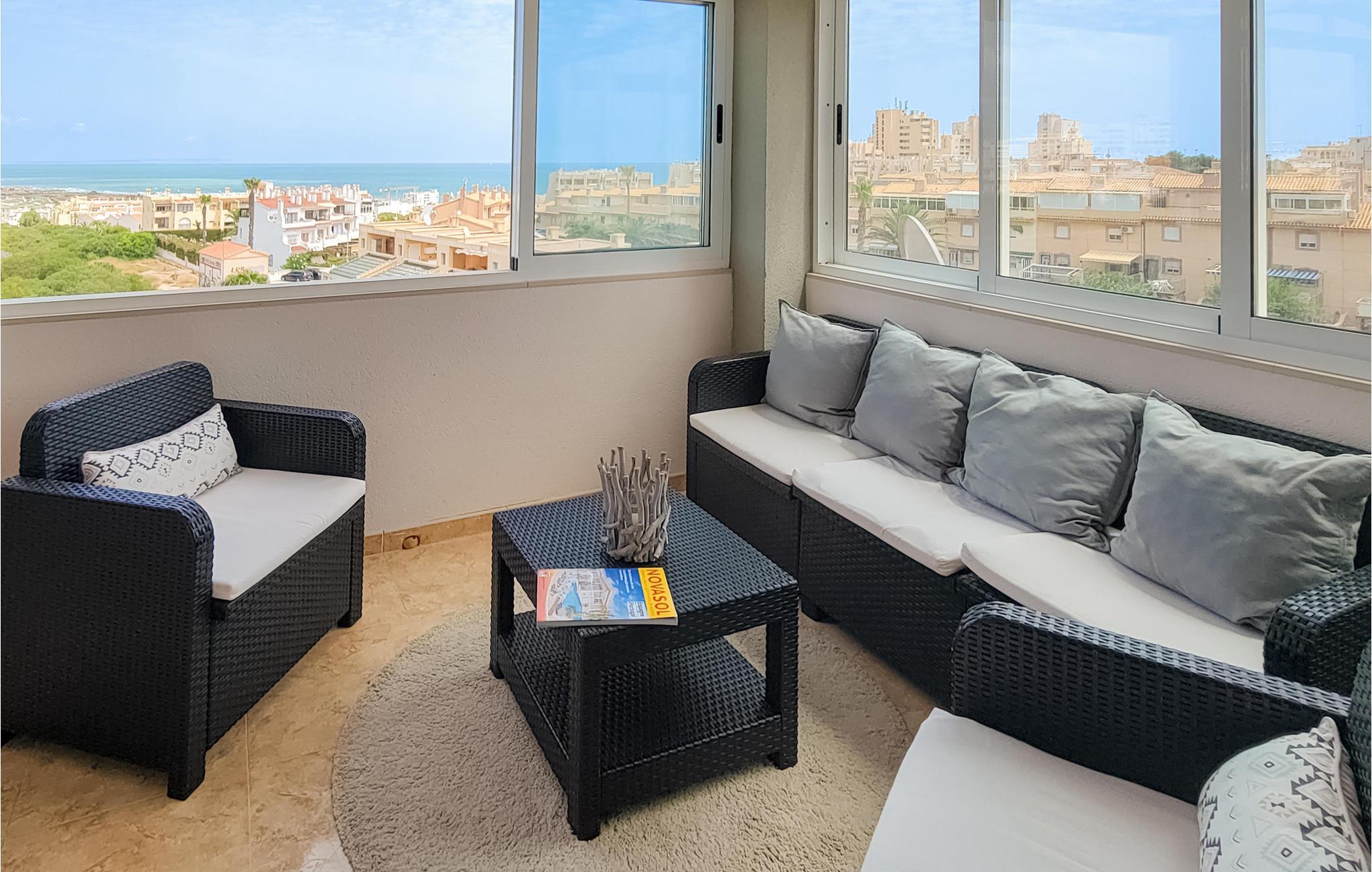 I La Mata, lige uden for Torrevieja, finder I denne dejlige feriebolig, der bliver jeres base på en skøn familieferie ved havet. Et moderne interiør og nogle attraktive farver skaber en behagelig atmosfære og en oase, hvor I kan slappe af efter en skøn, begivenhedsrig dag. Her kan I lave sammen om aftenen eller bare smække fødderne op i sofaen. I kan nyde de lange aftener på terrassen med en vidunderlig panoramaudsigt over havet. Og så kan I starte dagen med en dukkert i poolen eller gå ned til den smukke strand.