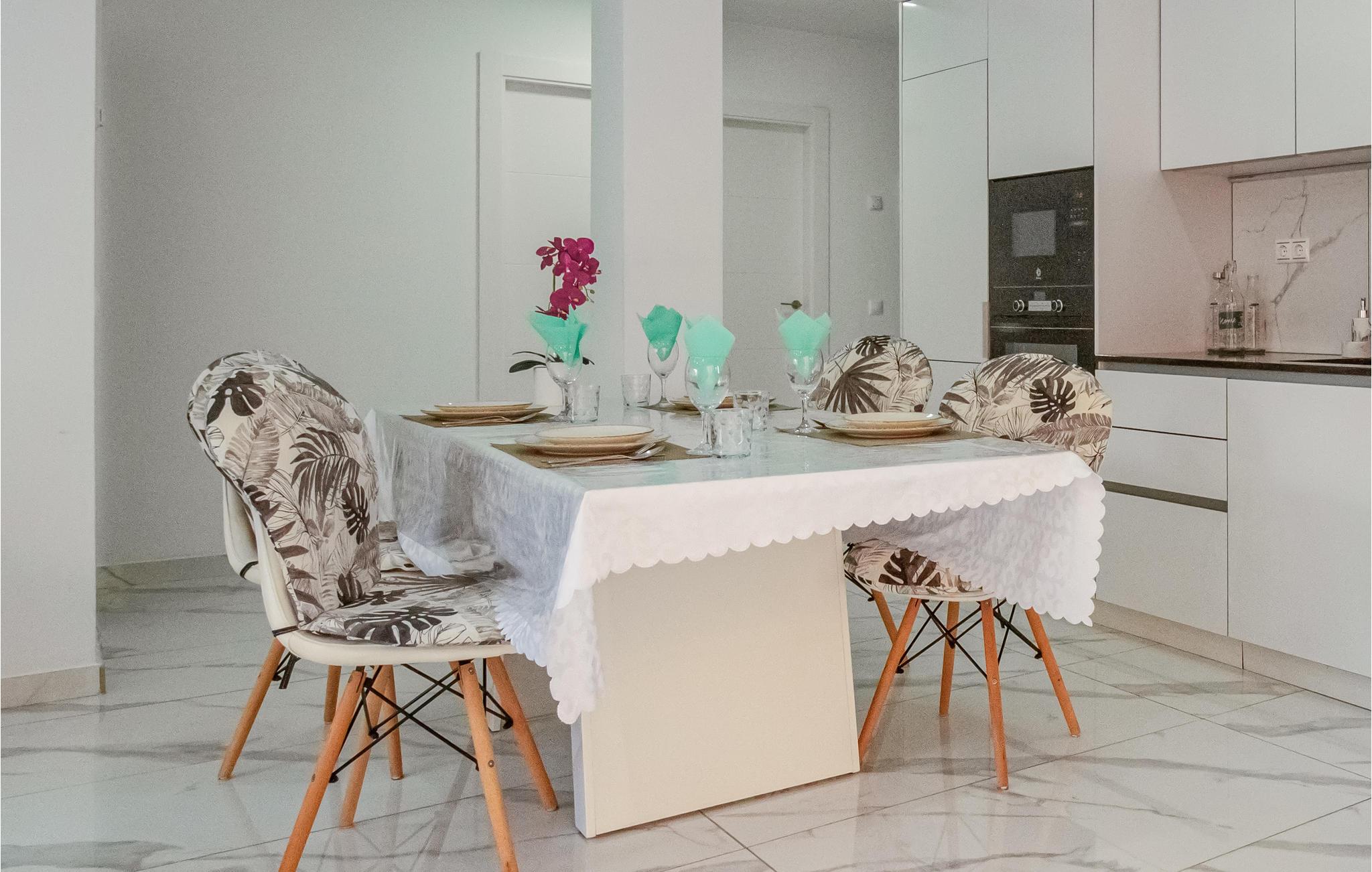 Leder I efter en moderne og veludstyret ferielejlighed, der giver jer en rigtig god beliggenhed til en dejlig ferie med strand og god mad? Se nærmere på denne lyse ferielejlighed med smagfuld indretning. Efter en smuk dag kan I lægge planer for i morgen og snakke over en forfriskning på balkonen med havudsigt. Tilbered en lækker morgenmad sammen, inden I dykker ned i den fælles udendørs pool eller går en tur til stranden.