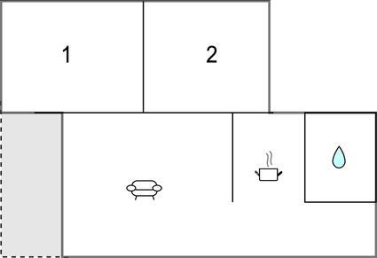 Soveværelse 8m2 (nr. 2) - 2 Sovepladser. (Enkeltseng(e)).