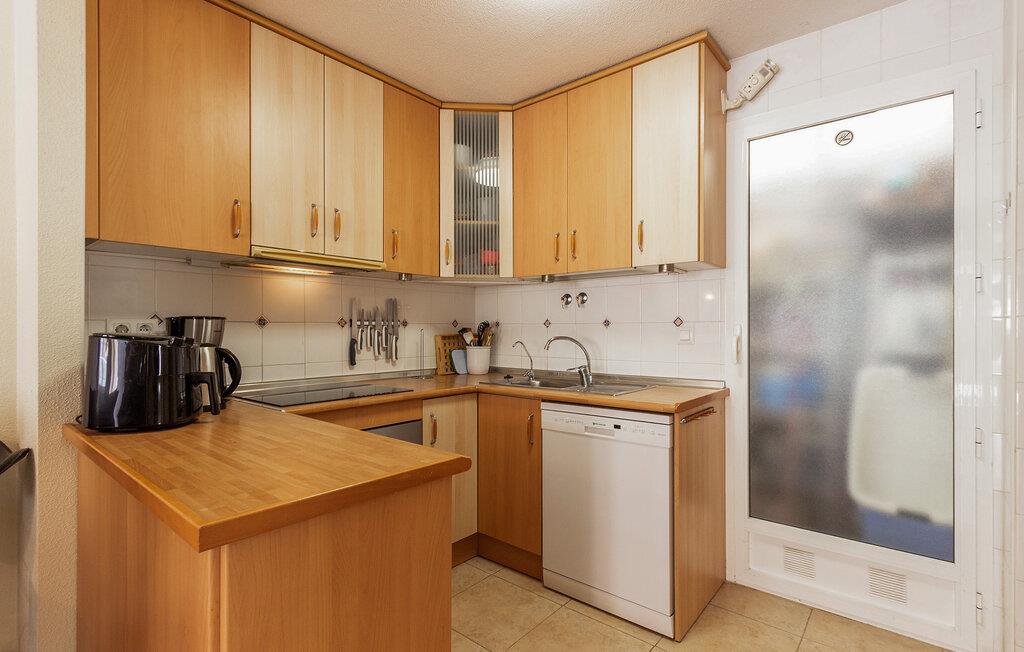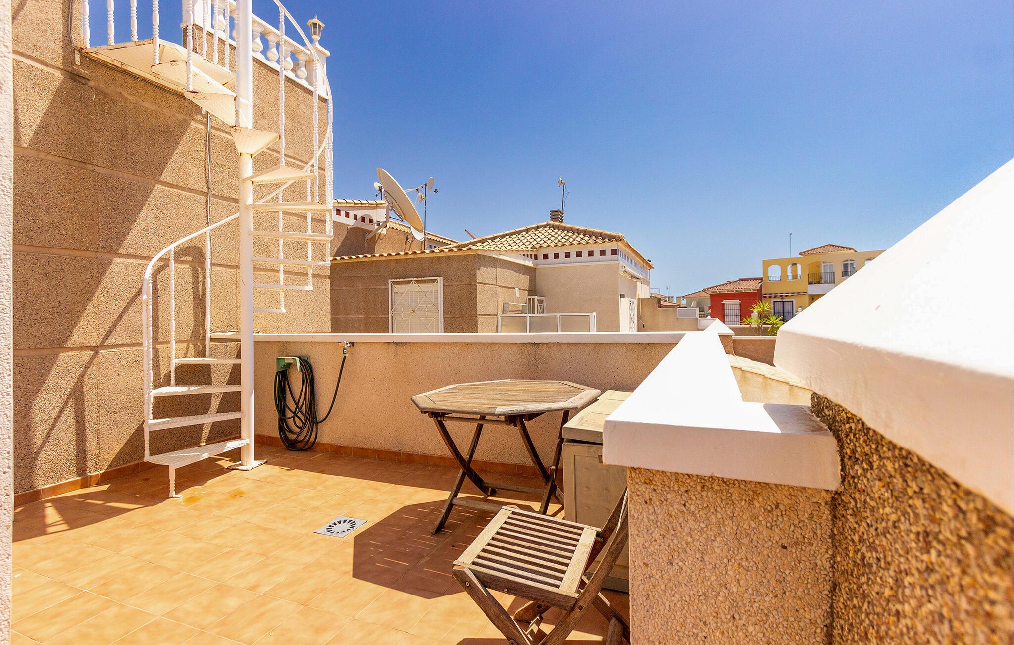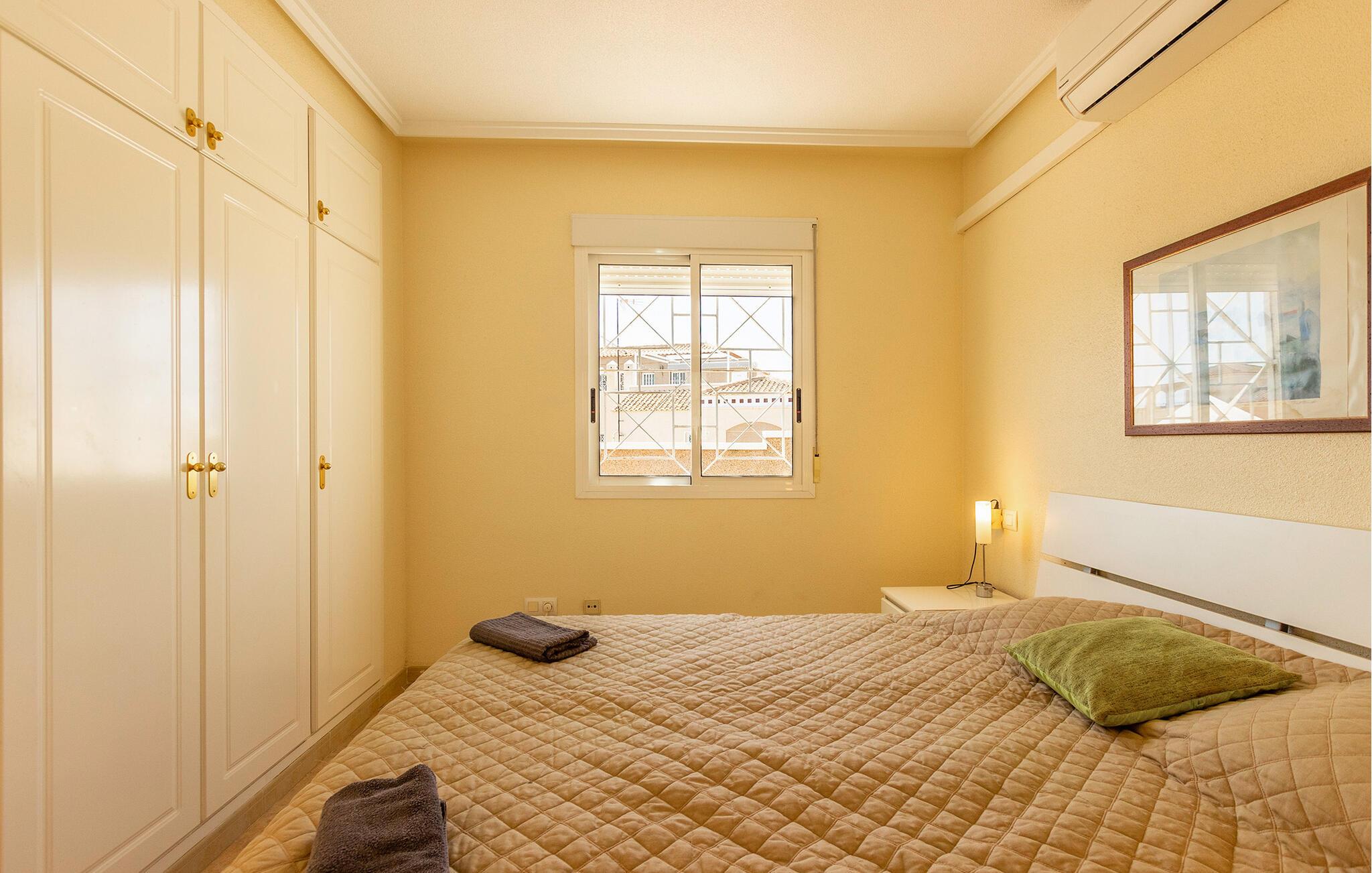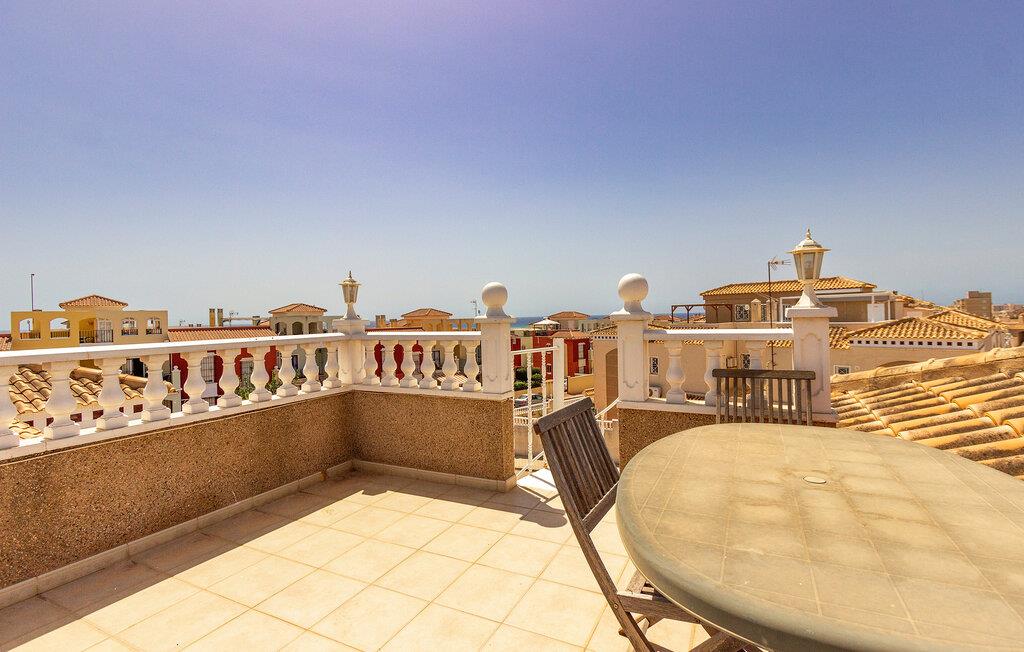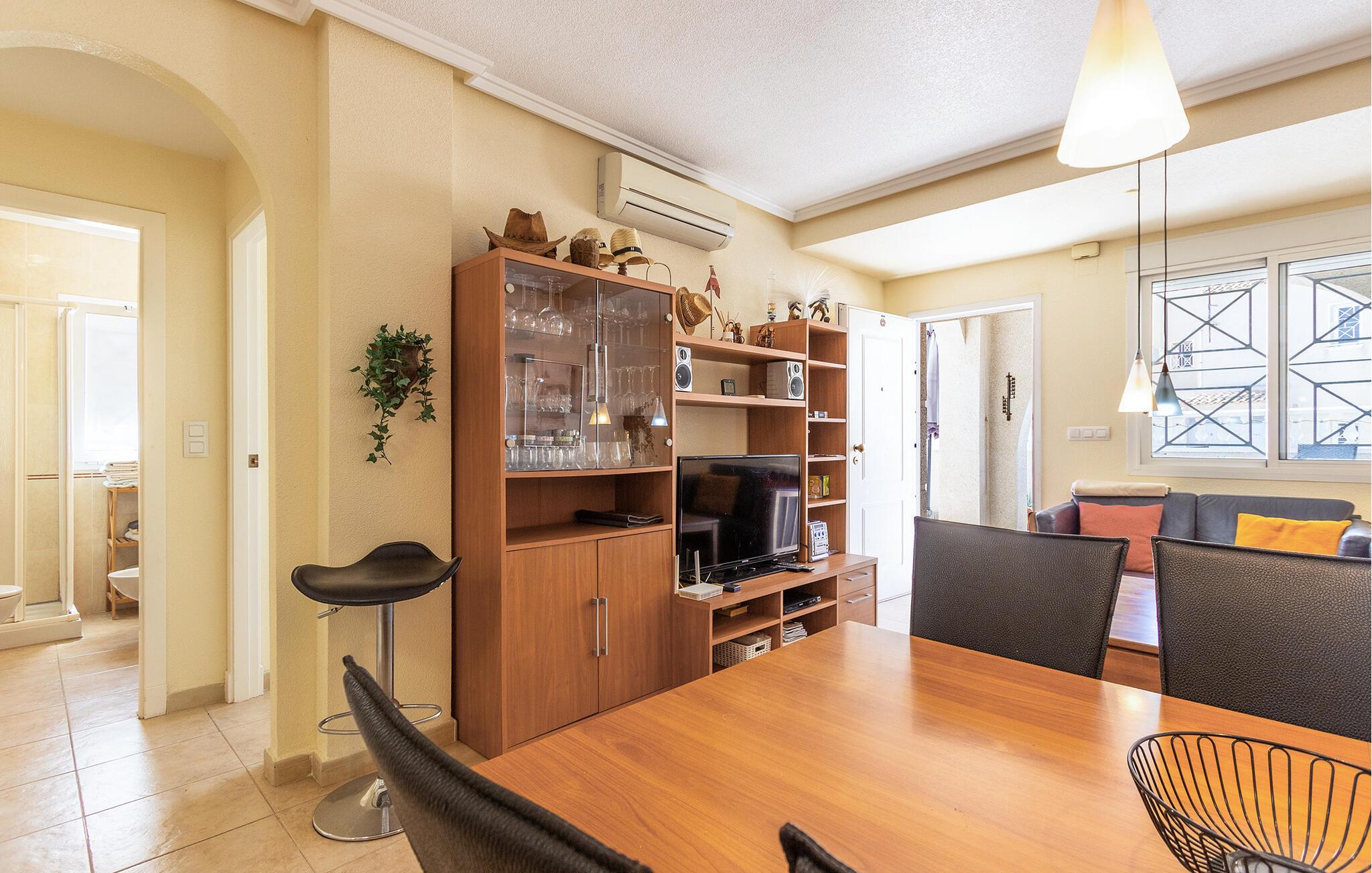 Begynd dagene med en fælles morgenmad, som I kan tilberede i det åbne, veludstyrede køkken. Tag plads ved det tilstødende spisebord og planlæg dagen frem. Den hyggelige opholdsstue lægger op til hyggestunder. Sæt jer godt til rette i sofaen, se en sjov film sammen eller spil et spil kort. På balkonen til jeres rækkehus i Torrevieja kan I nyde den vidunderlige udsigt med en forfriskende drink.