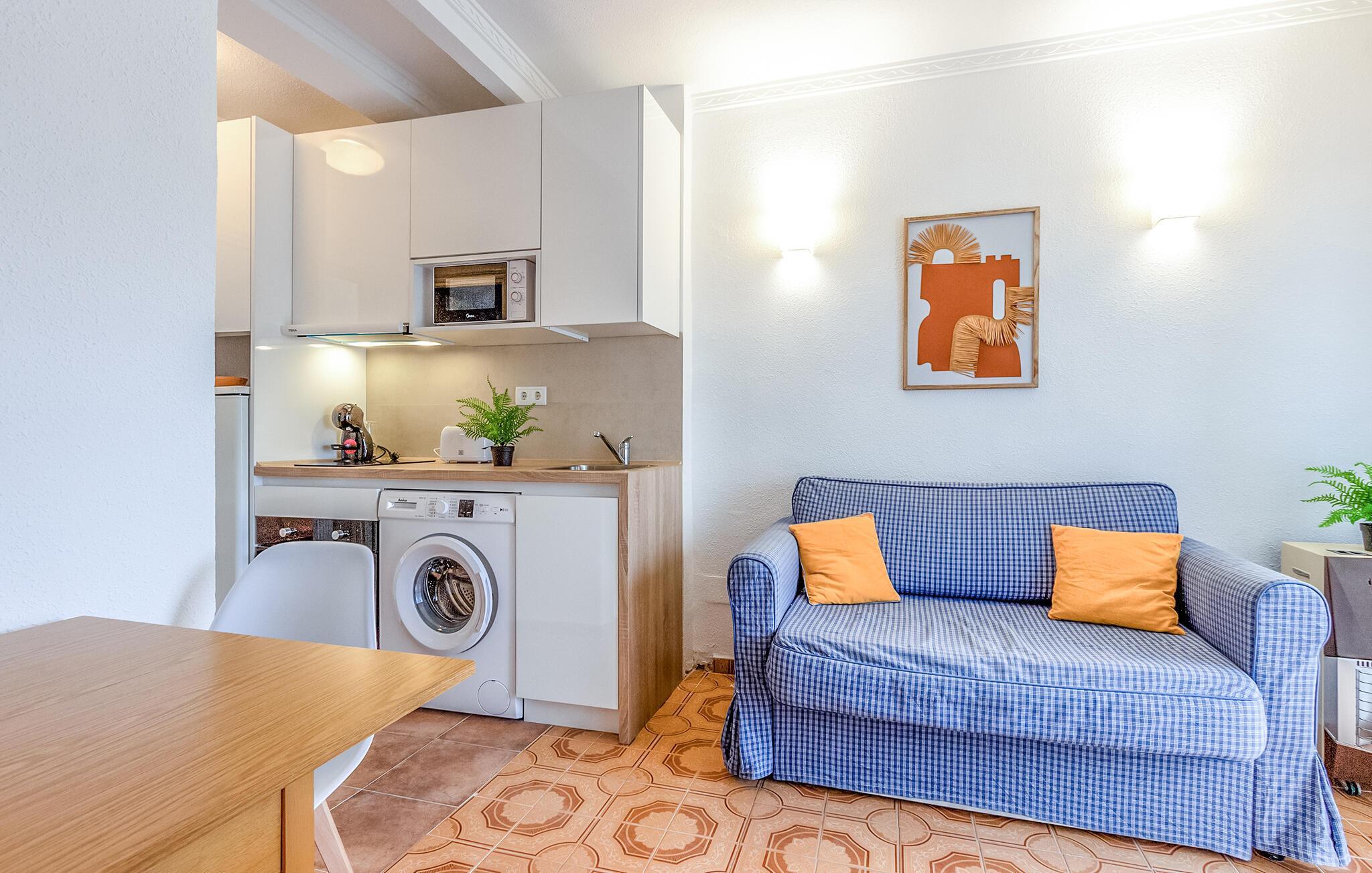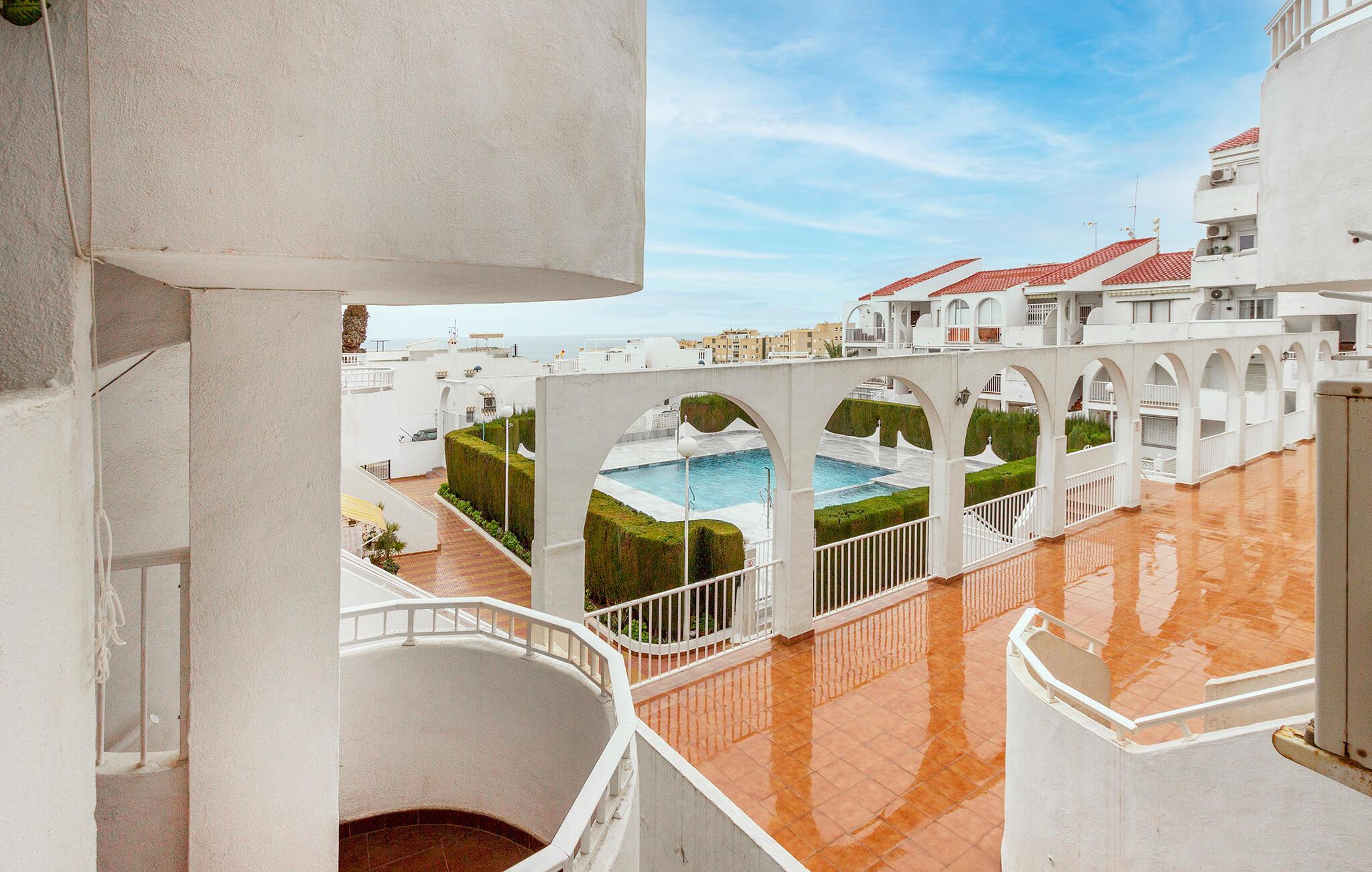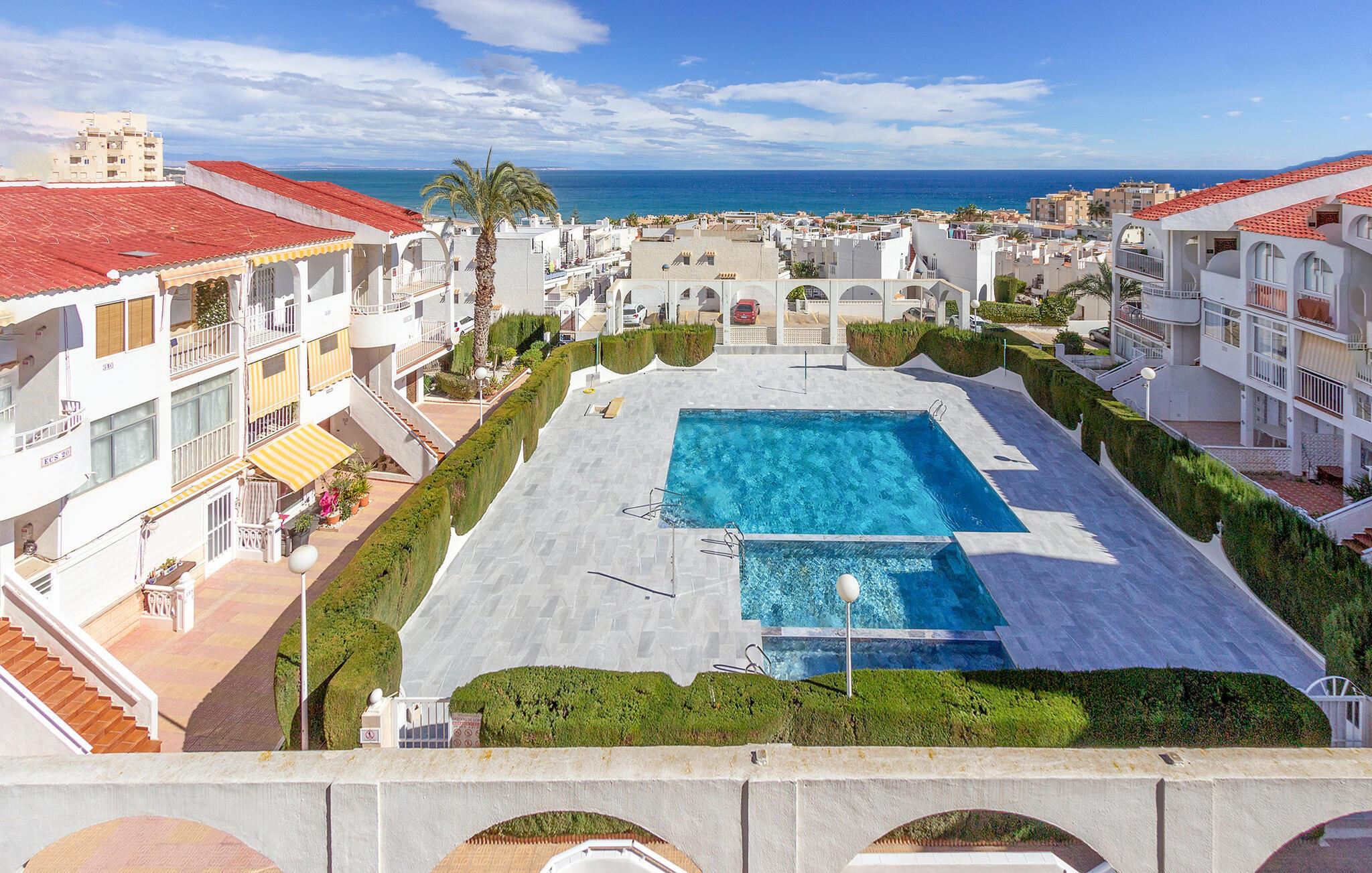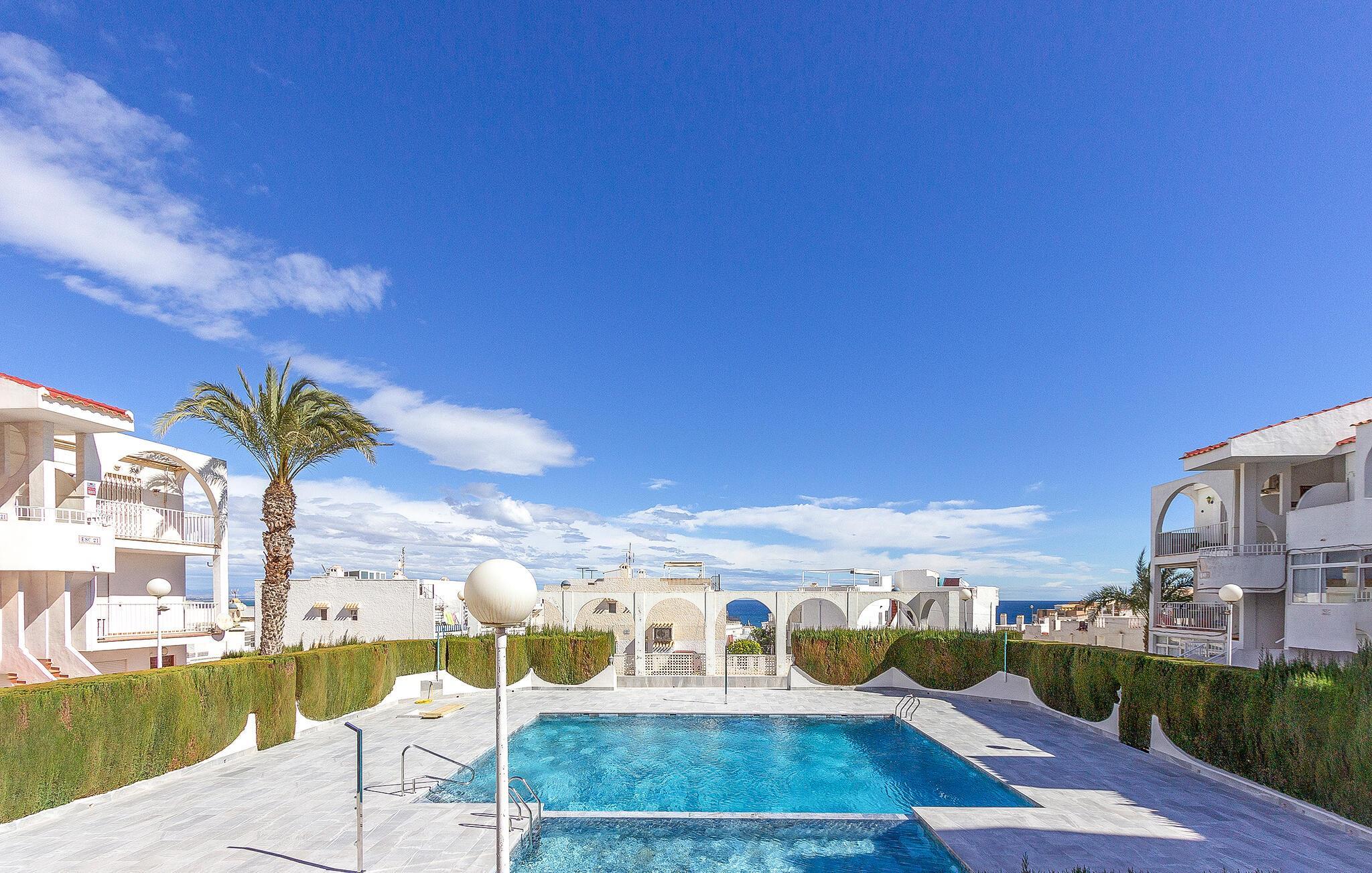 I denne lejlighed får I alt, hvad I behøver for en ferie i sus, dus og med masser af sol. Boligen er en ideel destination for par eller for den lille familie, og med sin lyse og flotte indretning og moderne faciliteter skal I ikke bekymre jer om noget. Begynd blot dagen med en friskbrygget morgenkaffe på altanen, hvor I får en vidunderlig udsigt over havet og den fælles pool, som lokker til dagens første, friske dyp. Herefter kan I traske den korte tur ned til stranden eller begive jer på udflugt i området.