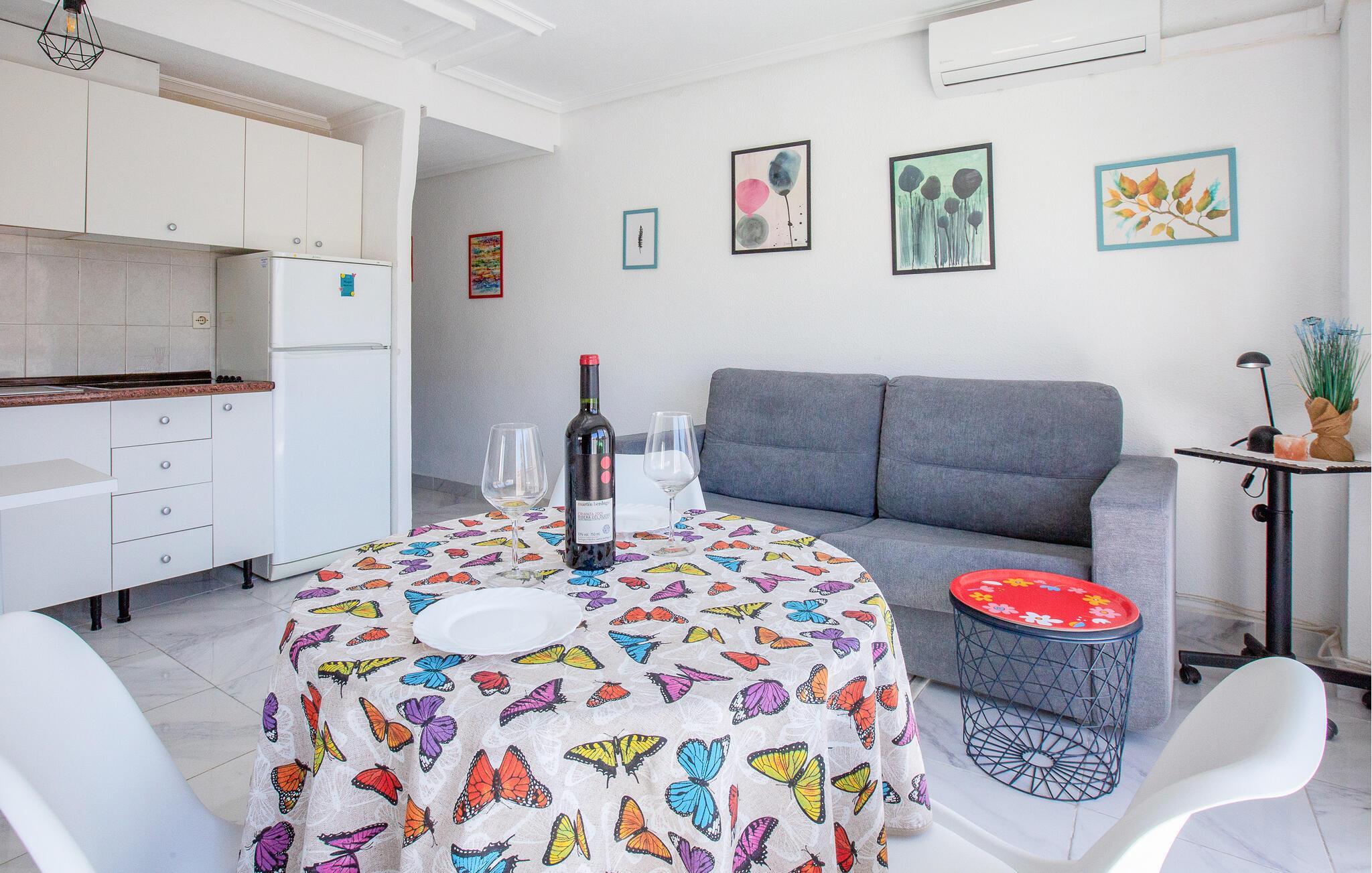 Hvis I er på udkig efter en hyggelig base til en hyggelig og aktiv ferie for to, er I kommet til det helt rette sted. Her bor I kun få minutters gang fra stranden, flere golfbaner og tennisanlæg i en lille og kompakt indrettet lejlighed med alle de faciliteter, I behøver for at slappe af før og efter dagens udflugter. Efter dagens muntre leg kan I tilberede en lækker aftensmad og flade ud i sofaen med hver jeres bog eller en god film, mens I lægger planer for de kommende dage.