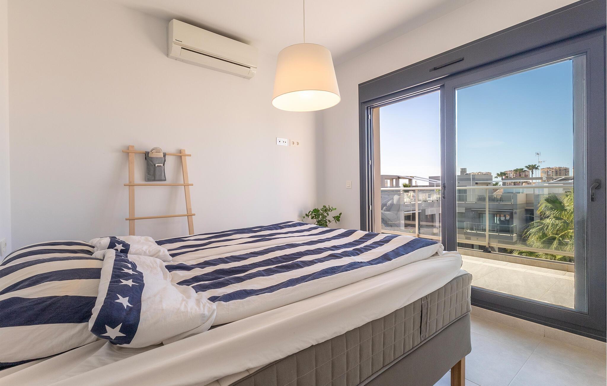Denne komfortable ferielejlighed ligger nogle få skridt fra sandstranden og lægger op til at tilbringe afslappende tid under middelhavssolen. Lad jer betage af det lyse og smagfulde interiør, hvor I kan tilbringe hyggelige timer med venner eller familie. Glæd jer til fælles måltider ved det stilfulde spisebord og hyggelige aftener med et glas vin på den rummelige sofa.