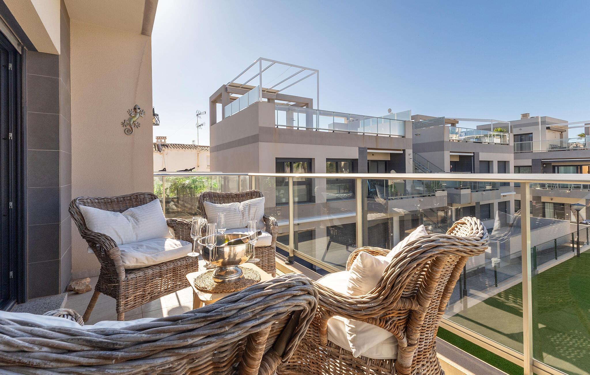Nyd en friskbrygget kop kaffe på jeres balkon i det milde morgenlys, inden I tager en forfriskende dukkert i den smukke fælles pool. Den store tagterrasse er det ideelle sted for et glas vin ved solnedgang. Nyd solen på komfortable møbler og nyd varme sommernætter med udendørs spisning.
