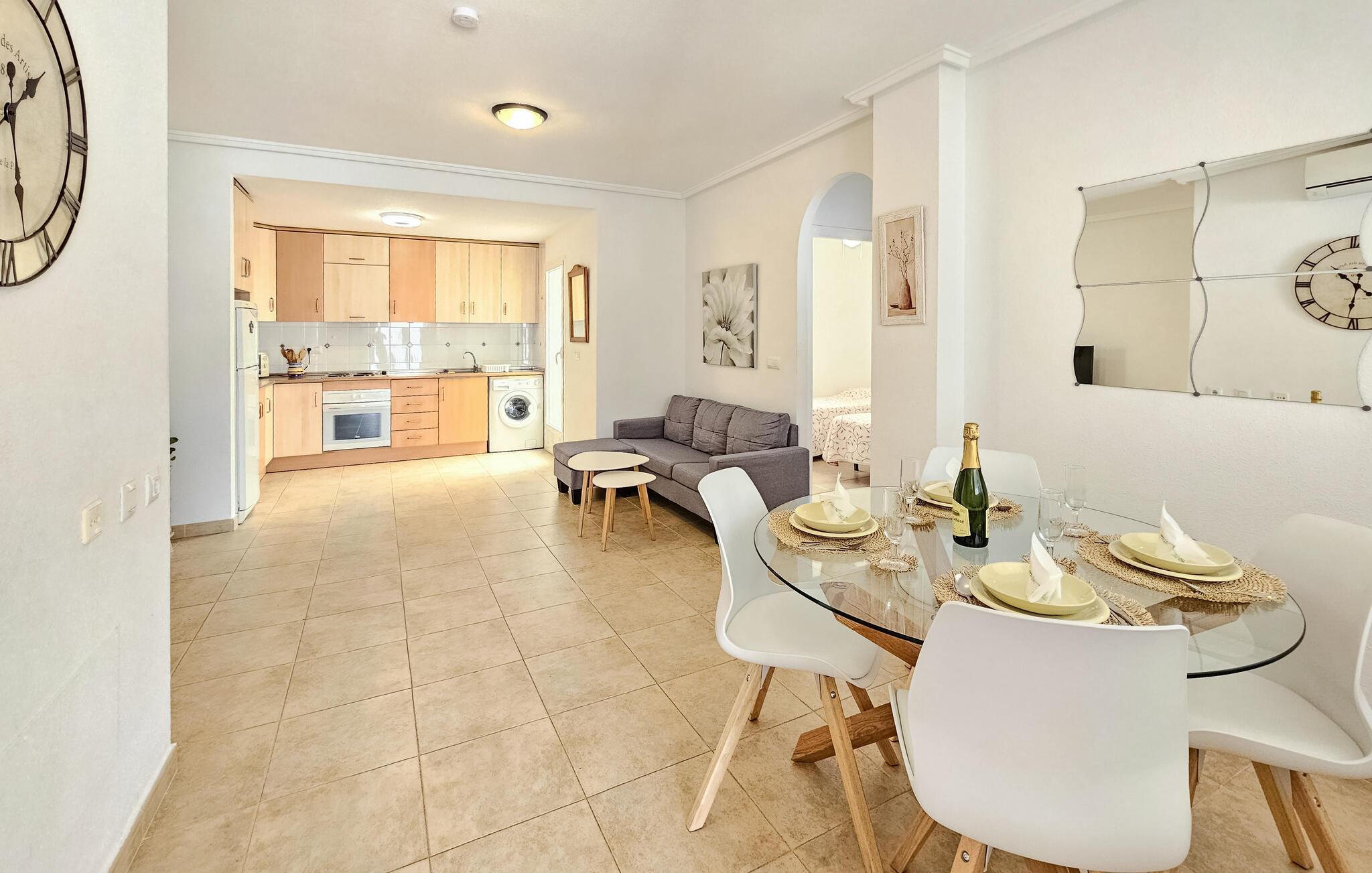 Dejlig og enkel lejlighed med fælles pool i et kompleks i Torrevieja på Costa Blanca.