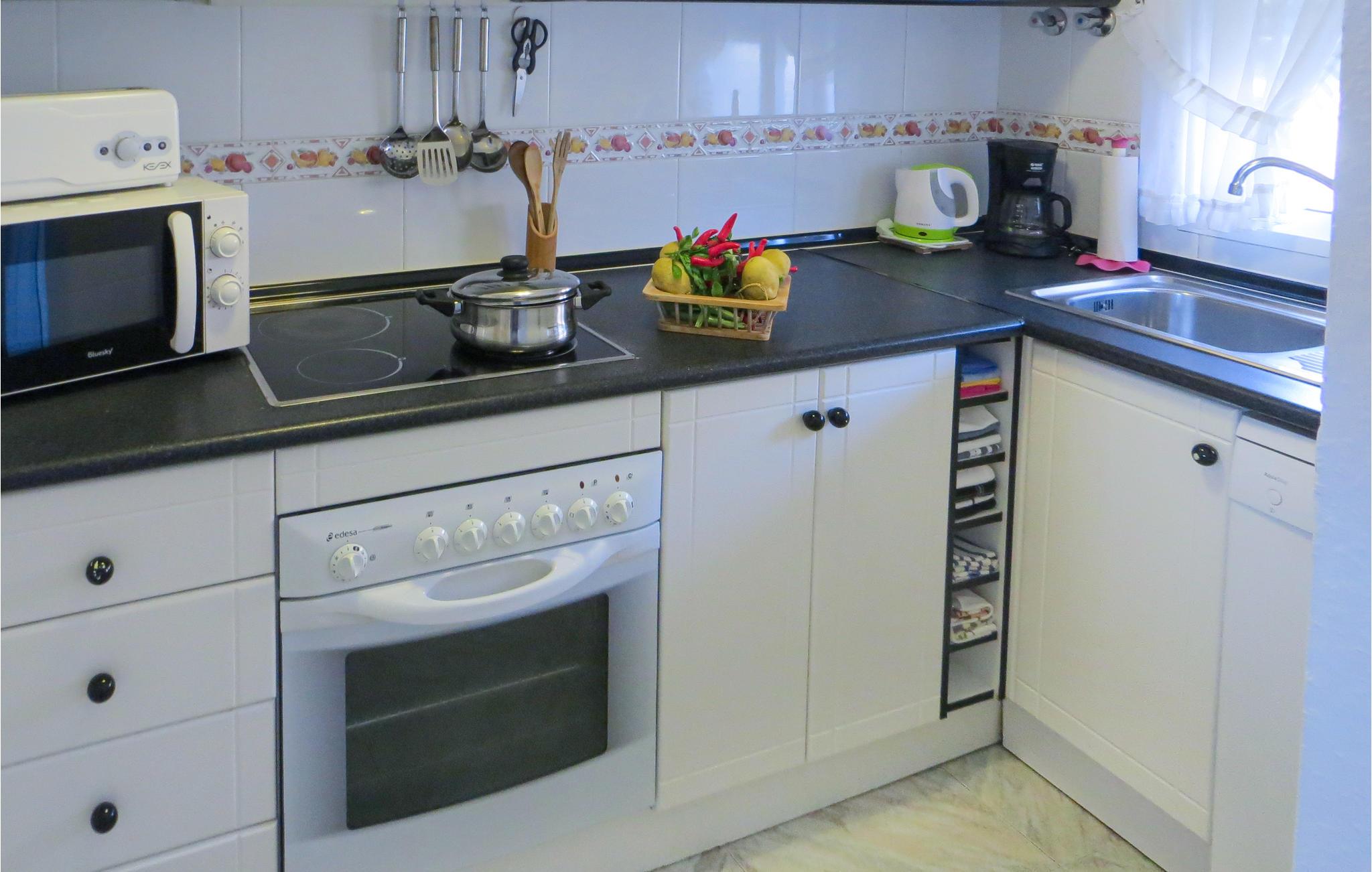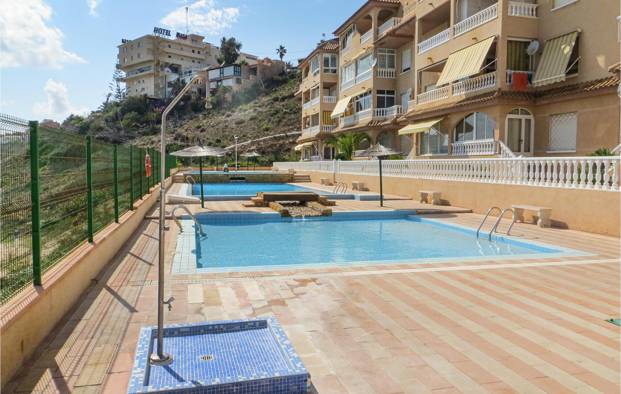 Dette område på Costa Blanca byder på et af de sundeste klimaer i verden og er derfor et populært ferieområde. Ejendommen har 3 udendørs fælles pools, hvor du kan tilbringe afslappende timer i solen og med en forfriskende svømmetur. Hvis du kan lide at svømme i havet, er stranden kun 100 m væk fra lejligheden. Lejligheden har også en dejlig altan, hvor du kan nyde din frokost eller middag i skyggen af markisen. I hvert soveværelse er der infrarøde varmelamper.