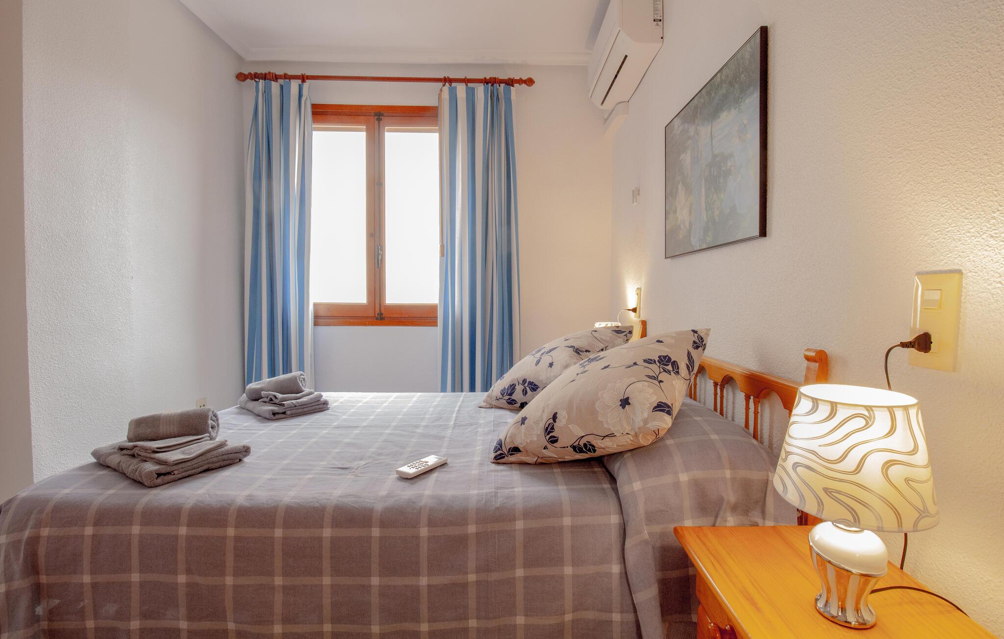 Den kompakte lejlighed har to komfortable soveværelser og en smuk balkon med udsigt over gaden. Bygningen har en kørestolsvenlig elevator. Vandet i køkkenet forarbejdes til drikkevand af et vandfilter. Internet og smart-tv-faciliteter fuldender jeres ophold.
