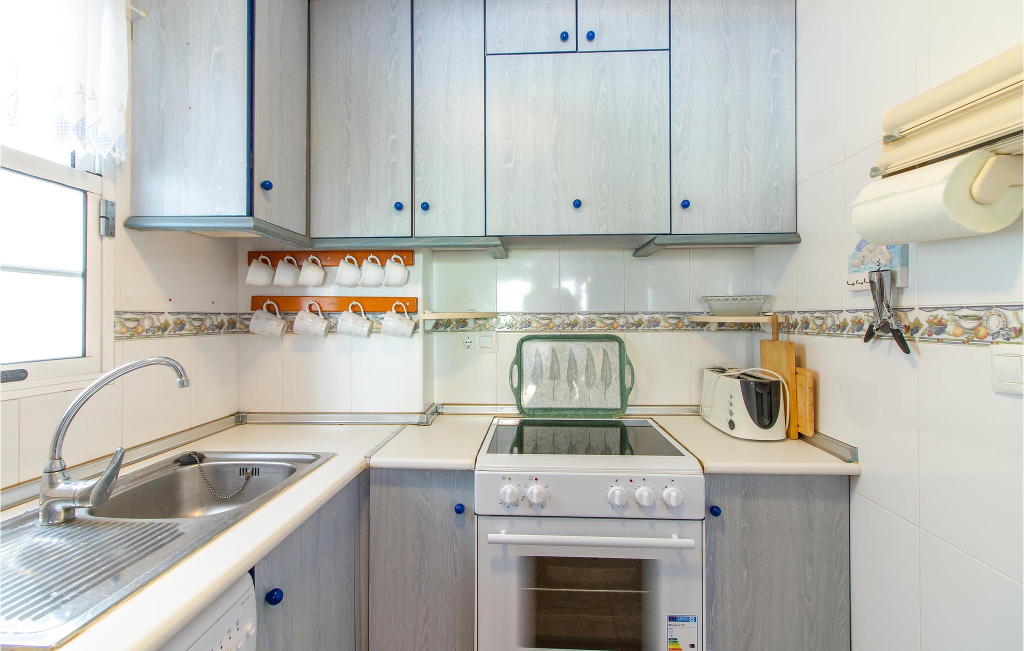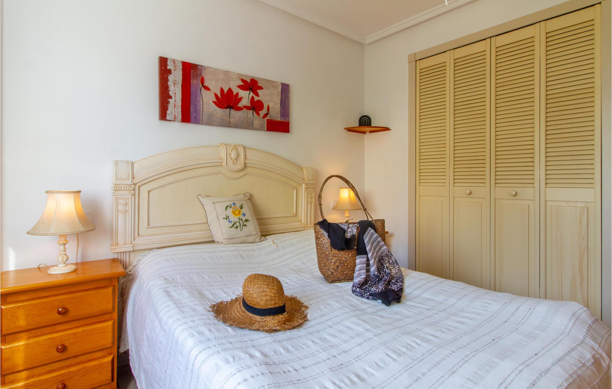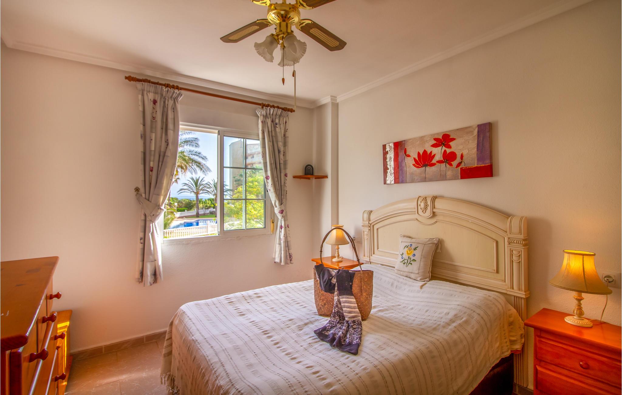 Velkommen til dette lejlighedskompleks, hvor I kan tilbringe et ophold uden bekymringer. Lejligheden er pænt indrettet og har alle de nødvendige faciliteter. Balkonen vender lige ud til palmerne, så her har I den skønneste ramme om dagens måltider. Snup en dukkert i poolen, hvis det bliver for varmt, eller begynd dagen med et par runder for at få kroppen i gang til en ny spændende dag.