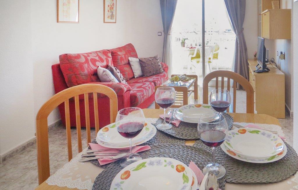 Denne indbydende ferielejlighed hvis gæster har adgang til fælles pool, ligger i centrum af Torrevieja, kun en km fra stranden og havet som nabo til busbanegården, der forbinder den lille by med Alicantes lufthavn og Murcia. Der er en skøn terrasse der indbyder til ophold fra morgen til aften. Torrevieja er først og fremmest kendt for sine fantastsike badestrande, men I kan også besøge det historiske bygningsværk Torre del Moro, fra det 14. århundrede, hvorfra angreb fra piraterne blev forhindret. Fra Cala Ferrisbugten, omgivet af palmer, er der en betagende udsigt der bestemt er et foto eller to værd. Et feriemål der bliver tiltagende mere populært.