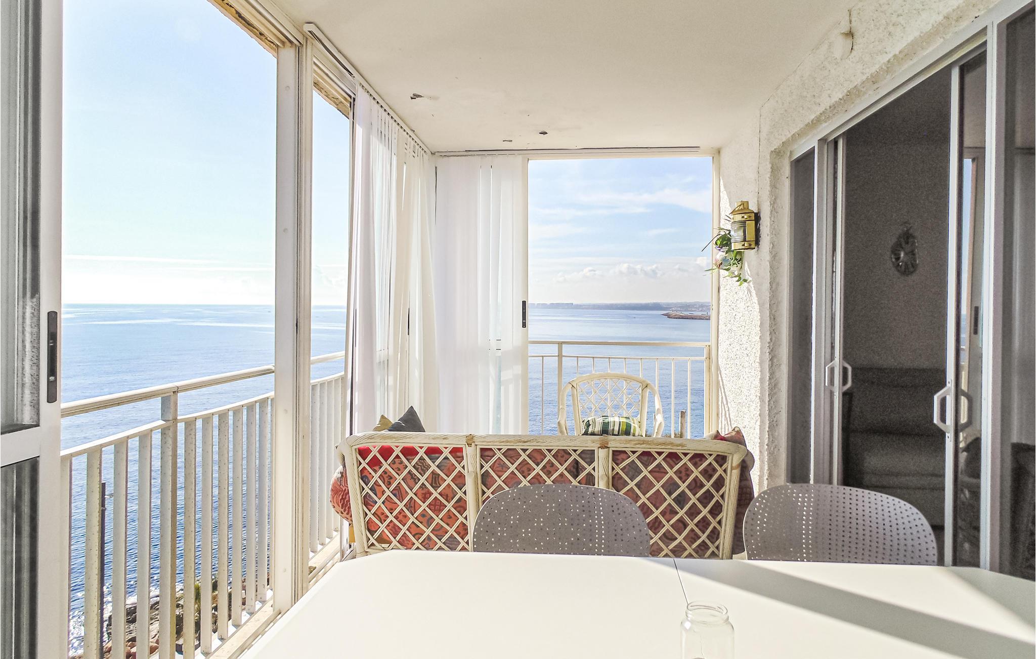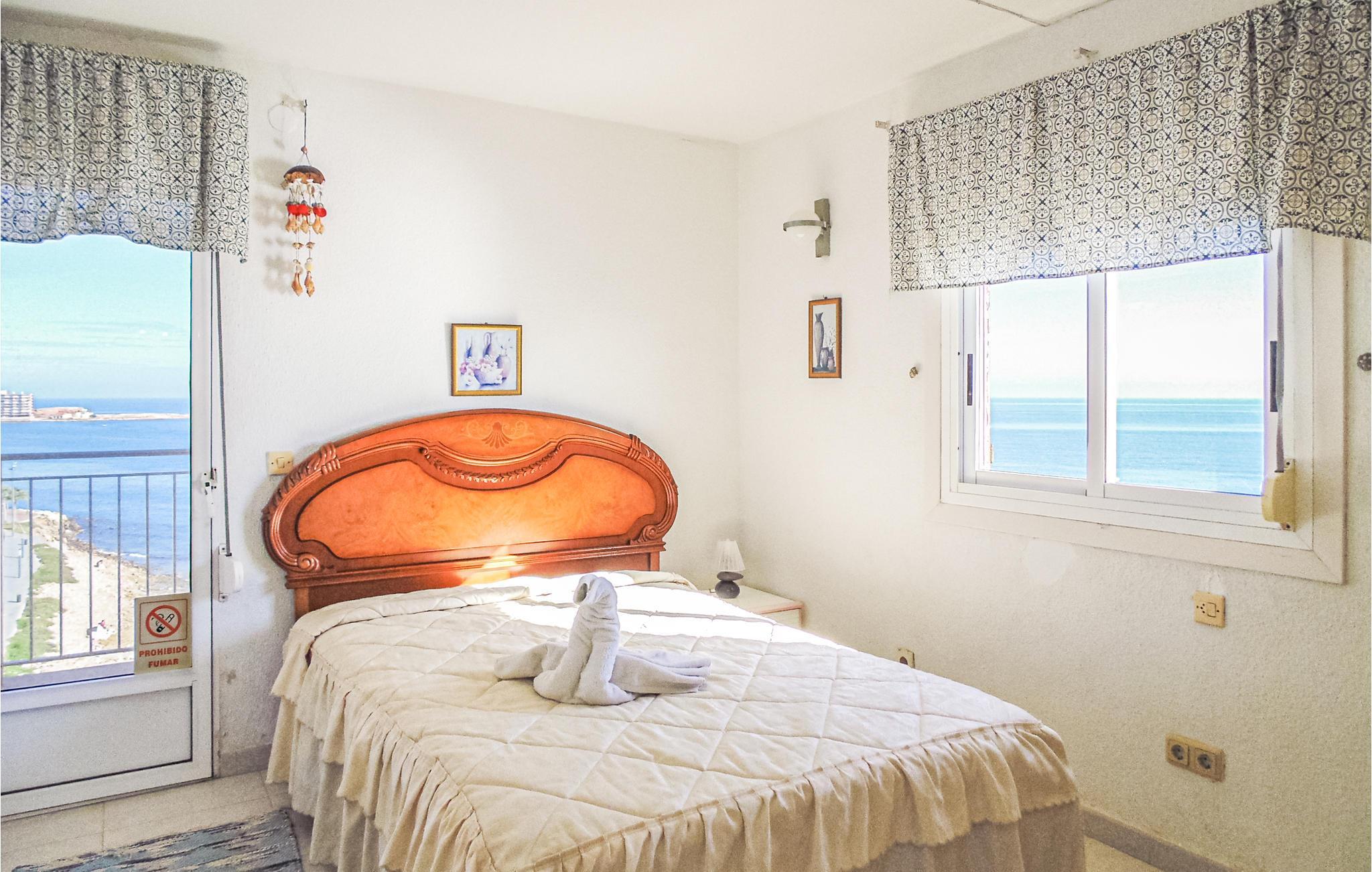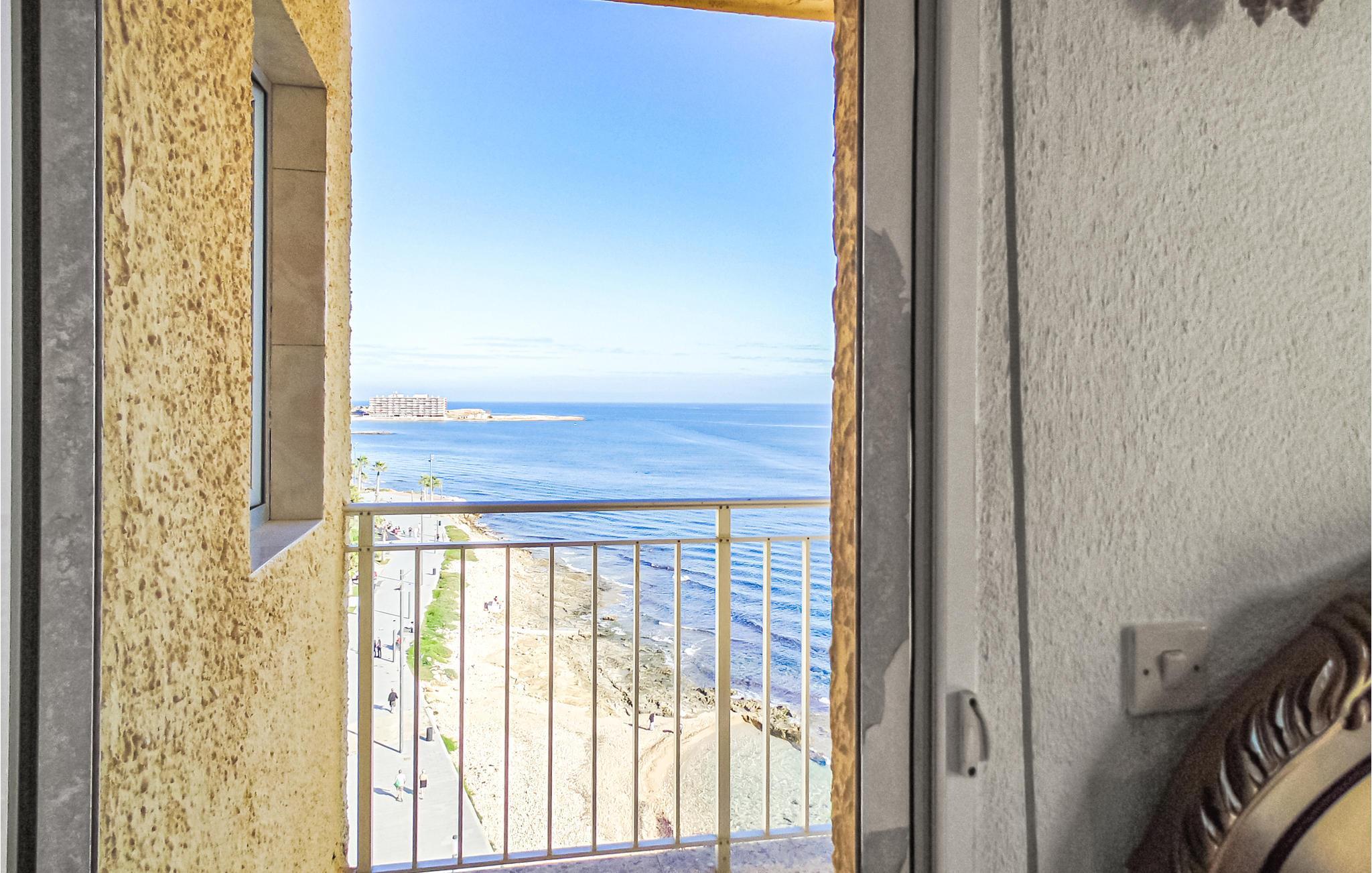 Træd ud på altanen og føl I svæver over det glasklare Middelhav når I bor i denne dejlige ferielejlighed, der ligger i feriebyen Torrevijea. Dens 108 m² har god plads til seks personer, fordelt på tre soveværelser og med to badeværelser. Lejligheden ligger på 7. sal i en ejendom med elevator og med udgang til hele tre altaner. Her kan I falde i søvn til havet der slår mod stranden. I kan gå til strandpromenaden og byens centrum med restauranter, diskoteker, butikker og hvad I ellers kan få brug for i løbet af jeres ferie. Der er otte km til nærmeste golfbane, 10 km til vandresti og kun 500 m til nærmeste fiskemulighed. Når I vil bade, er der 40 m til den nærmeste sandstrand.