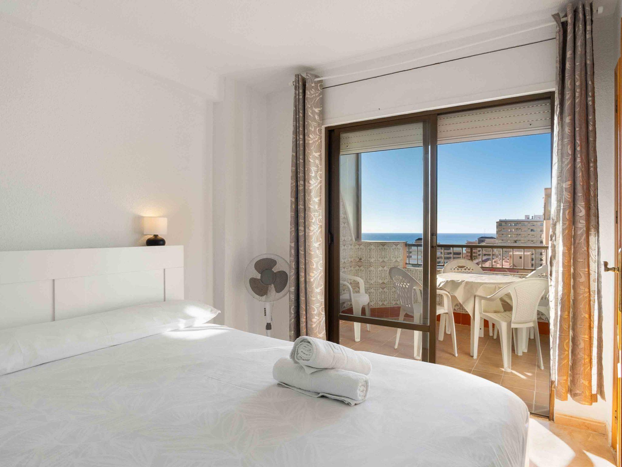 "Miramar IV", 3-room apartment 50 m2 on 9th floor. Bright, comfortable furnishings: dining room 12 m2 with dining table, digital TV, flat screen, air conditioning and forced-air heating. Exit to the terrace, to the veranda. 1 large room with 1 french bed (135 cm, length 200 cm), electric heating. Exit to the terrace. 1 small room with 1 x 2 bunk beds (90 cm, length 200 cm), electric heating. Small kitchenette (3 ceramic glass hob hotplates, kettle, microwave, electric coffee machine) with boiler (50 litres). Shower/WC. Air-conditioning. Large terrace 14 m2. Terrace furniture. Marvellous panoramic view of the sea. Facilities: washing machine, iron, children's high chair, hair dryer. Please note: suitable for families. Maximum 1 small pet/ dog allowed. TV only ES. AT-441607-A // Reg. Nr.: ESFCTU00000305900002870200000000000000000AT-441607-A6
