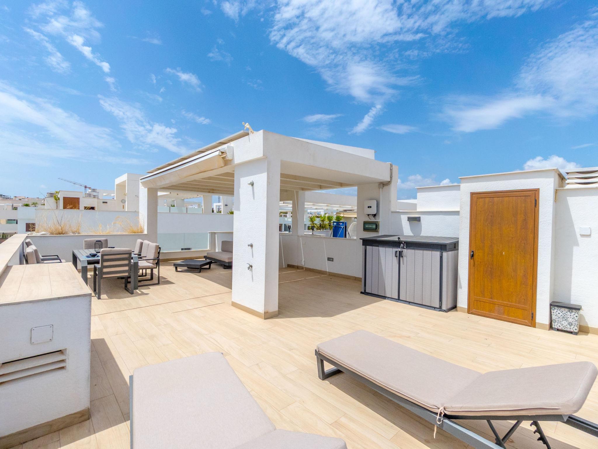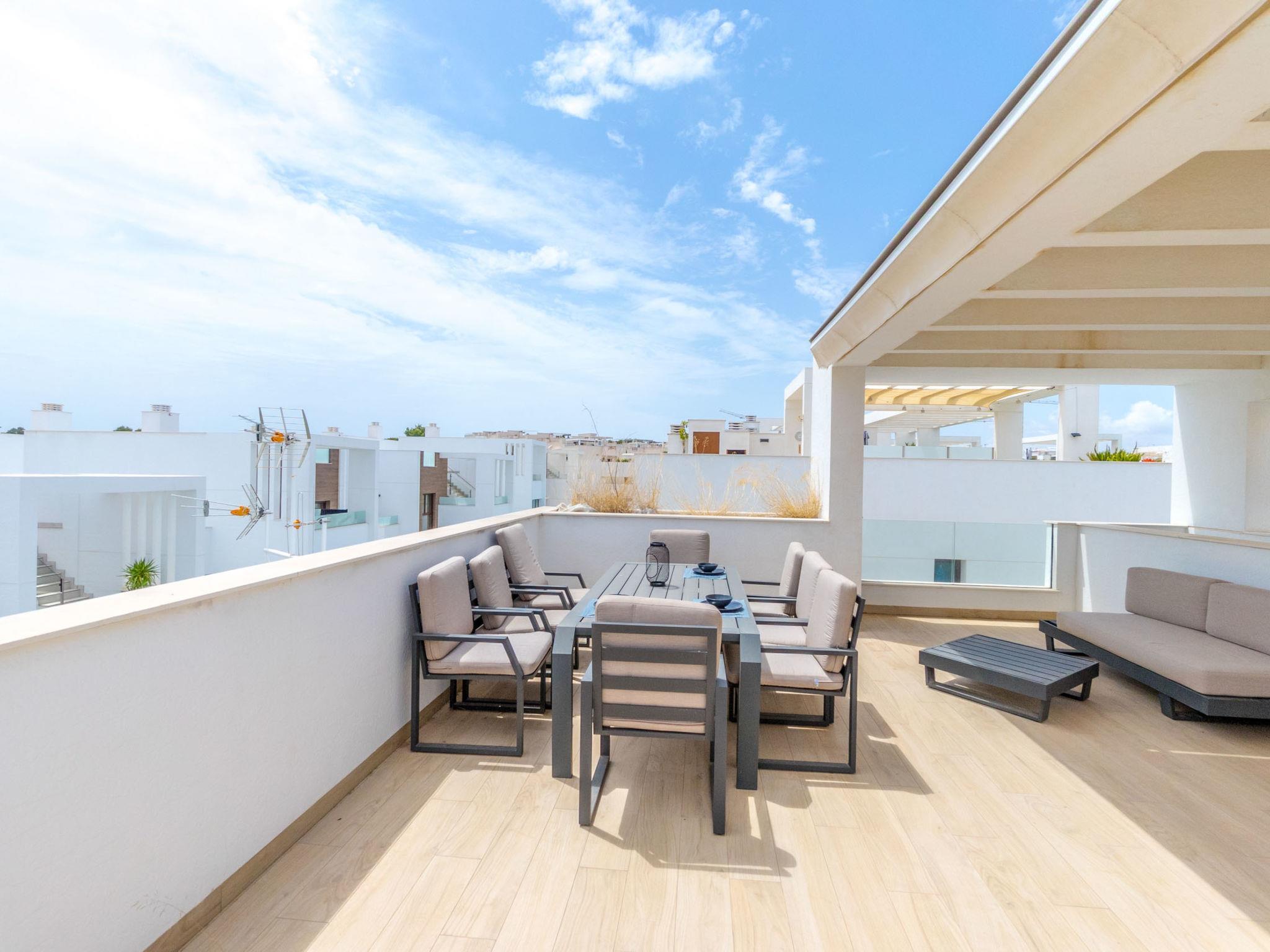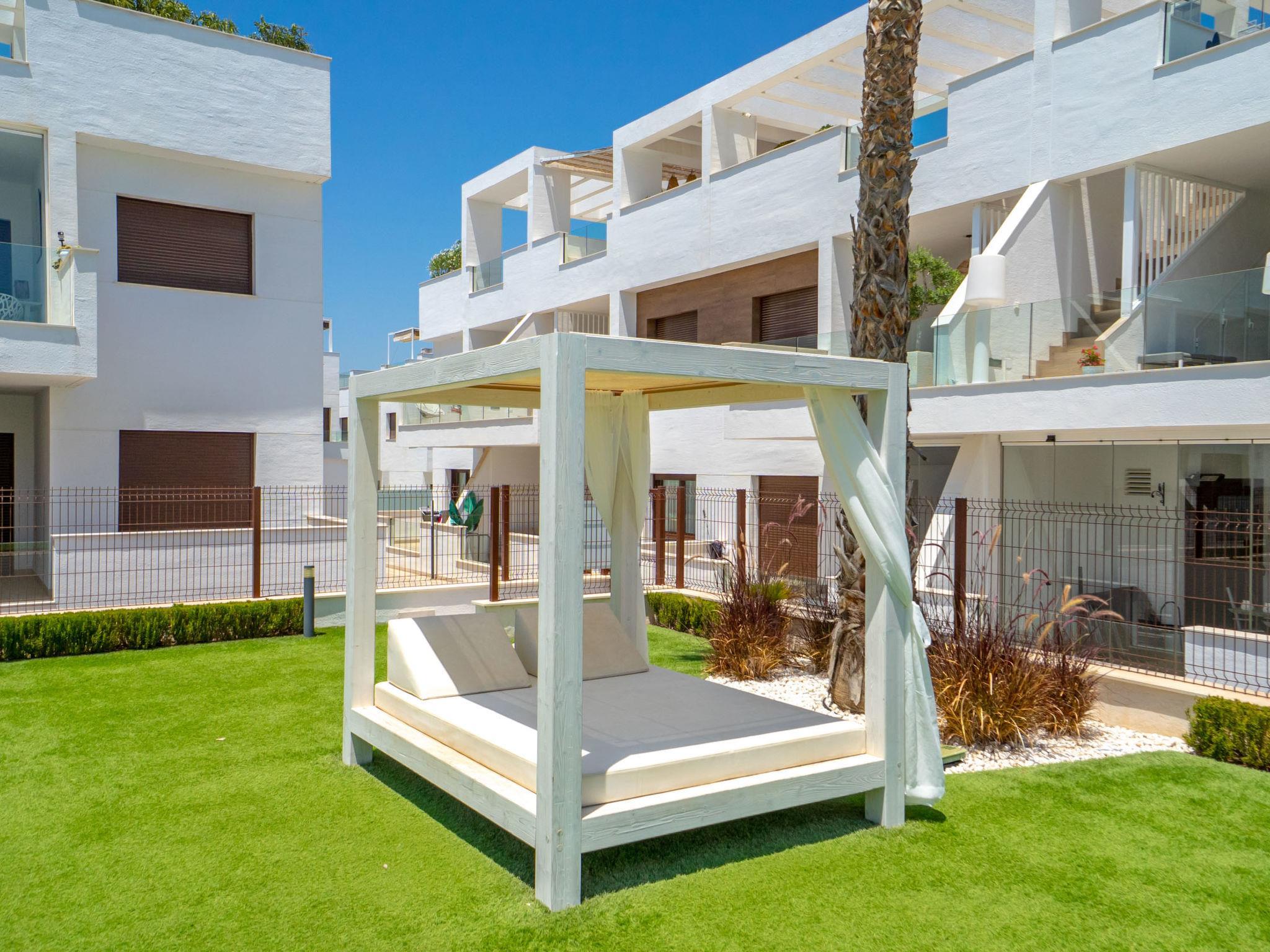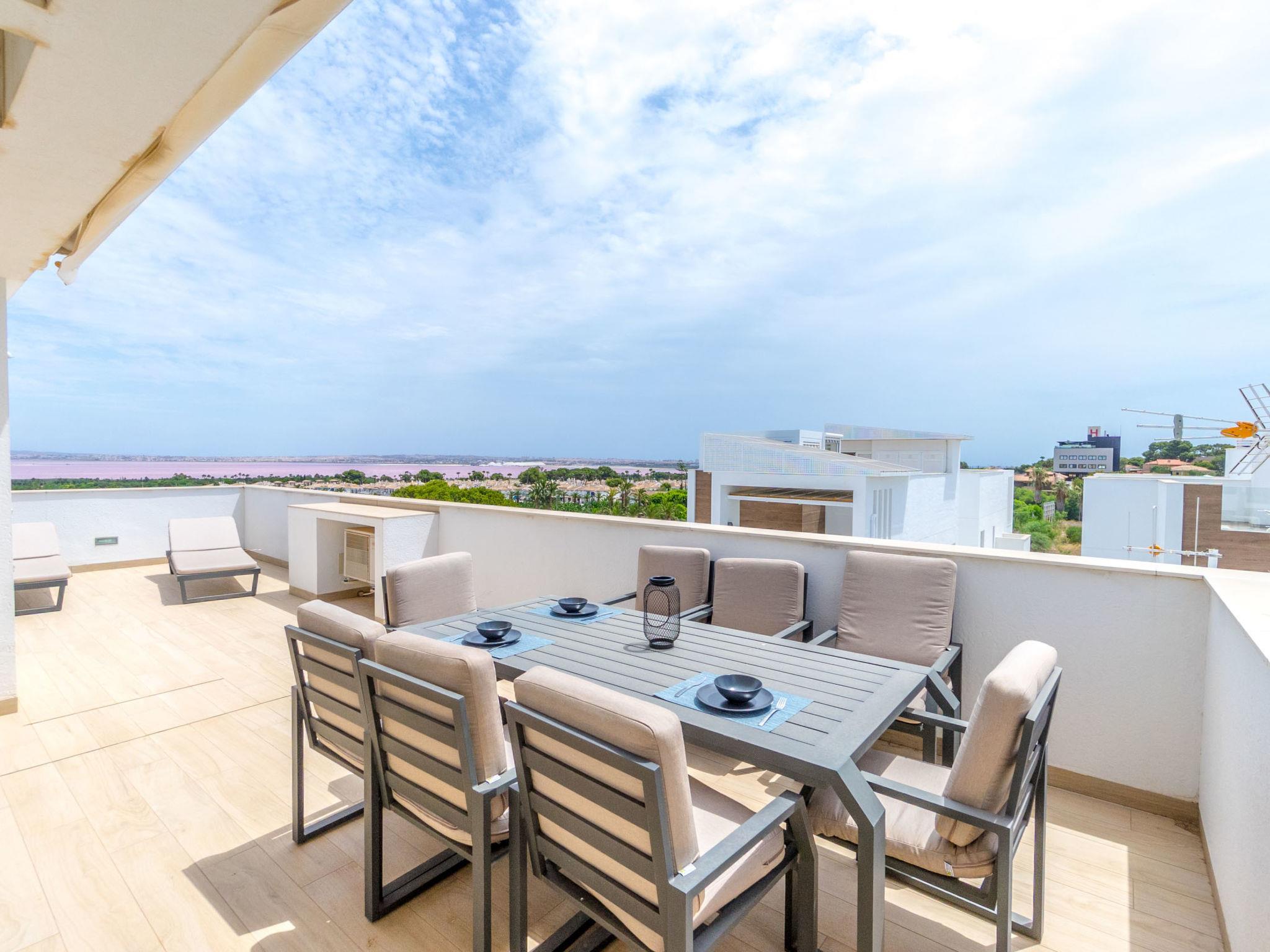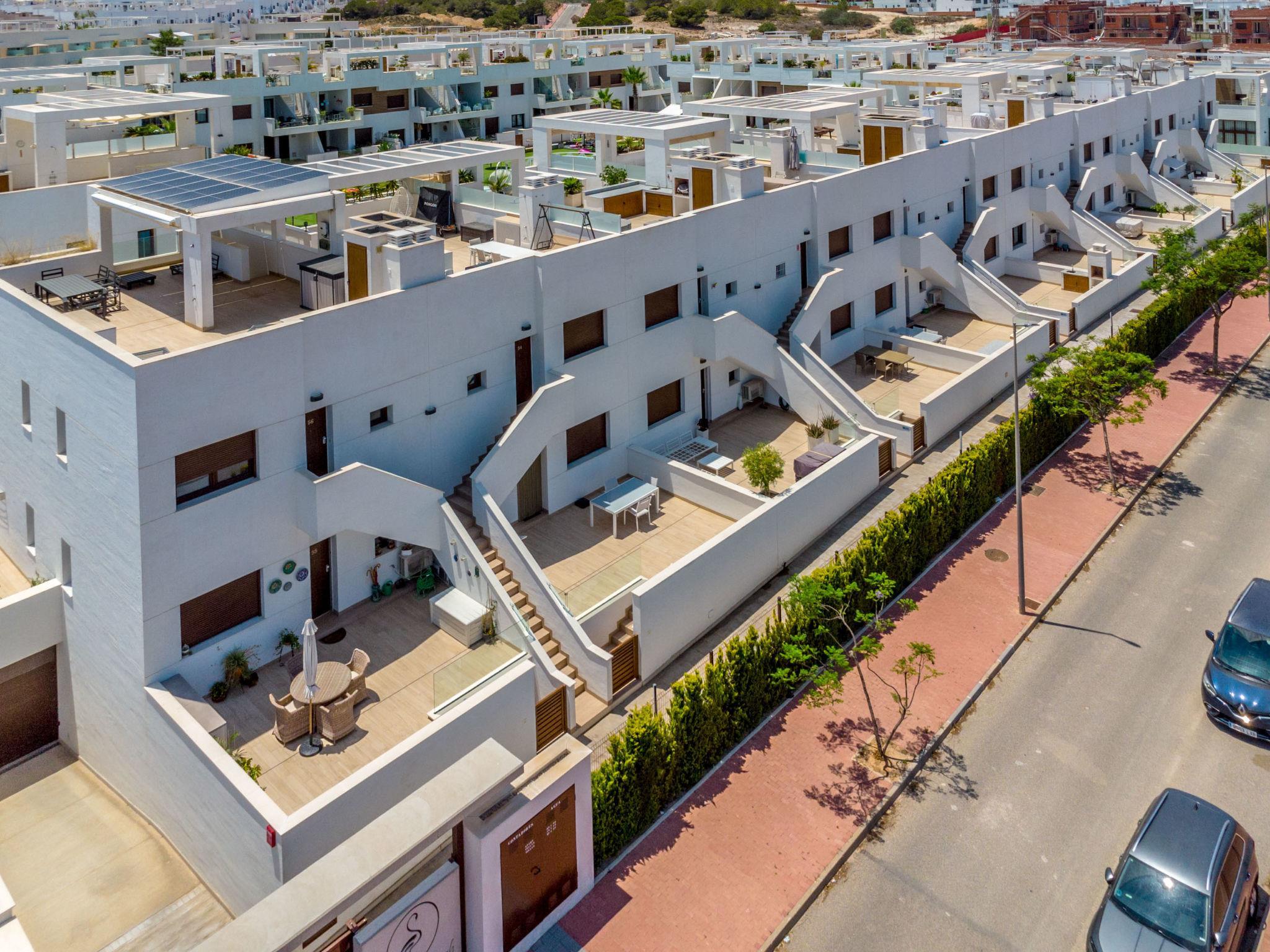Modern, beautiful residence "Laguna Beach Resort", 2 storeys. 7 km from the centre of Torrevieja, 5 km from the centre of Punta Prima, 4 km from the sea, 4 km from the beach. For shared use: property (fenced), swimming pool (32 x 14 m, seasonal availability: 01.Jan. - 31.Dec.). Children's pool, outdoor shower. In the house: roof terrace. Grocery, supermarket 700 m, restaurant 850 m, bar 700 m, bus stop 750 m, sandy beach "Playa Punta Prima" 6 km. Sports harbour 6 km, marina 6 km, golf course (12 hole) 5 km.