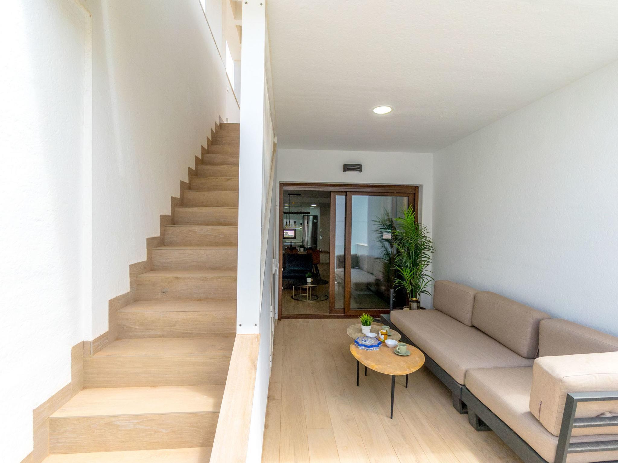 "Laguna Beach Resort", 3-room apartment 87 m2 on 1st floor. Spacious and bright, comfortable and beautiful furnishings: living/dining room with digital TV, air conditioning and forced-air heating. Exit to the terrace. 1 room with 1 french bed (1 x 200 cm, length 210 cm), shower/WC, air conditioning, forced-air heating and electric shutters. 1 room with 1 french bed (1 x 200 cm, length 200 cm), air conditioning and forced-air heating. Open kitchen (oven, dishwasher, 3 induction hot plates, toaster, kettle, microwave, electric coffee machine). Shower/WC. Air-conditioning, forced-air heating. Solar power. Large terrace. Terrace furniture, deck chairs, sitting area. Beautiful distant view of the sea, the lake and the resort. Facilities: washing machine, iron, hair dryer. Internet (WiFi, free). Please note: non-smoking house. No lift. VT-512223-A // Reg. Nr.: ESFCTU00000305100055906400000000000000000VT-512223-A4