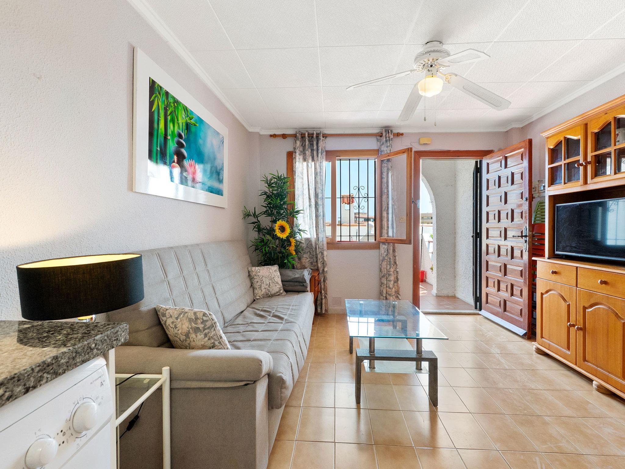 Apartment block "Panorama". 6 km from the centre of Torrevieja, 450 m from the sea, 600 m from the beach. Grocery, supermarket 350 m, restaurant, bus stop 450 m, sandy beach "Cabo Cervera" 650 m. Marina 7 km, golf course (12 hole) 13 km. Please note: no lift.