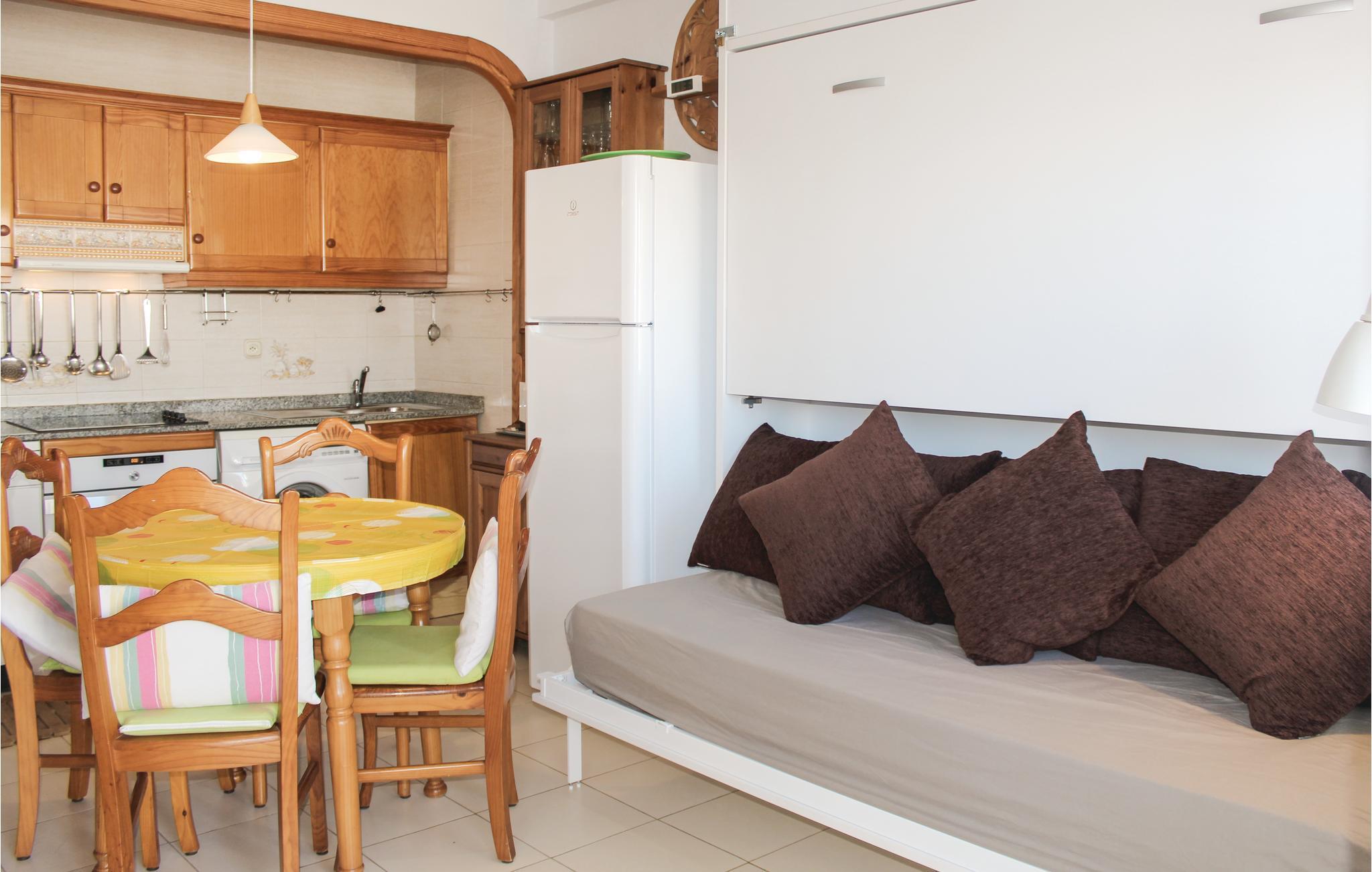 I La Mata, tre km fra Torrrevieja, ligger denne lille ferielejlighed på 38 m² som et godt valg til en venneferie for to, eller romantisk ferie for et par. Den er praktisk indrettet med den nødvendige komfort til en vellykket ferie. Lav maden på terrassens murede grill og spis den i det fri. I har adgang til anlæggets fælles pool, hvor der også er en afdeling for børn. Poolen ligger omgivet af en plæne med palmer. Der er en glasoverdækket vinterhave, som særligt er anvendelig i vinterhalvåret. Nærmeste strand og Middelhavet ligger i gåafstand, så pak badehåndklæder og solcreme og nyd en lang afslappet dag i sandet og vandet.