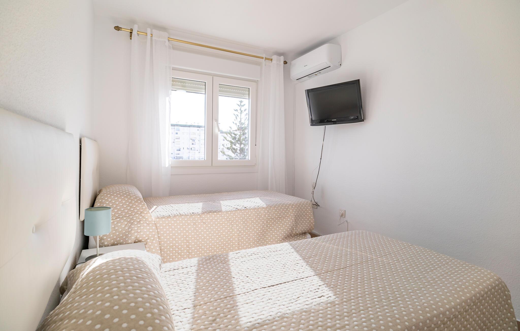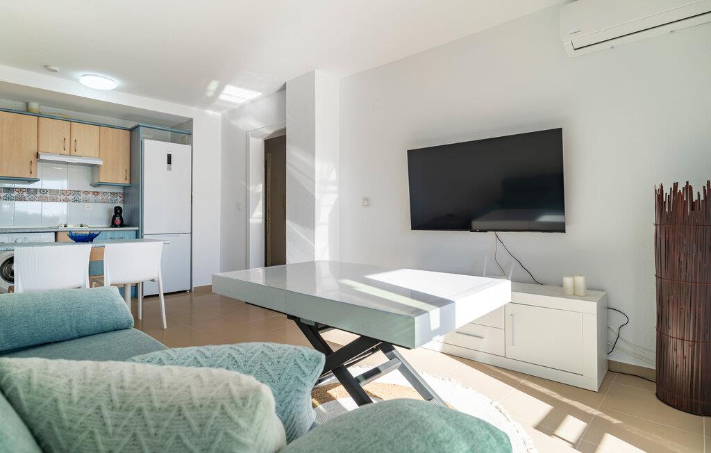 Denne stilfuldt og moderne indrettede ferielejlighed giver jer en komfortabel base til afslappende feriedage ved kysten. Den lyse og åbne indretning skaber en behagelig atmosfære, der hurtigt får jer til at føle jer hjemme. Nyd udsigten fra balkonen over de omkringliggende omgivelser, og lad den friske havluft give jer fornyet energi. Efter en dag på den nærliggende sandstrand kan I tage en opfriskende dukkert i en af de fælles pools – et perfekt setup for en afslappet strandferie.
