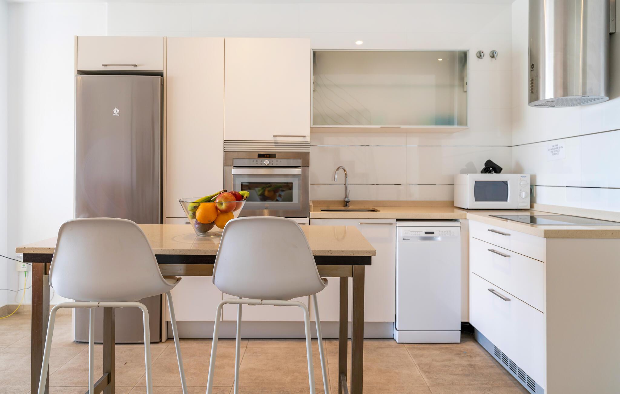 Kun få skridt fra sandstranden byder dette moderne og rummelige rækkehus jer velkommen, hvor I kan slappe af fra hverdagen med den beroligende havbrise. Her har I masser af plads til at tilberede hyggelige måltider med en stor familie eller en gruppe venner, mindes over et glas vin og nyde hyggelige aftener med en film eller et sjovt brætspil.